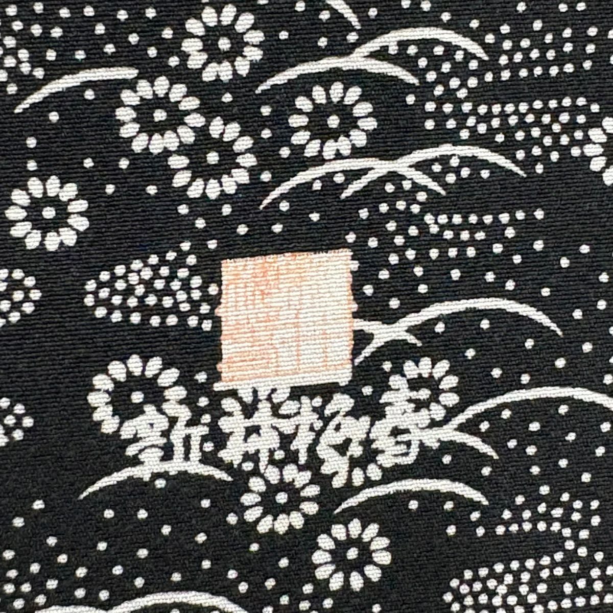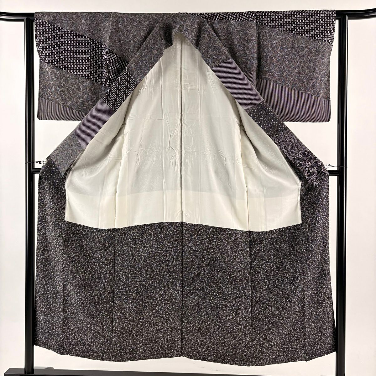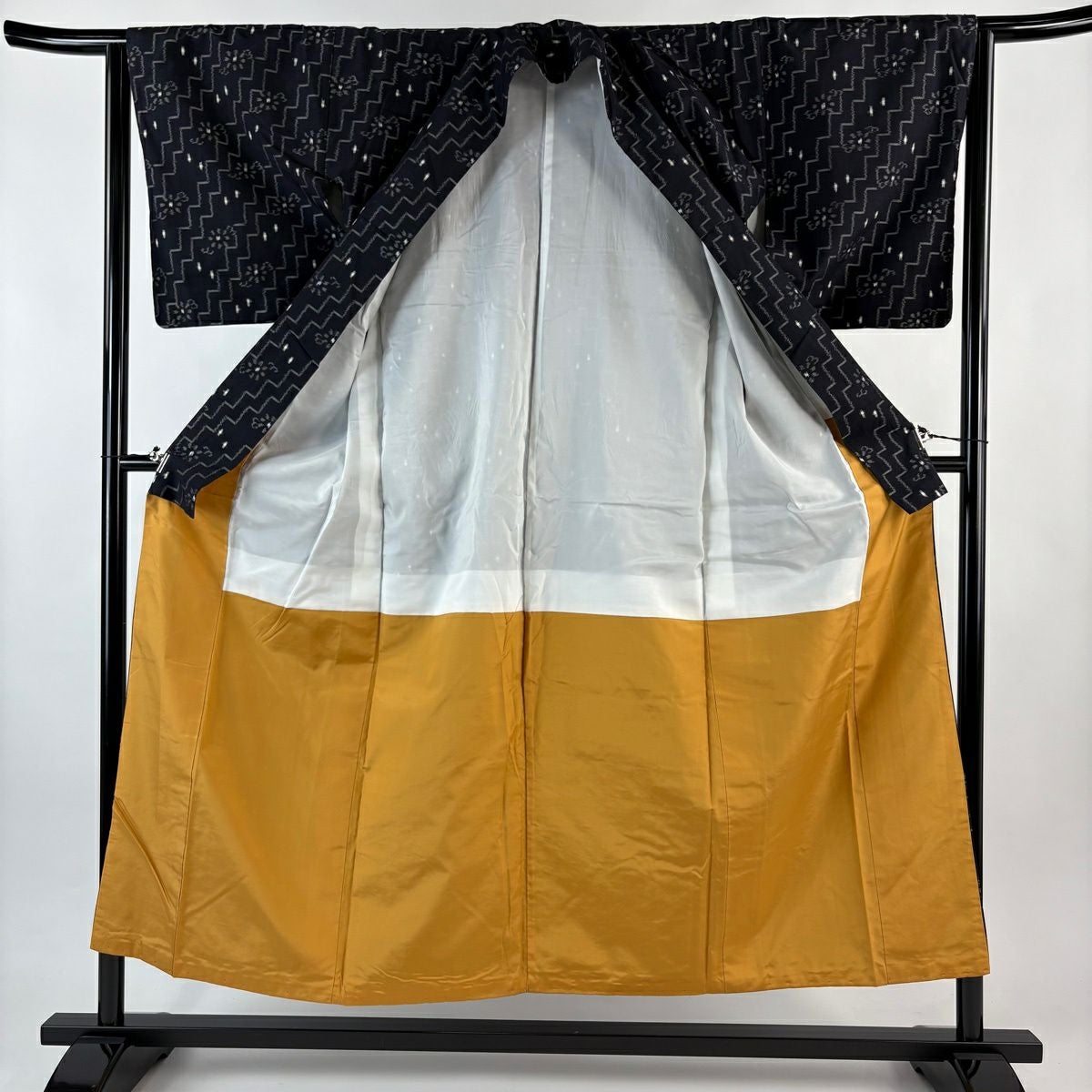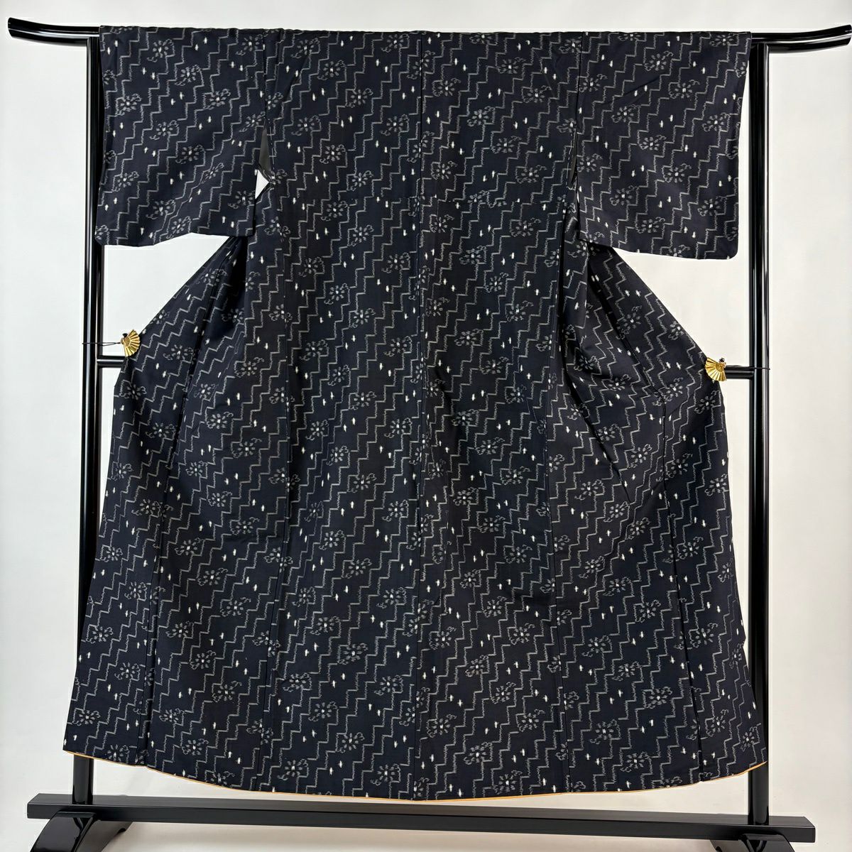 【最終値引き】 70%OFF 紬 身丈152.5cm 裄丈63cm S 袷 花 幾何学 墨色 正絹 秀品 K70