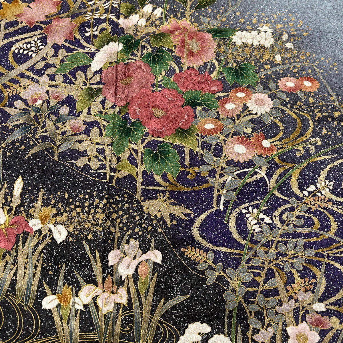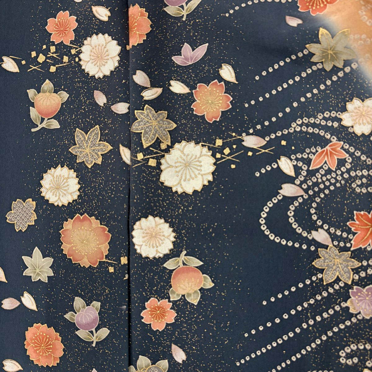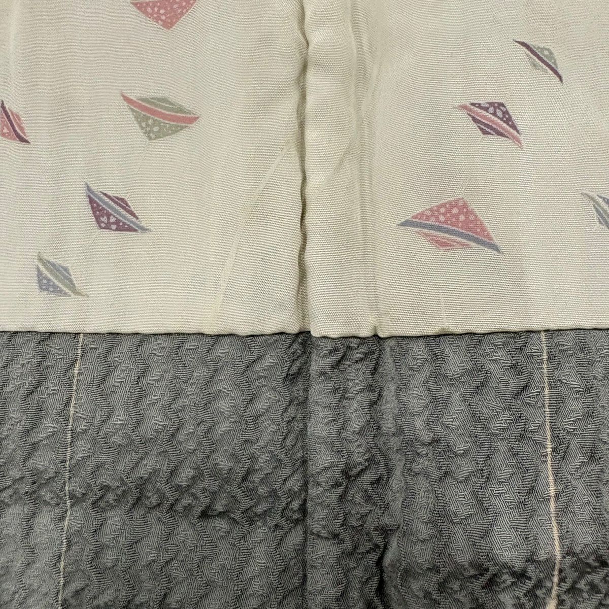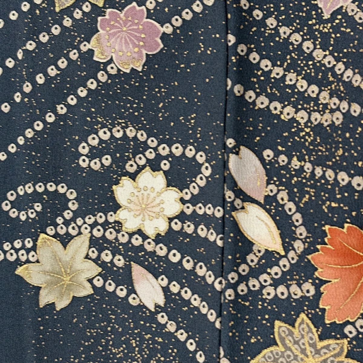 【最終値引き】 70%OFF 紬 身丈152.5cm 裄丈63cm S 袷 花 幾何学 墨色 正絹 秀品 K70