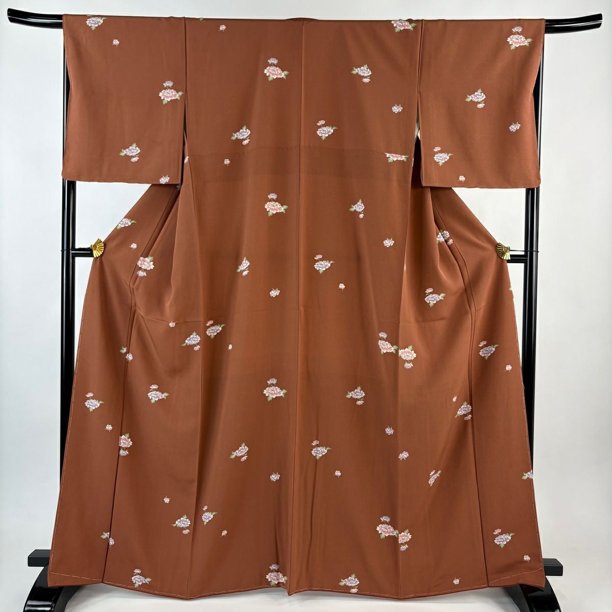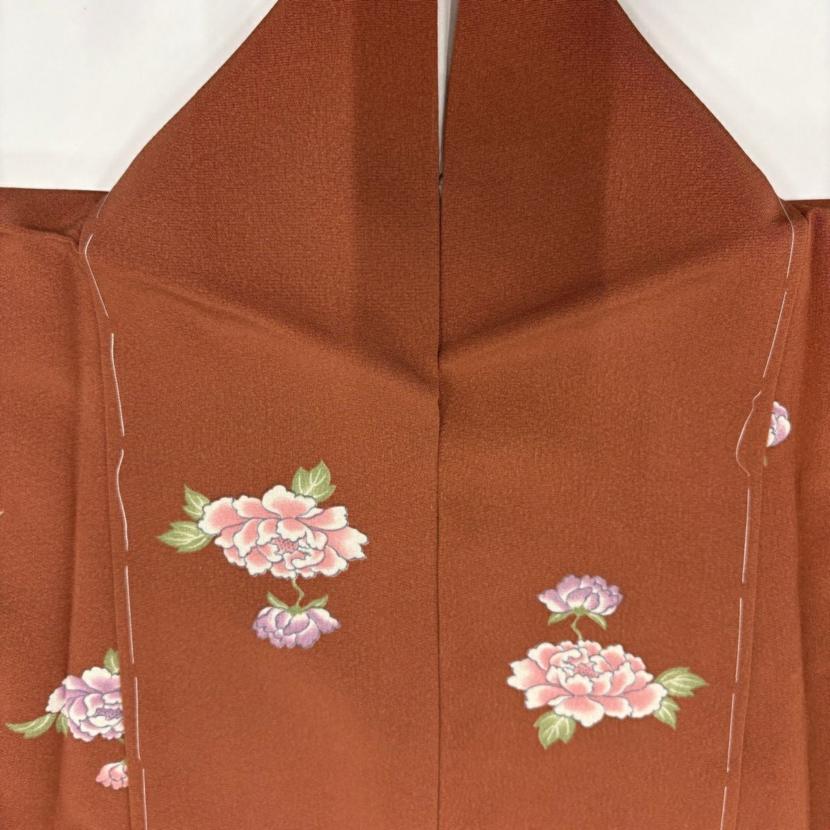 【最終値引き】 77%OFF 【美品】 小紋 身丈165cm 裄丈67cm M 袷 牡丹 赤茶 正絹 秀品 K70