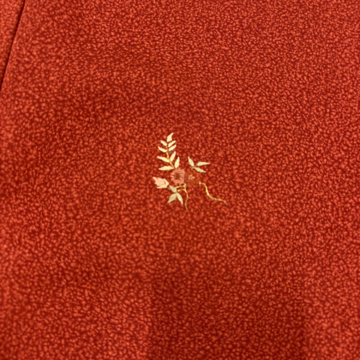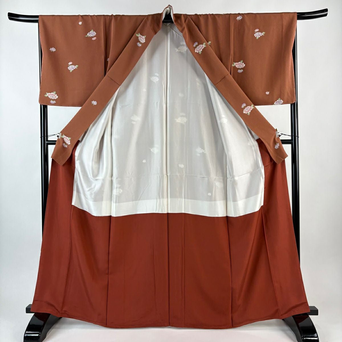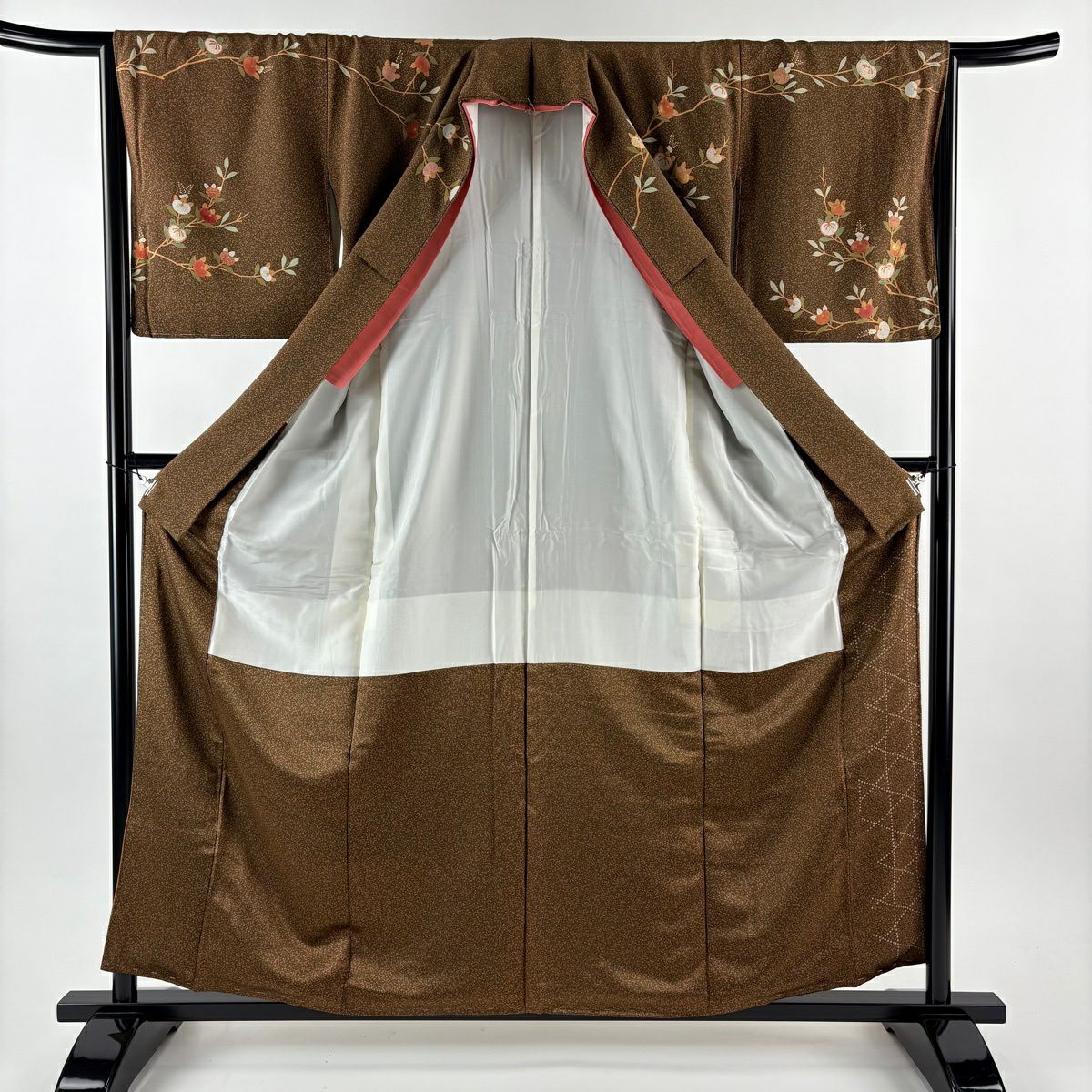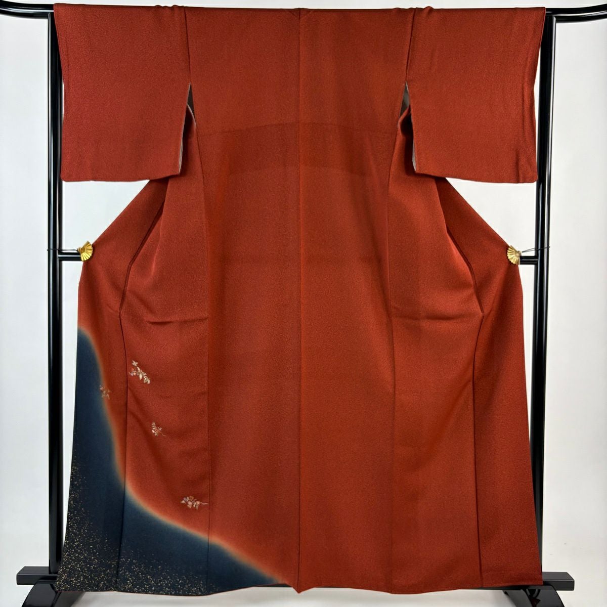 70%OFF 【美品】 付下げ 身丈160cm 裄丈65cm M 袷 草花 金糸 刺繍 赤茶 正絹 秀品 K70
