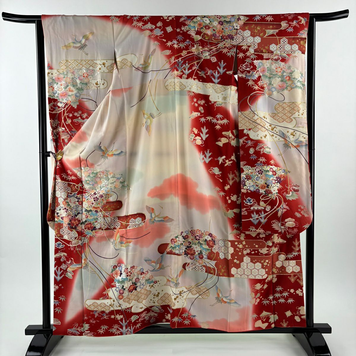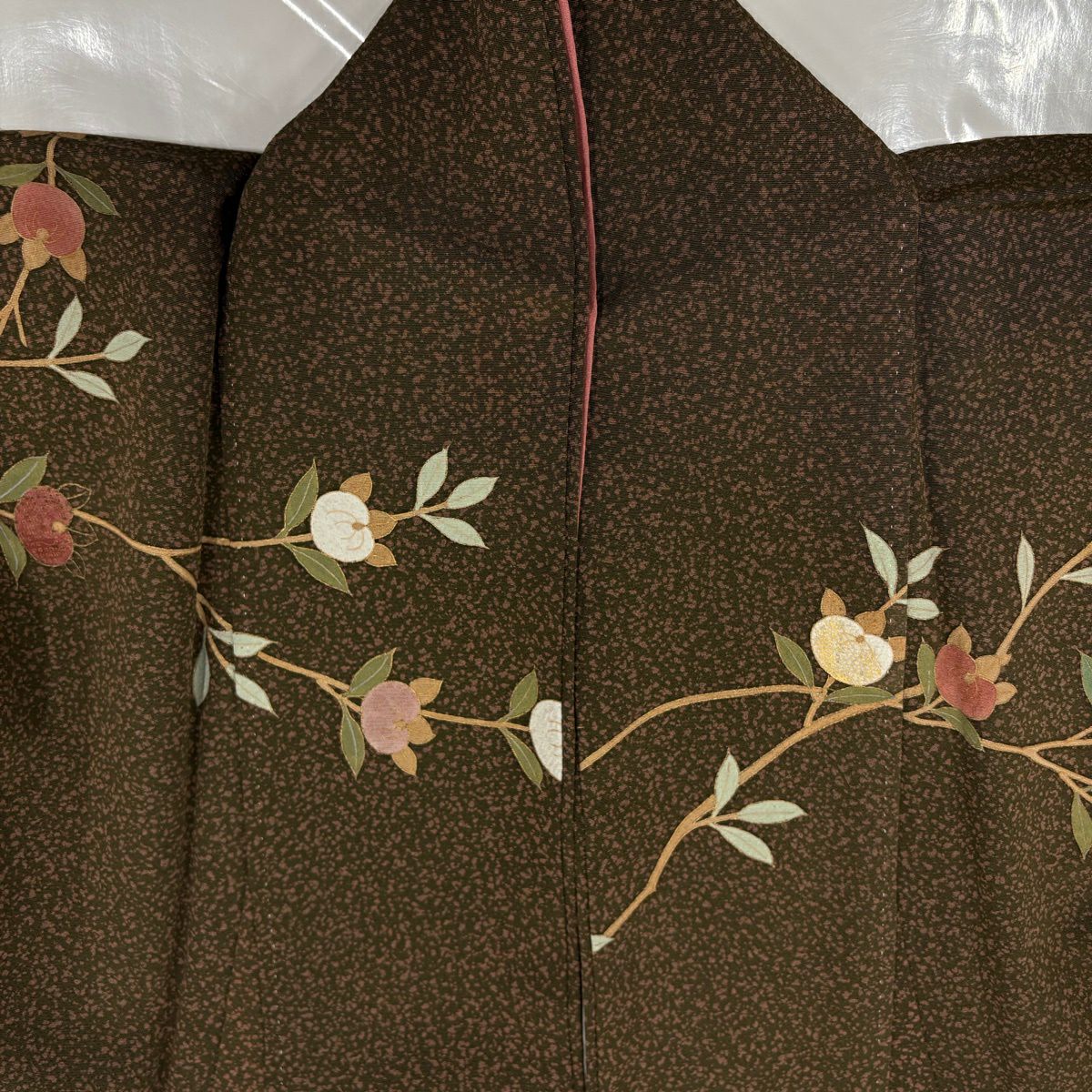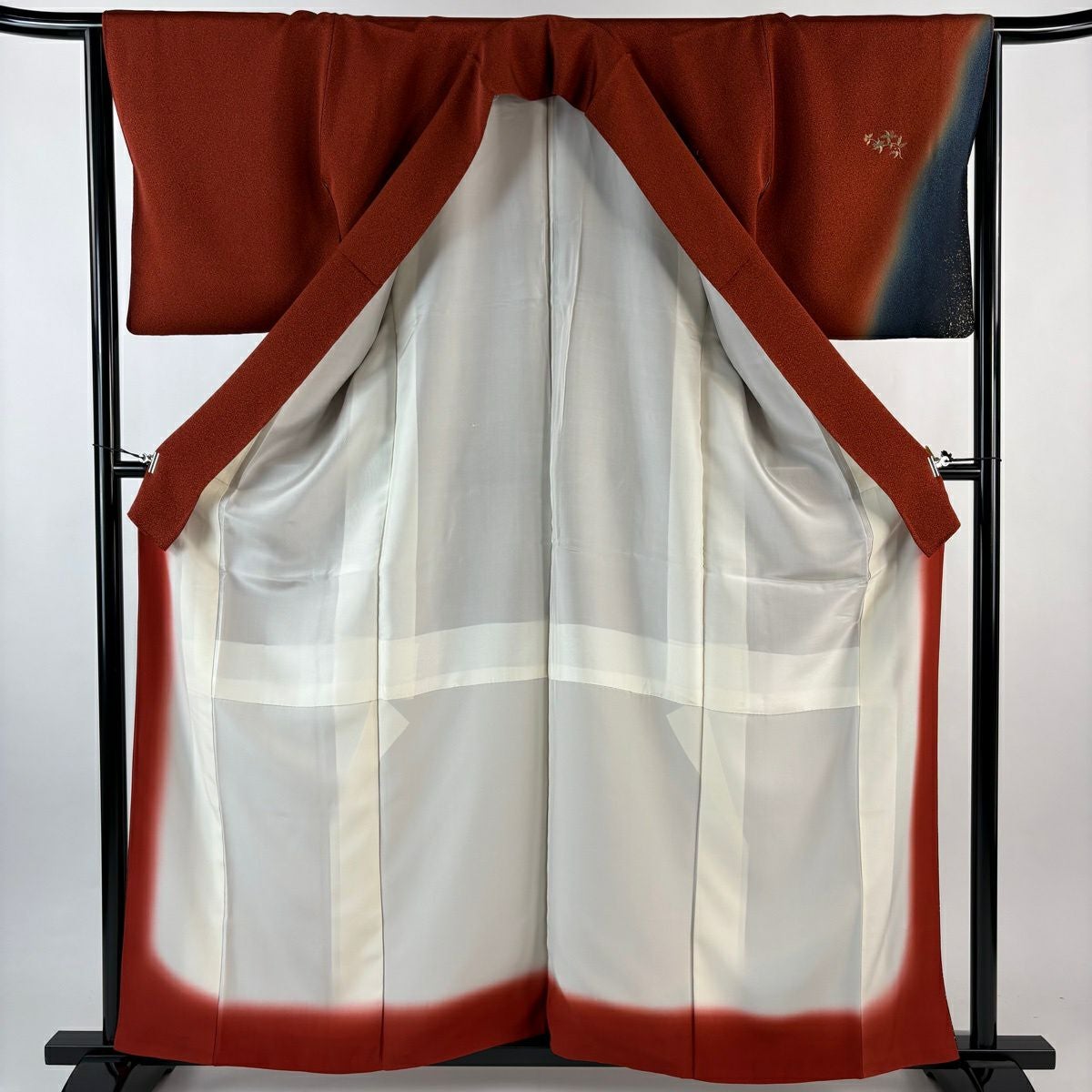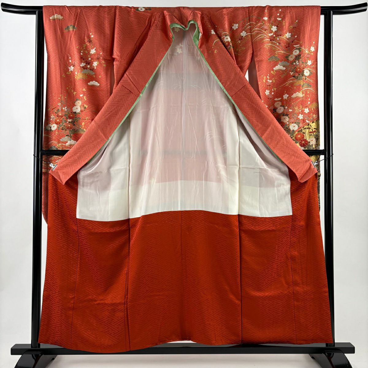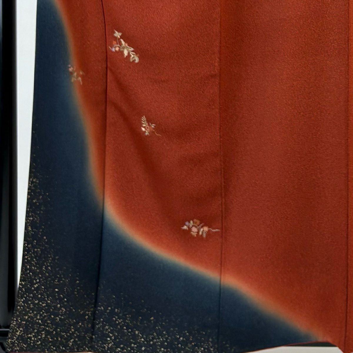 70%OFF 【美品】 付下げ 身丈160cm 裄丈65cm M 袷 草花 金糸 刺繍 赤茶 正絹 秀品 K70