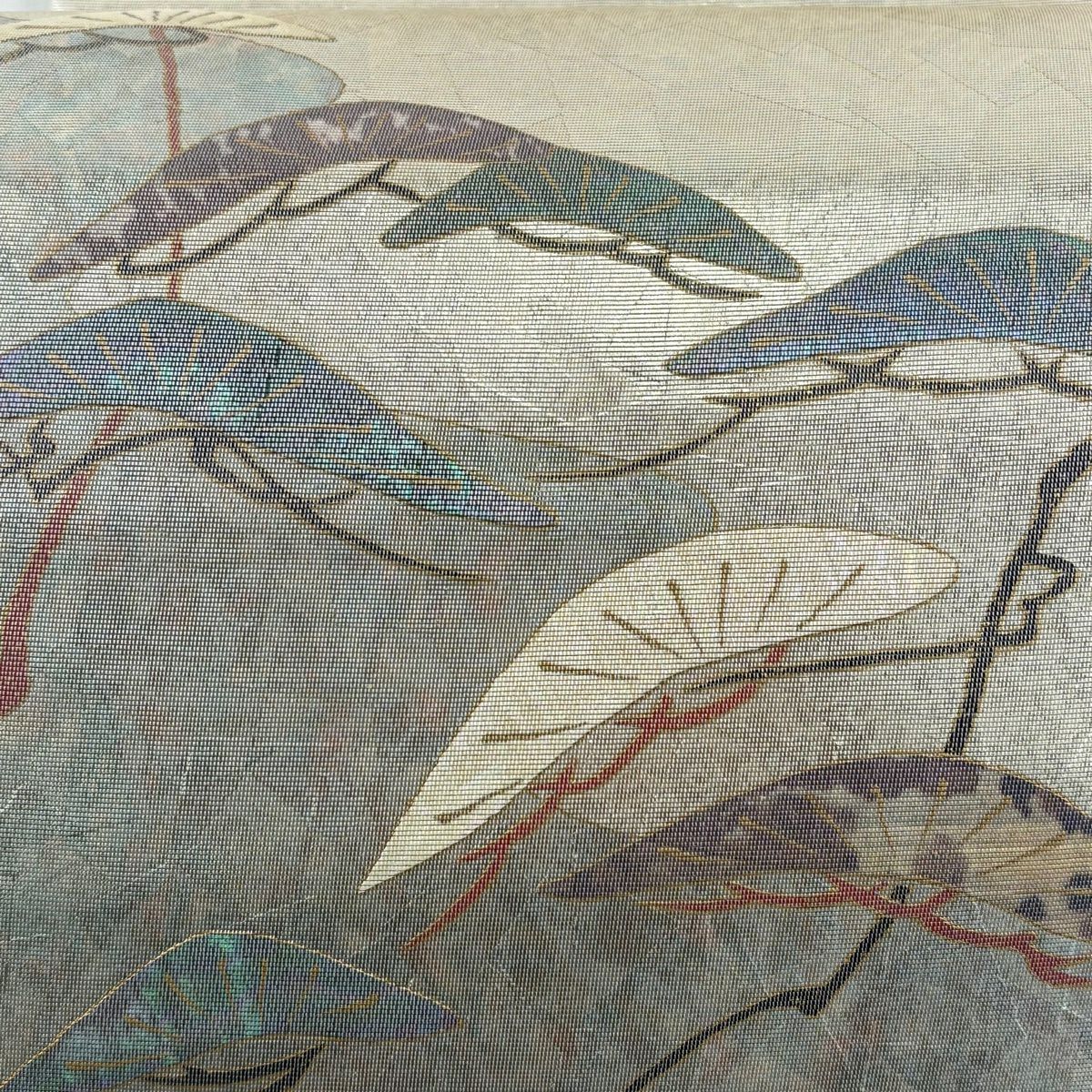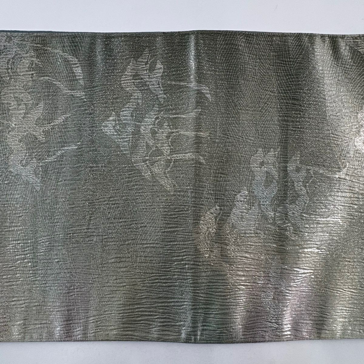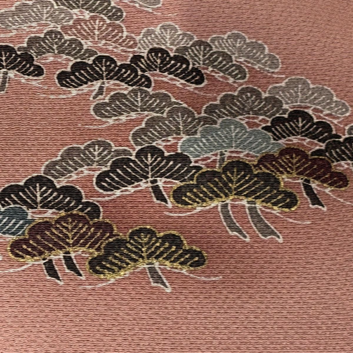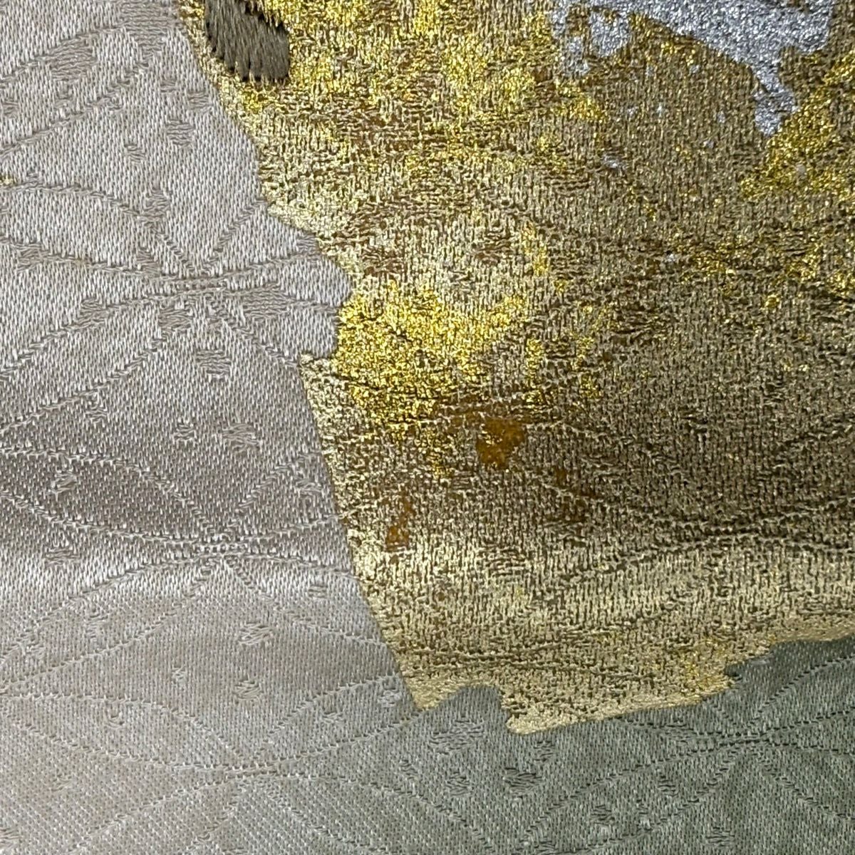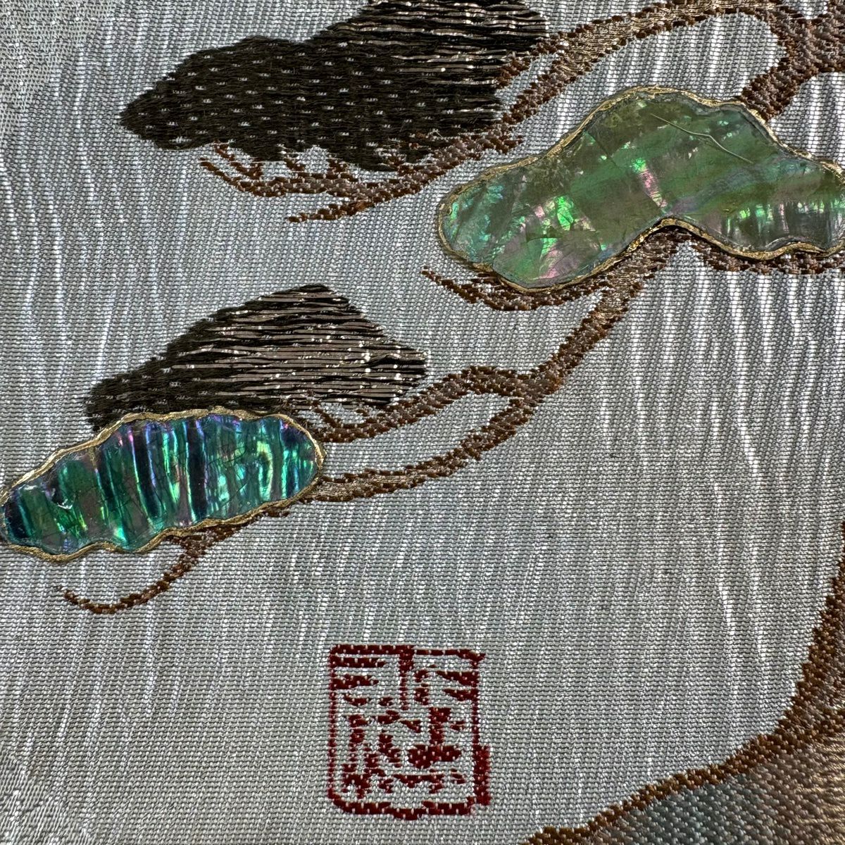 【最終値引き】 77%OFF 【美品】 袋帯 秀品 ワンポイント柄 松 波 箔 螺鈿 灰緑 六通 正絹 K70