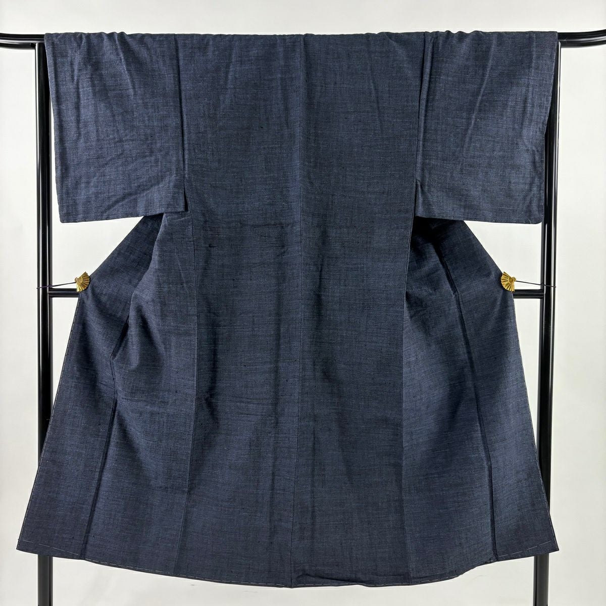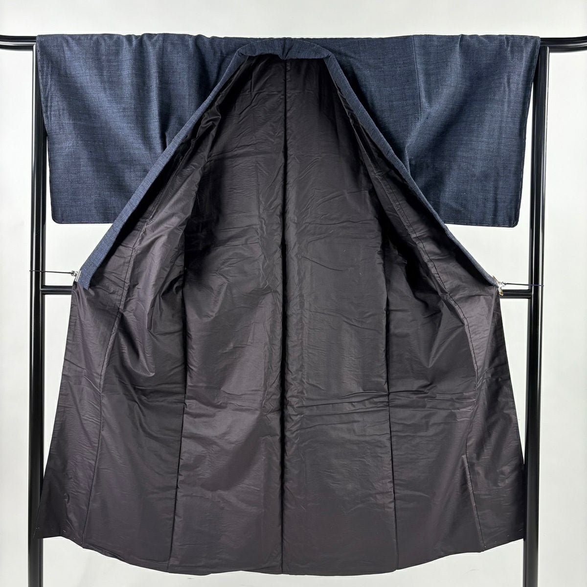 【最終値引き】 77%OFF 【美品】 男着物 身丈144cm 裄丈66cm M 袷 紬 濃紺 正絹 秀品 K70