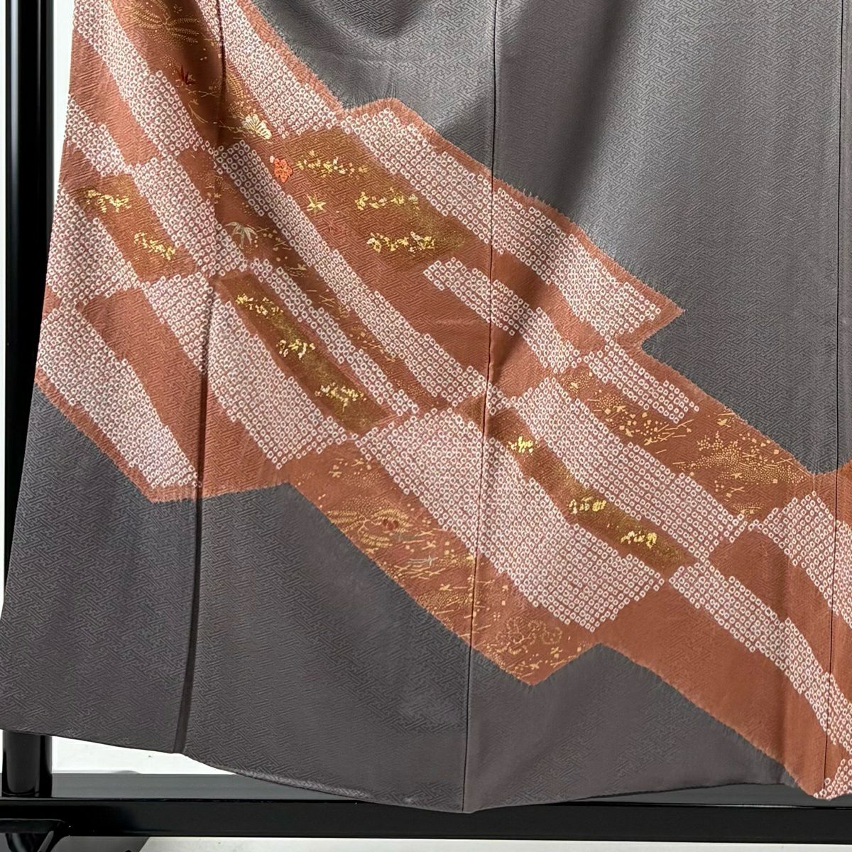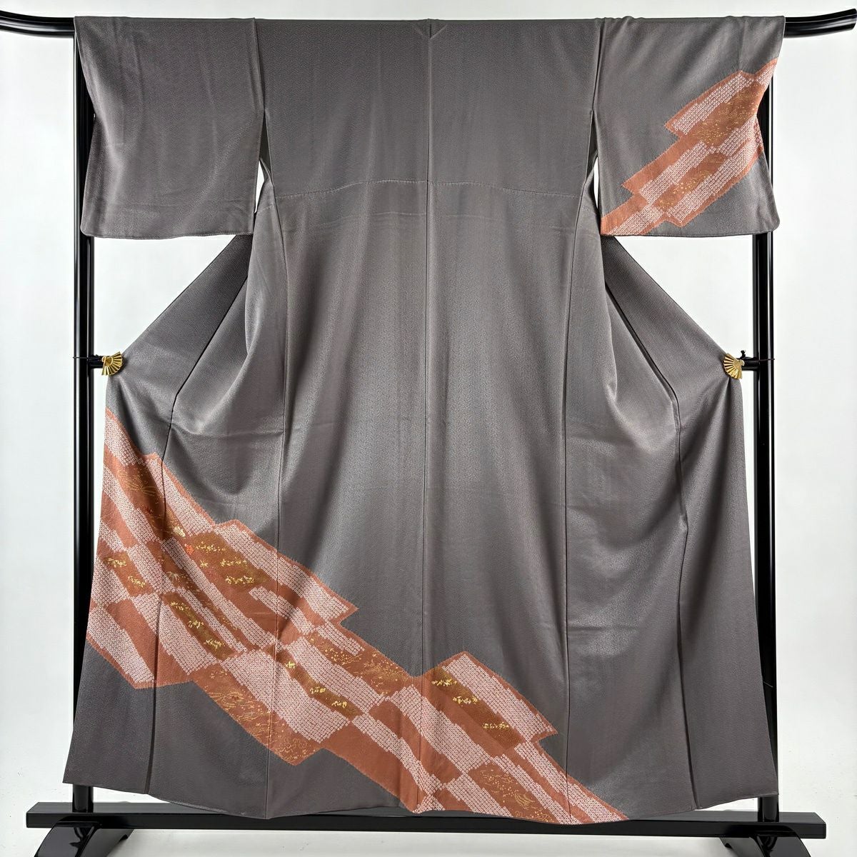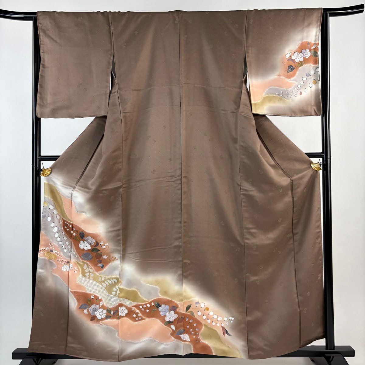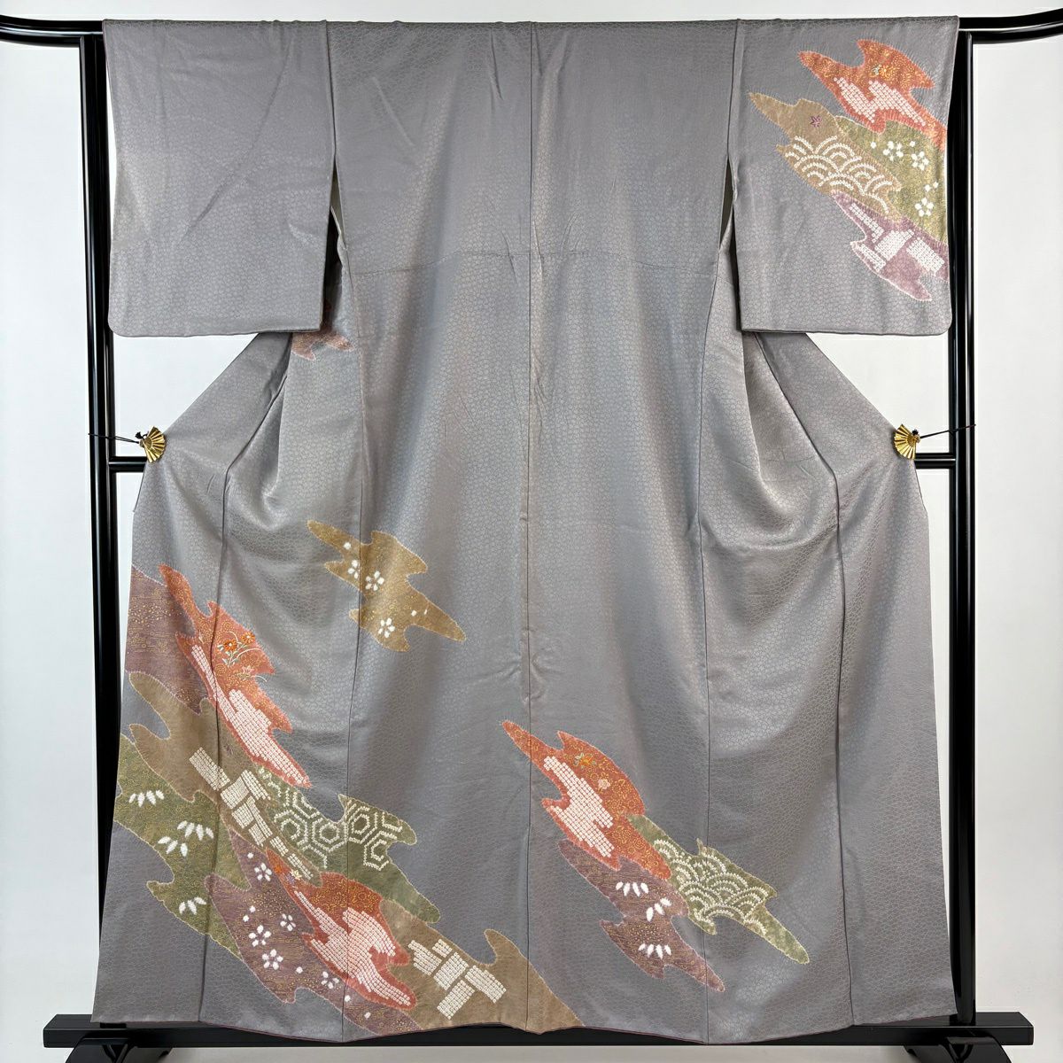 70%OFF 訪問着 身丈159.5cm 裄丈65cm M 袷 辻が花柄 金銀彩 ぼかし 灰茶 正絹 秀品 K70