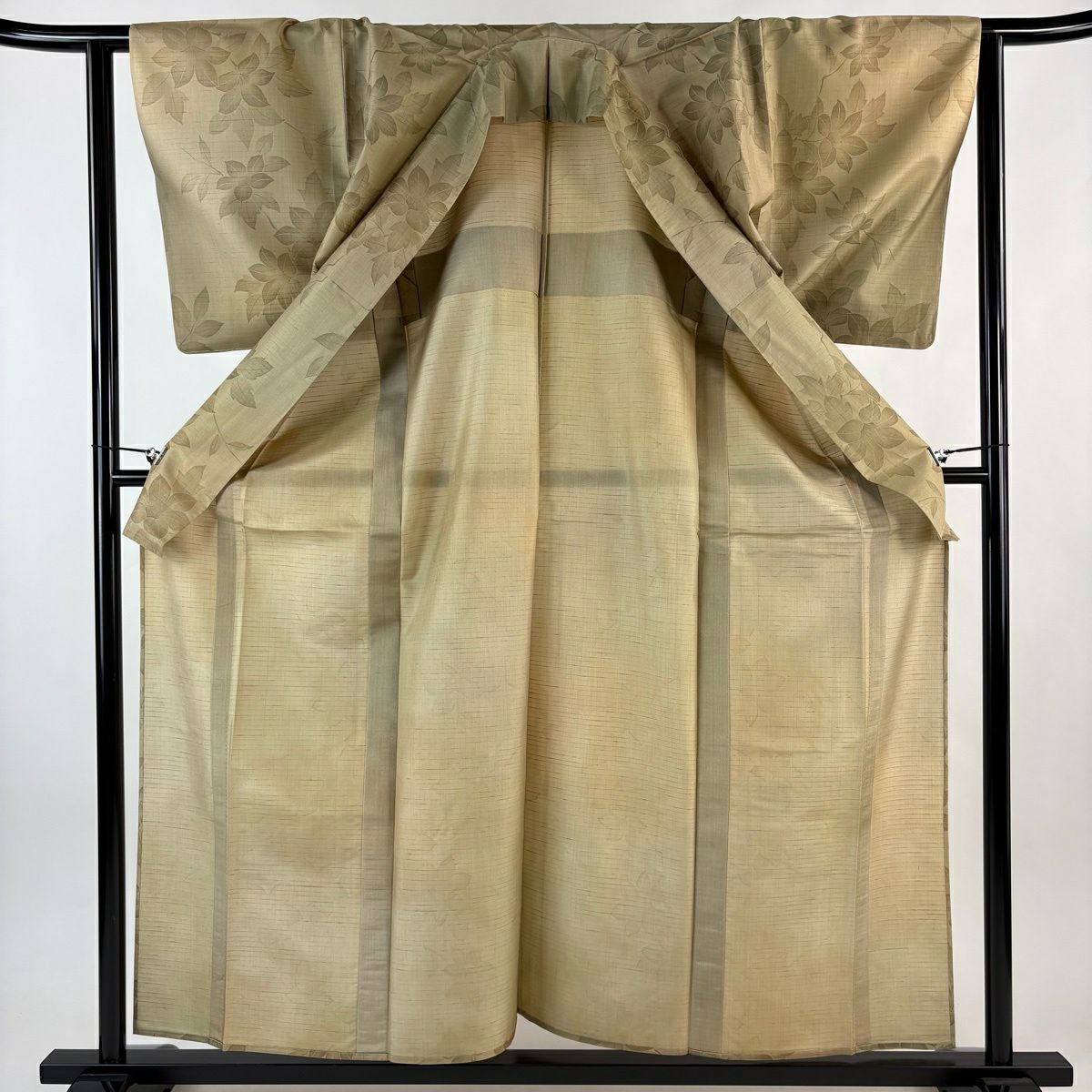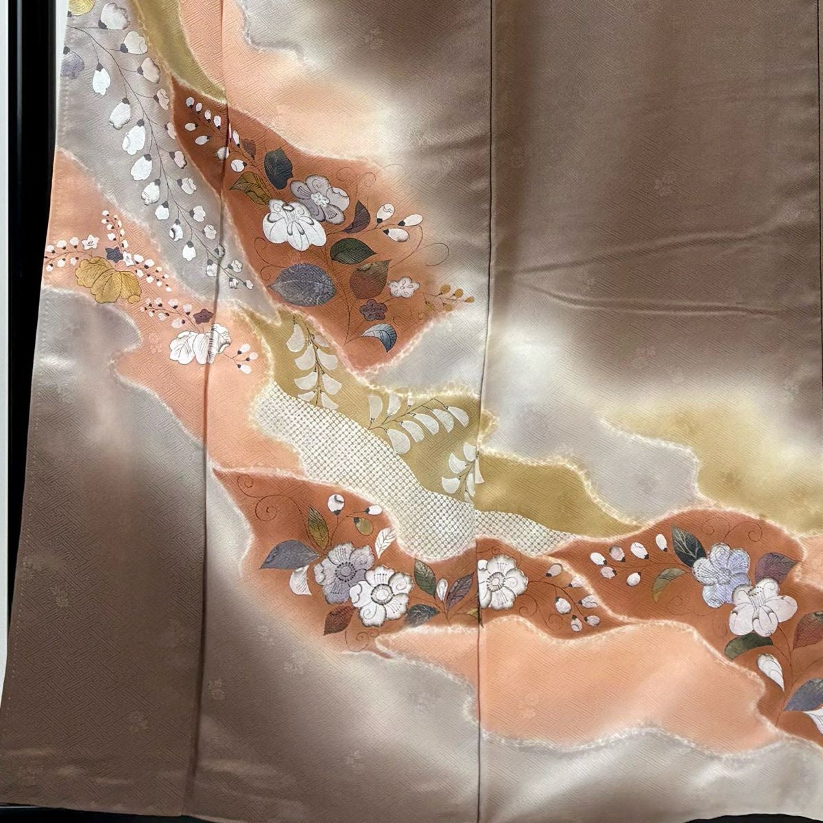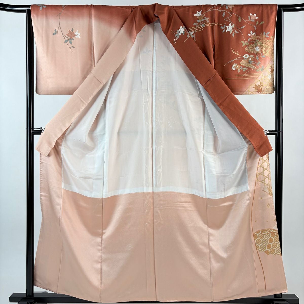 70%OFF 付下げ 身丈167.5cm 裄丈67cm M 袷 紬地 草花 ぼかし 山吹茶色 正絹 秀品 K70