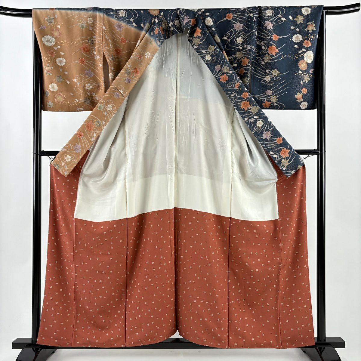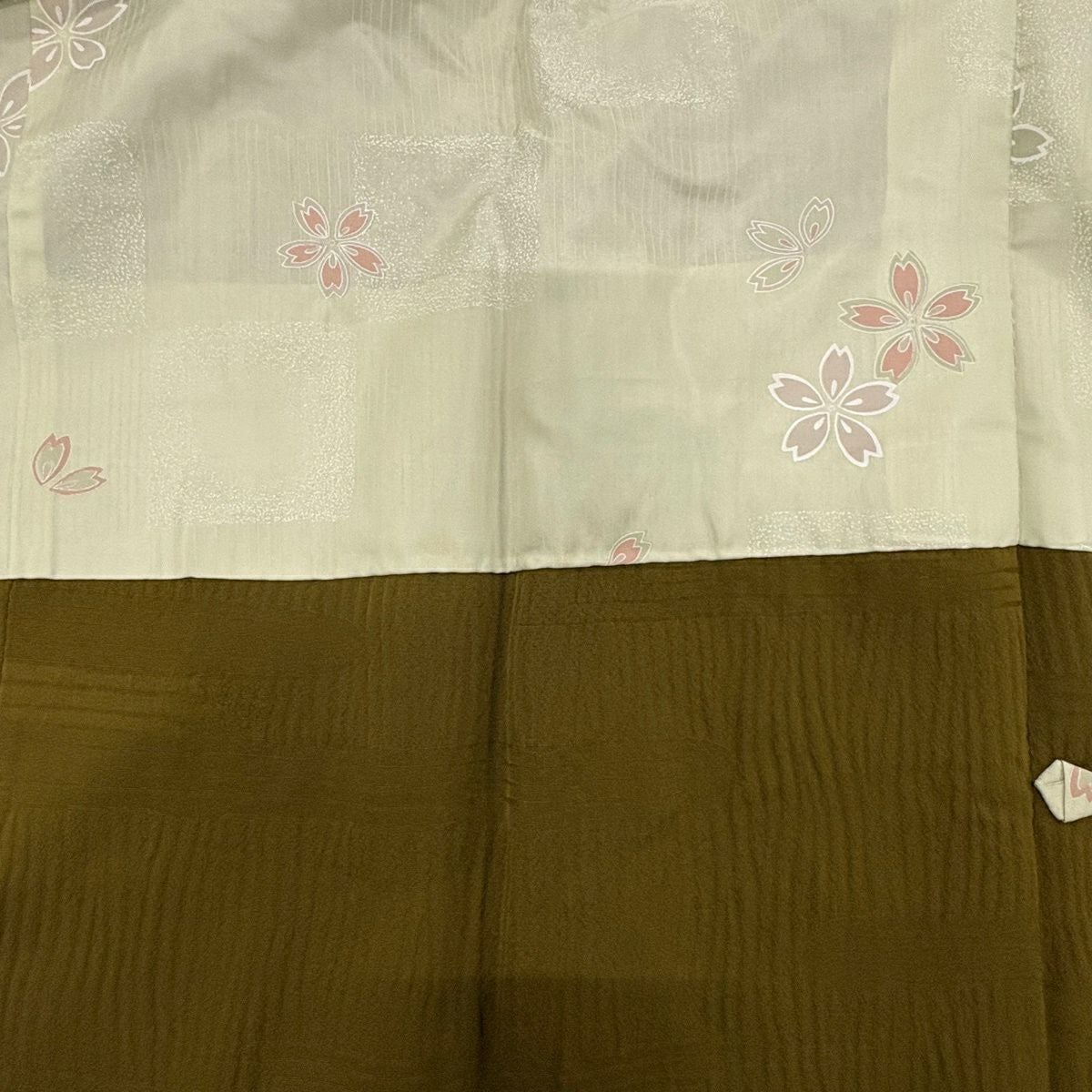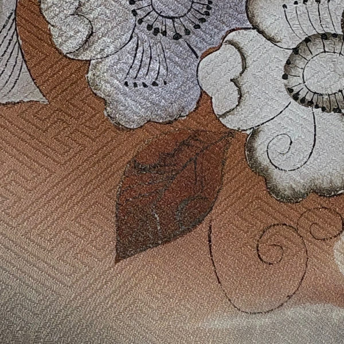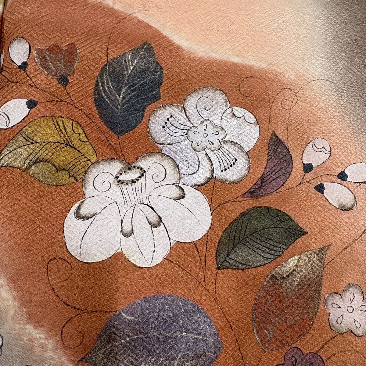 70%OFF 付下げ 身丈167.5cm 裄丈67cm M 袷 紬地 草花 ぼかし 山吹茶色 正絹 秀品 K70