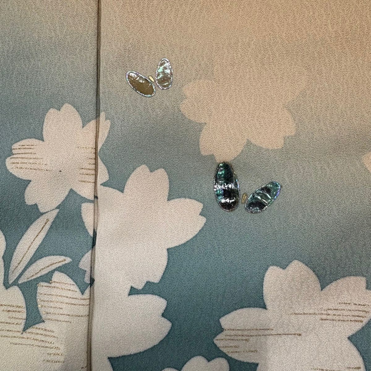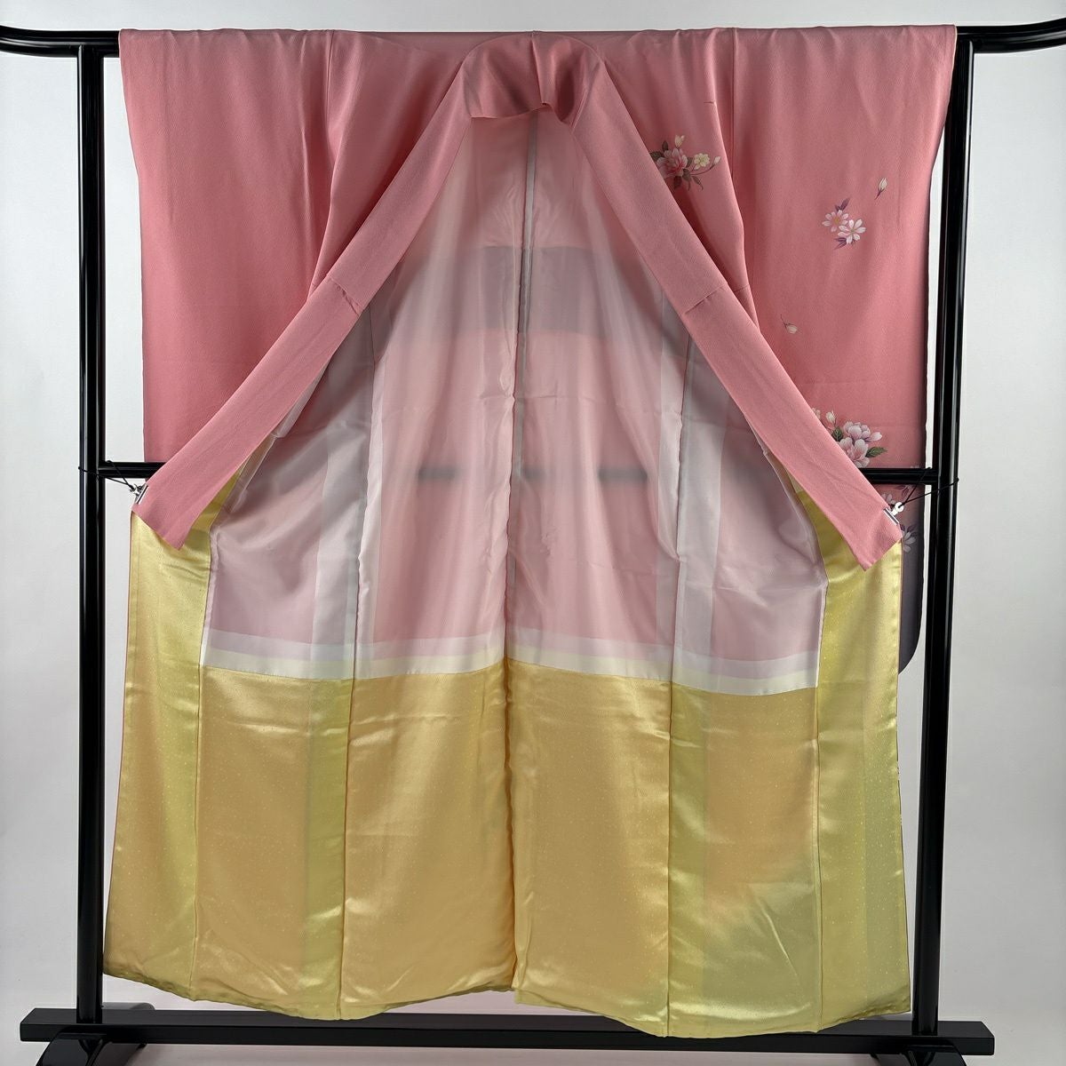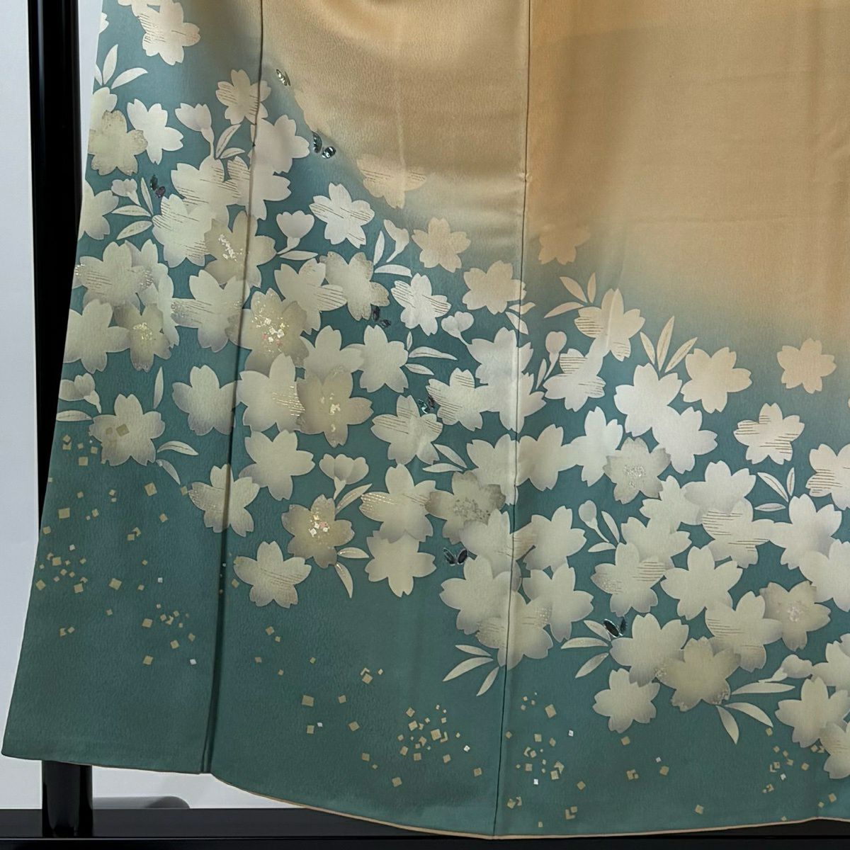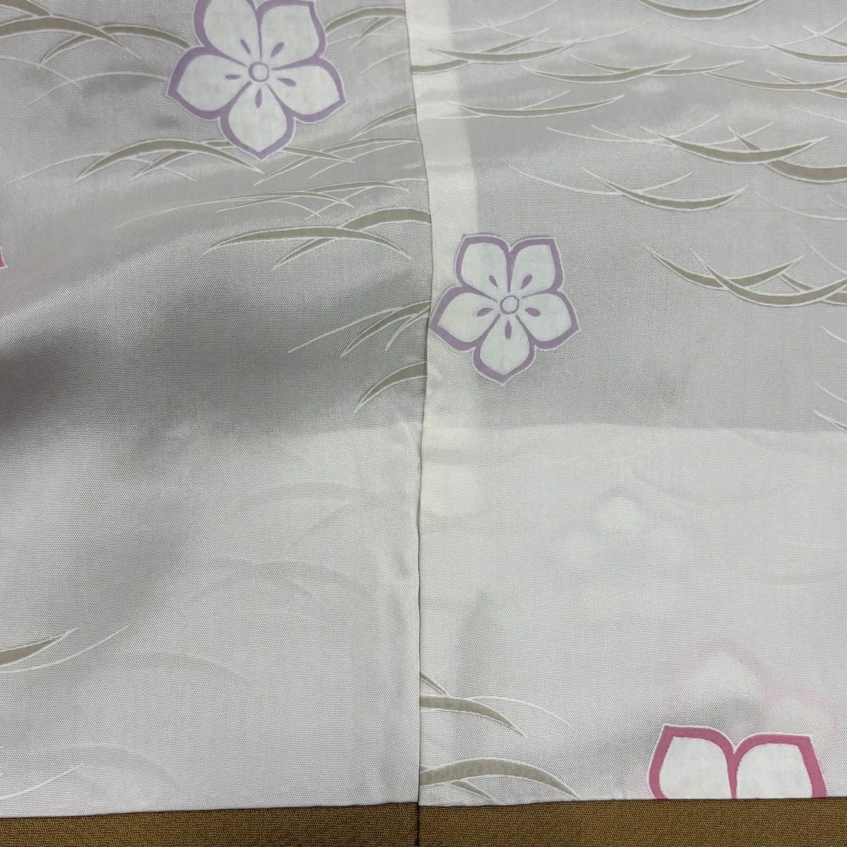 70%OFF 付下げ 身丈153.5cm 裄丈64.5cm M 袷 桜 蝶 螺鈿 金銀彩 薄茶色 正絹 秀品 K70