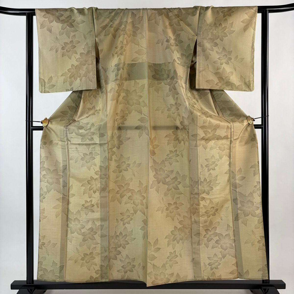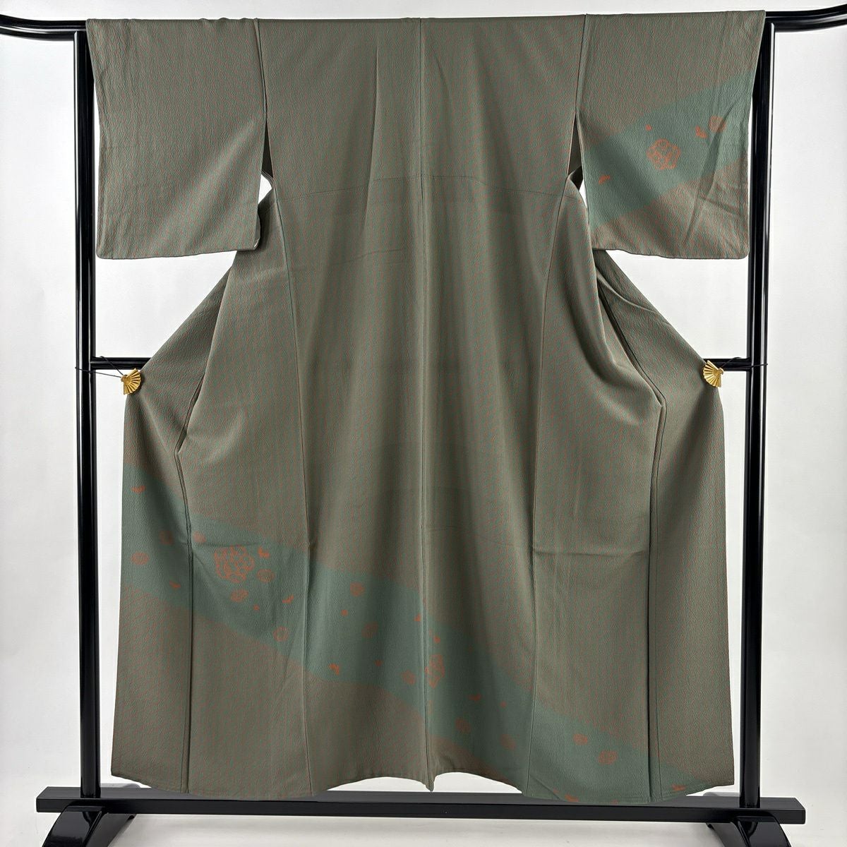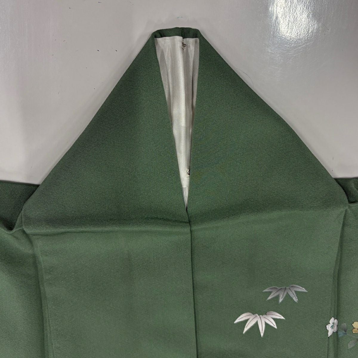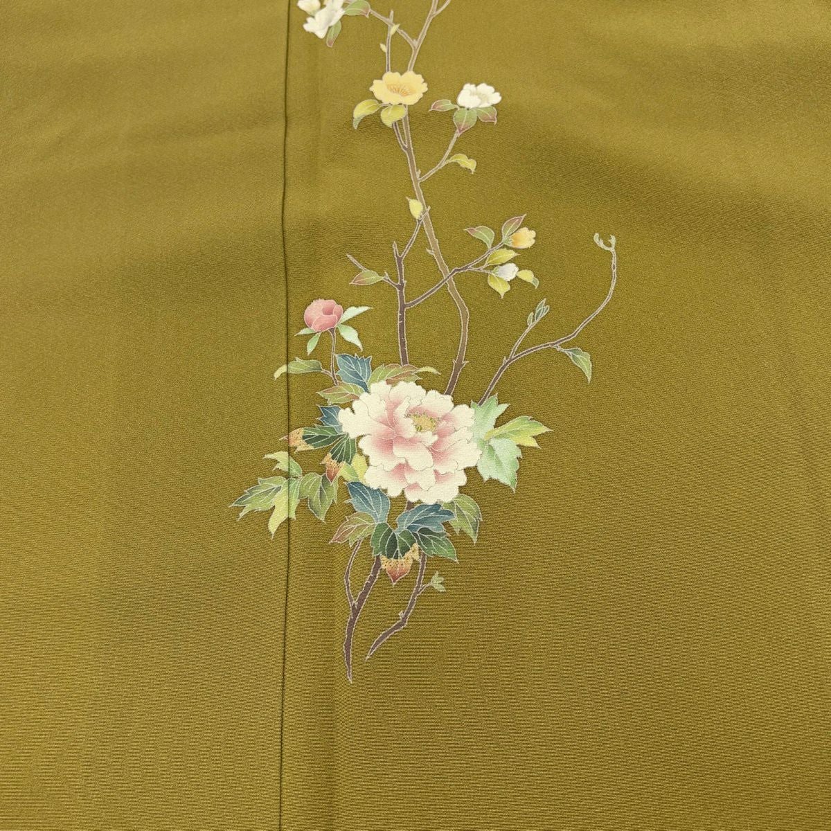 70%OFF 付下げ 身丈164.5cm 裄丈64cm M 袷 鼓 草花 金彩 ぼかし 鶯色 正絹 秀品 K70