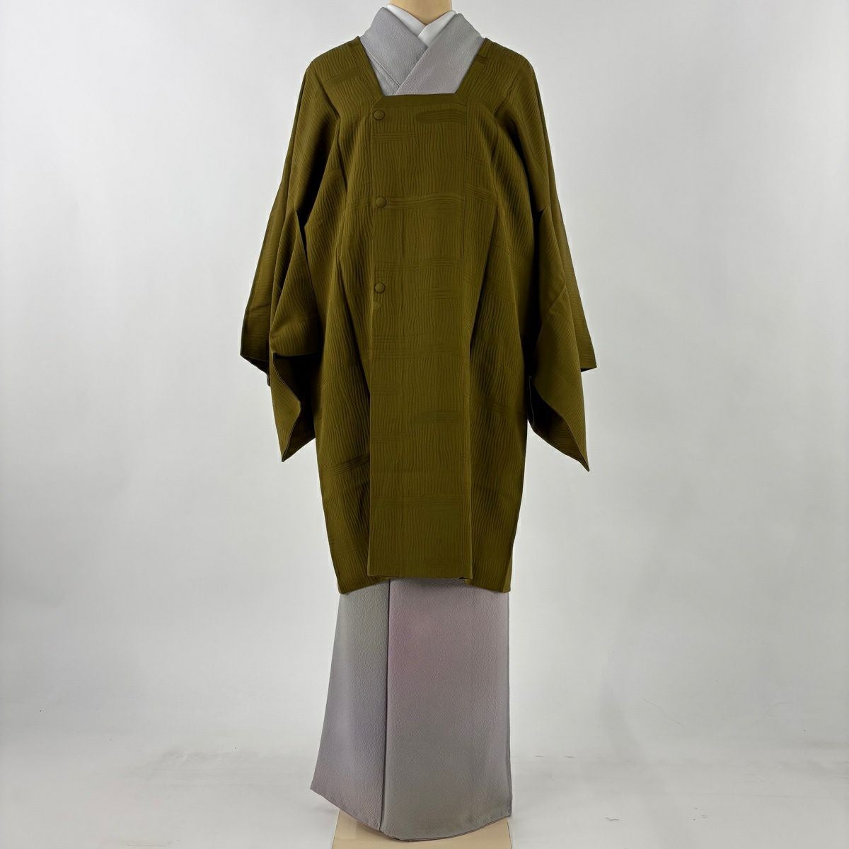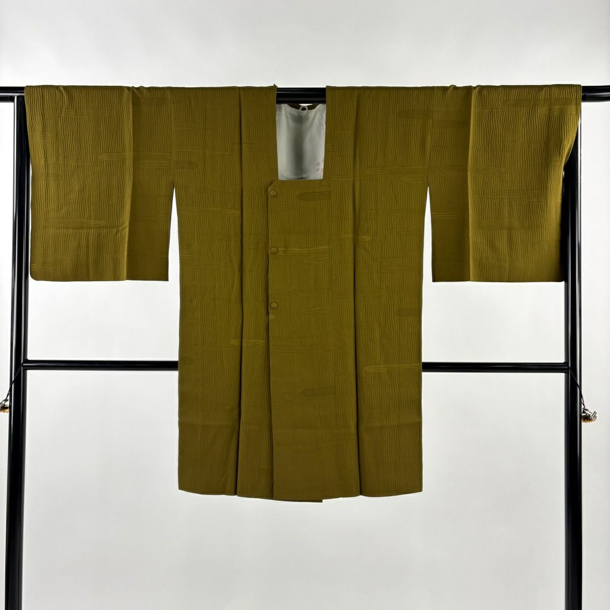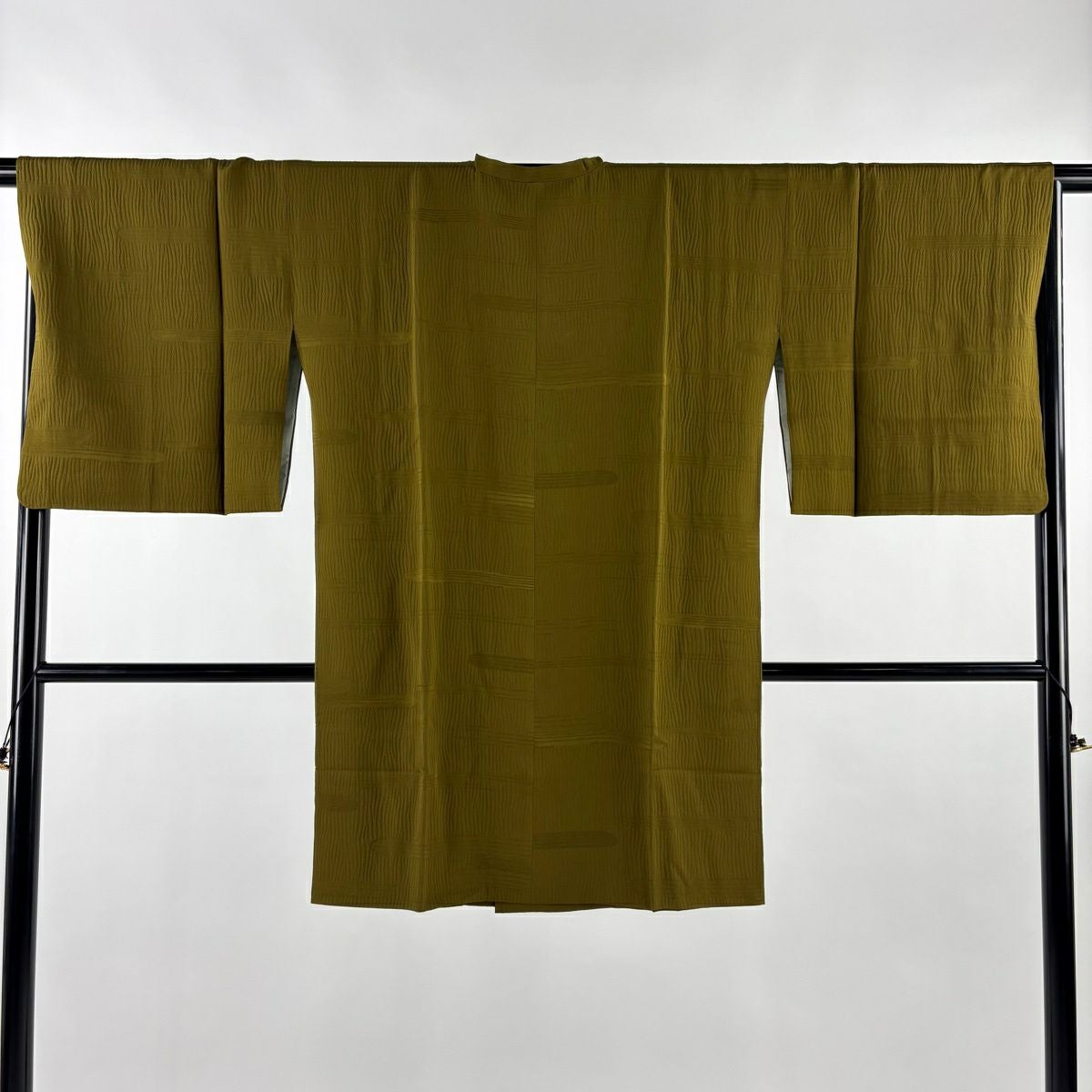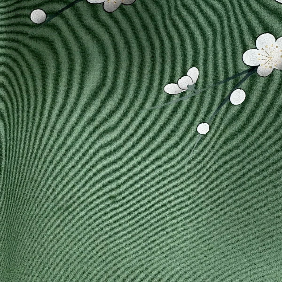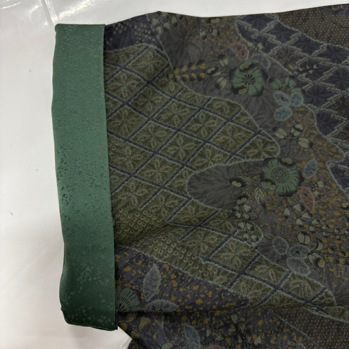 70%OFF 付下げ 身丈164.5cm 裄丈64cm M 袷 鼓 草花 金彩 ぼかし 鶯色 正絹 秀品 K70