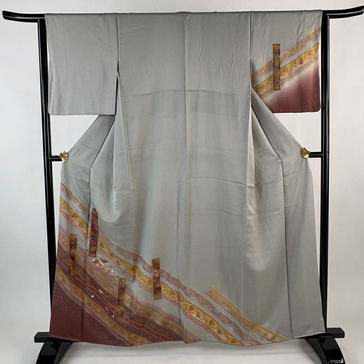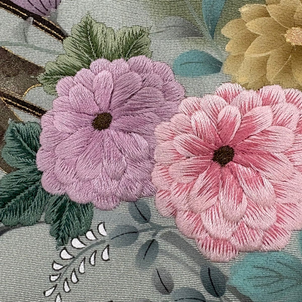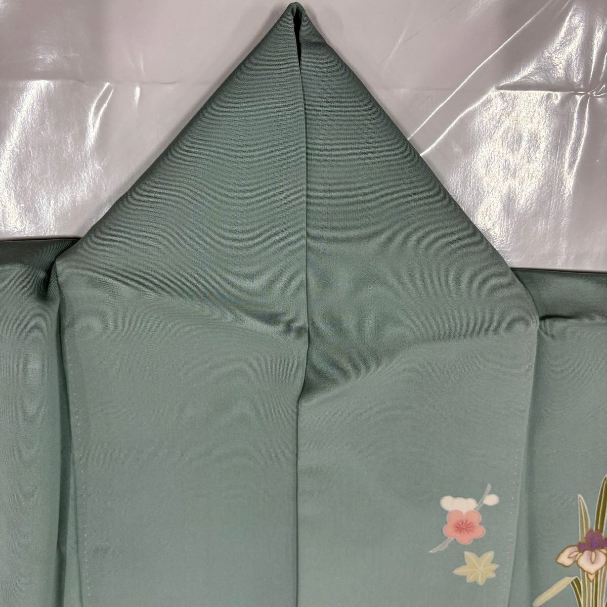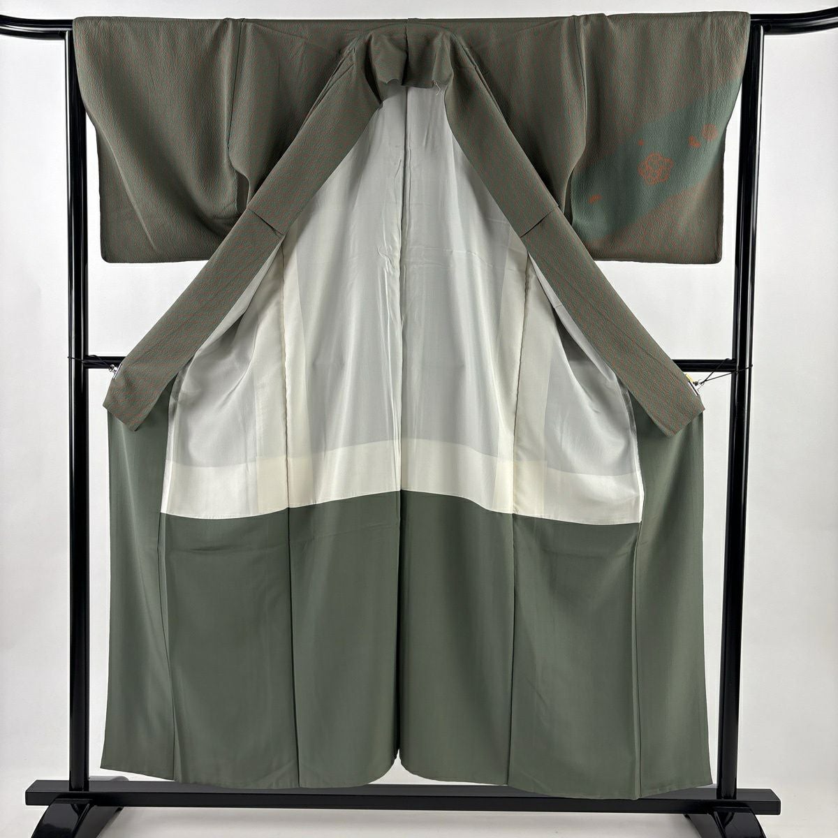 70%OFF 付下げ 身丈159cm 裄丈65cm M 袷 花籠 破れ色紙 刺繍 金彩 灰緑 正絹 秀品 K70