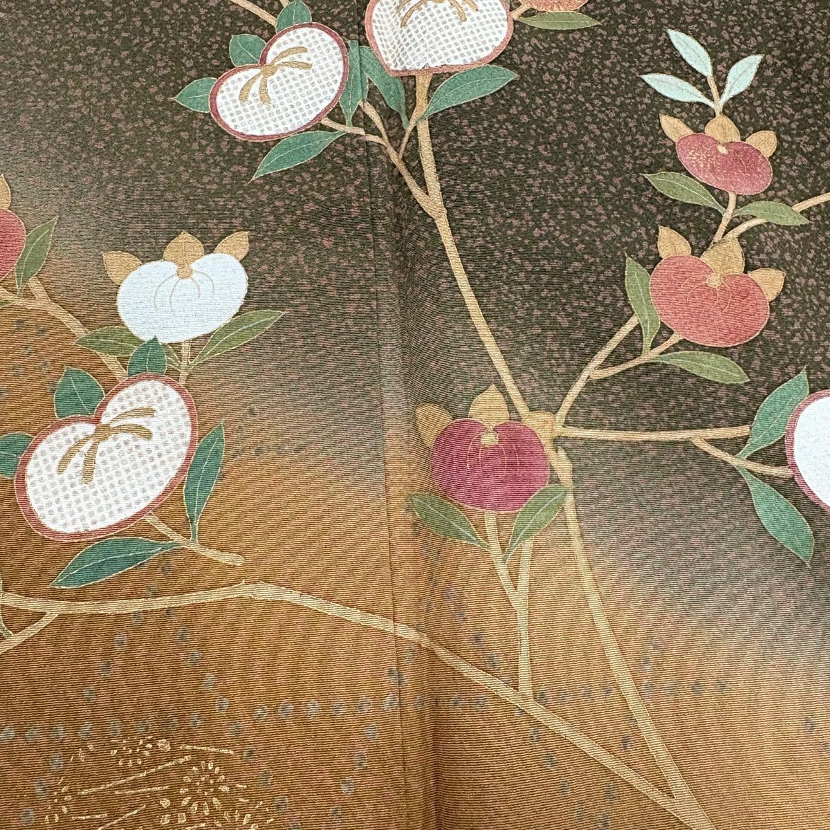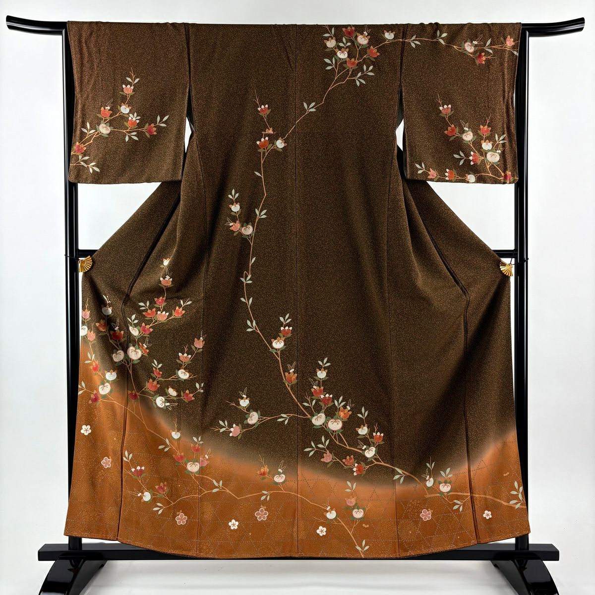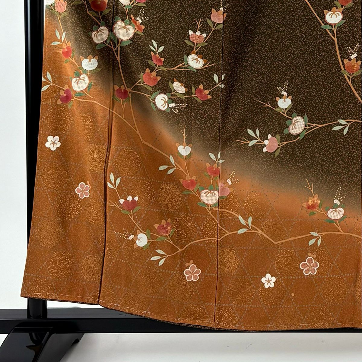 70%OFF 訪問着 身丈158.5cm 裄丈66cm M 袷 橘 梅 金彩 染め分け 茶色 正絹 秀品 K70