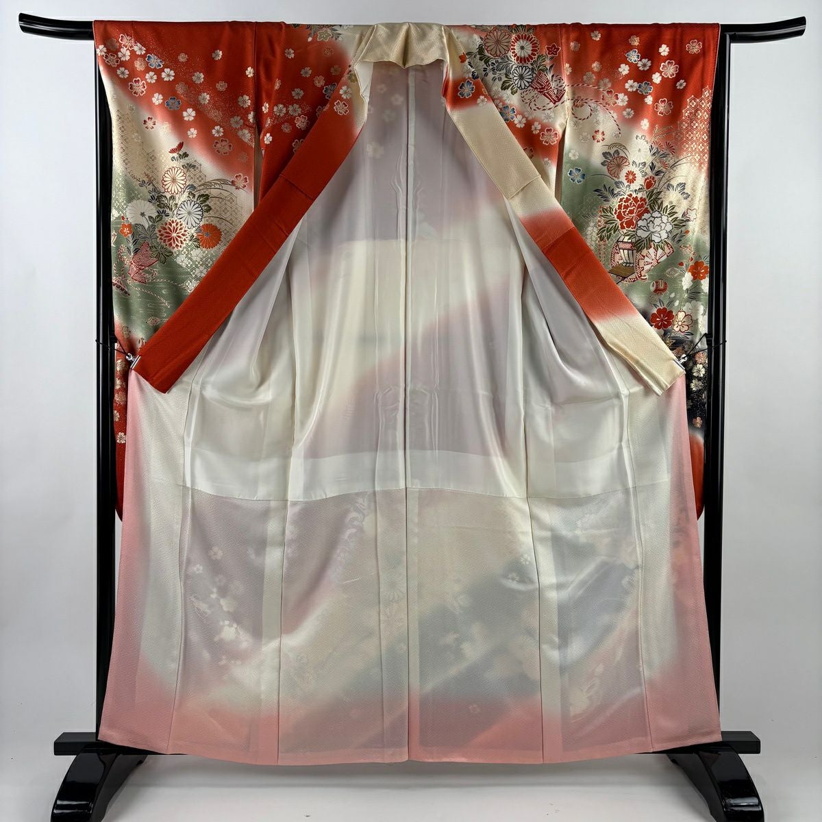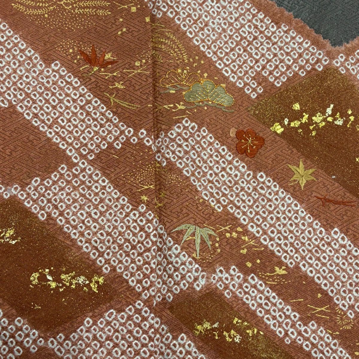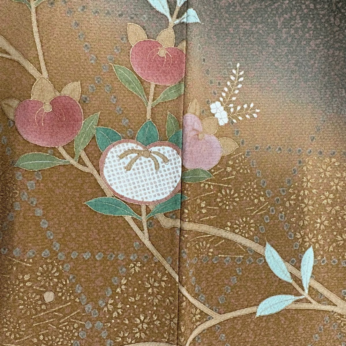 70%OFF 付下げ 身丈167cm 裄丈65cm M 袷 色紙 花鳥 金彩 ぼかし 黄土色 正絹 秀品 K70
