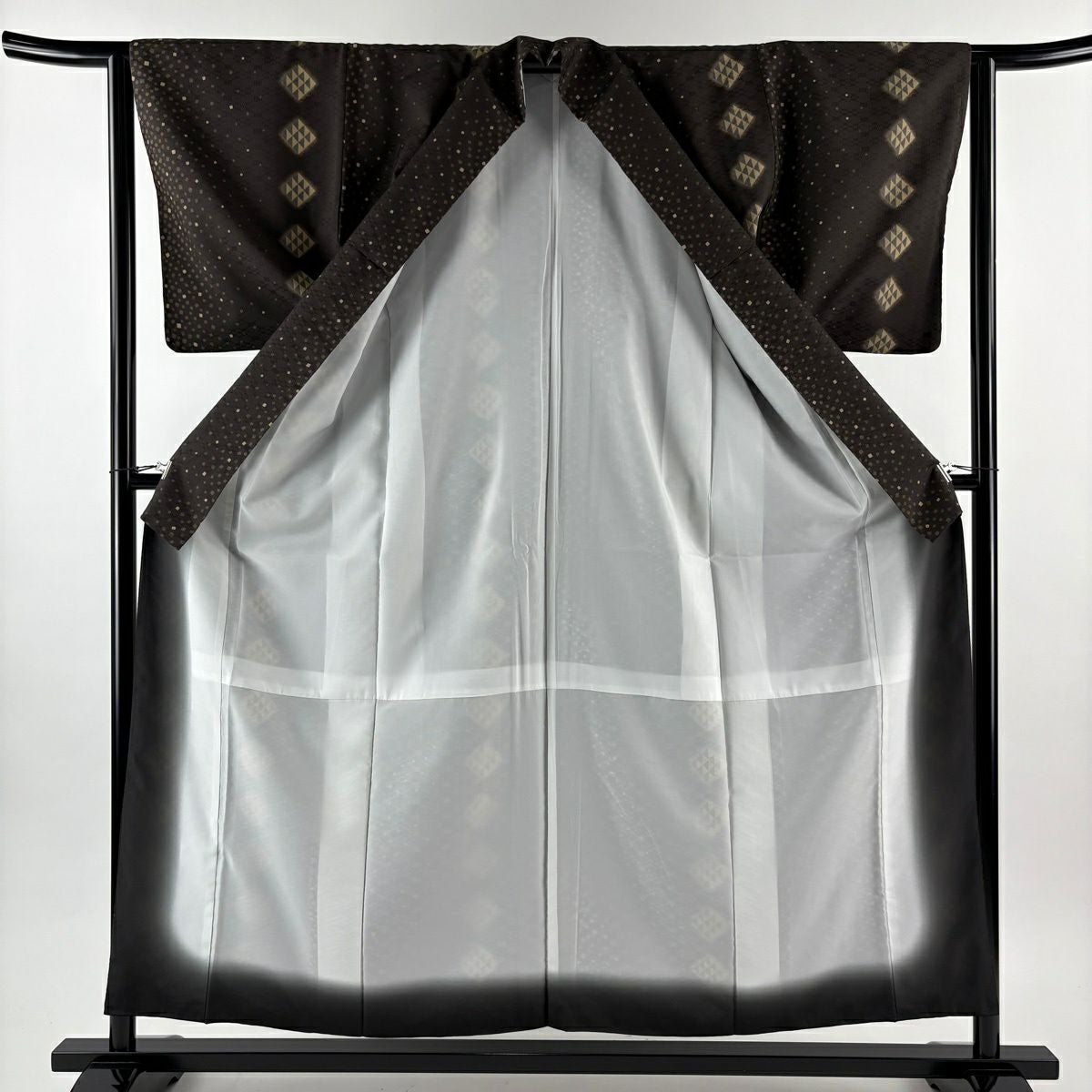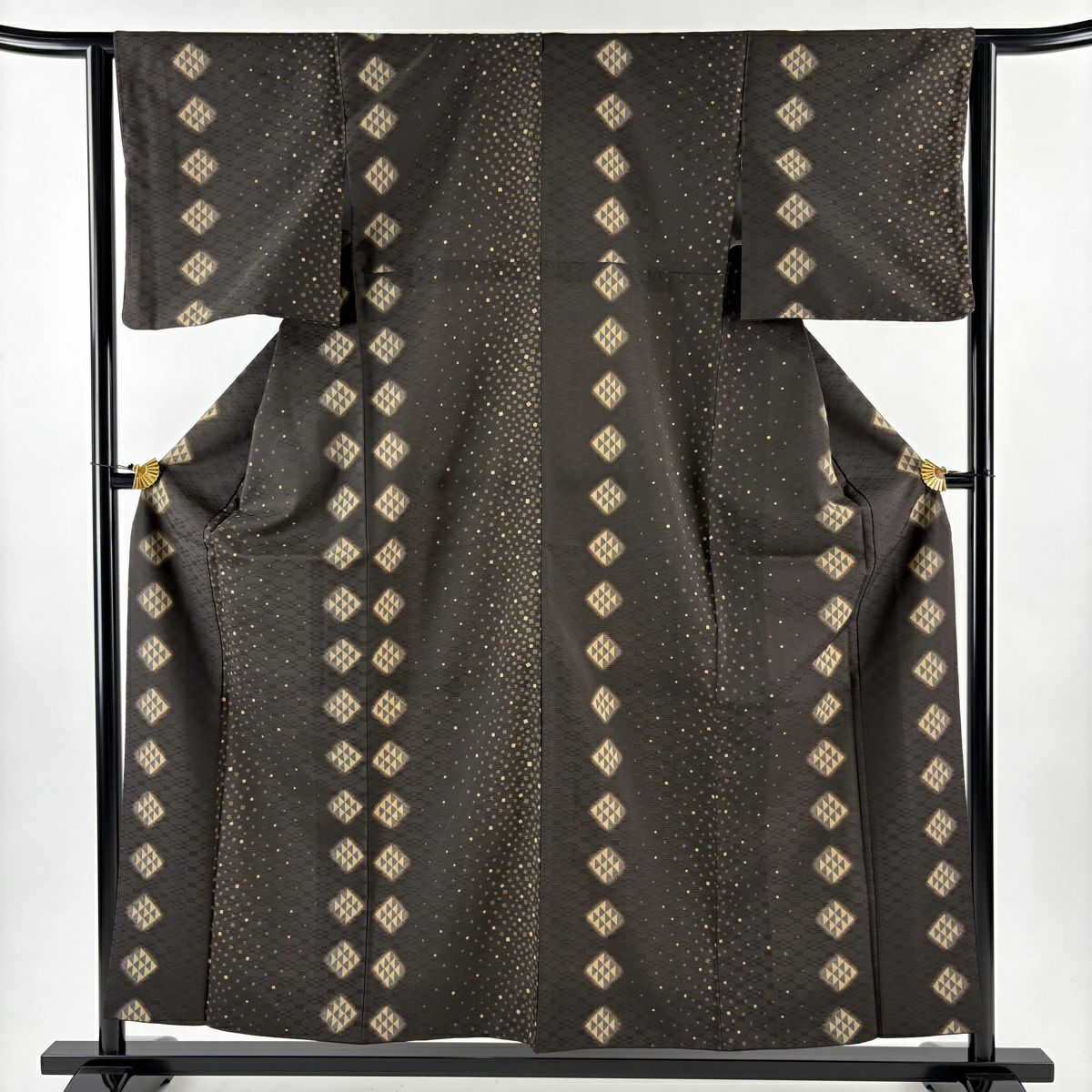 70%OFF 【美品】 小紋 身丈156.5cm 裄丈62cm S 袷 鱗 菱 金彩 焦茶色 正絹 秀品 K70