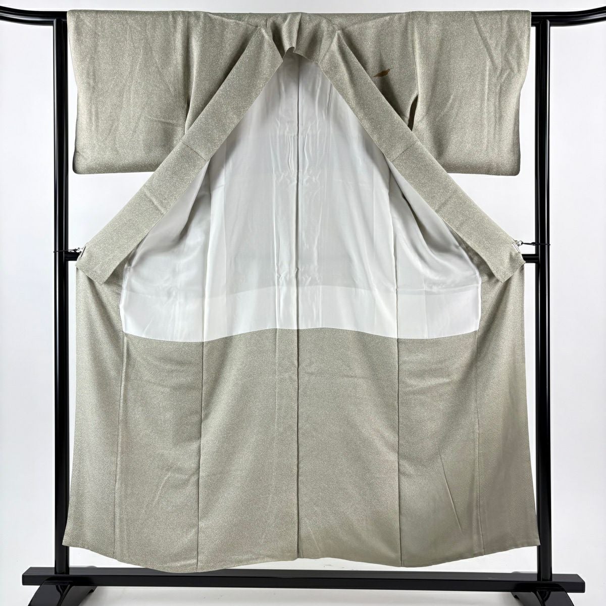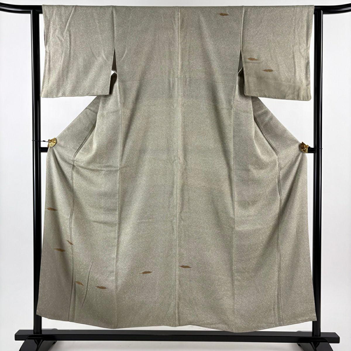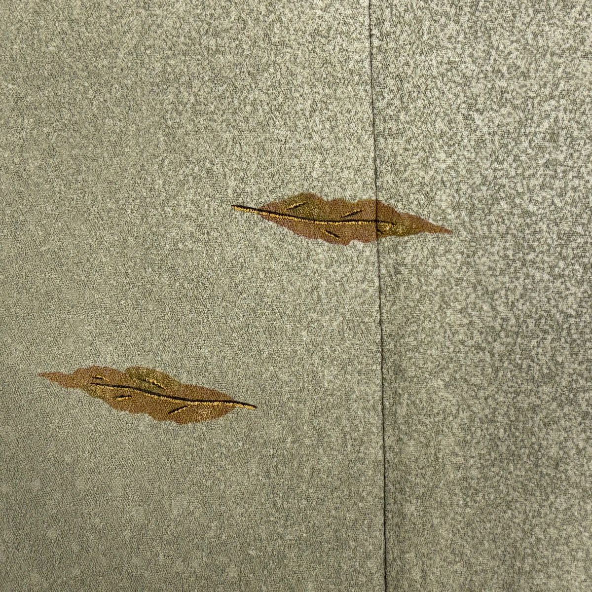 70%OFF 付下げ 身丈154cm 裄丈62cm S 袷 葉柄 金彩 ぼかし 灰緑 正絹 秀品 一つ紋 K70