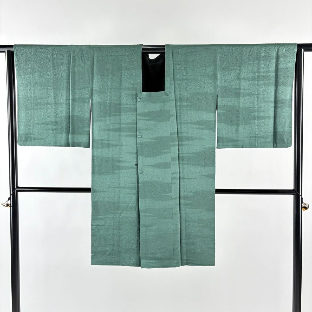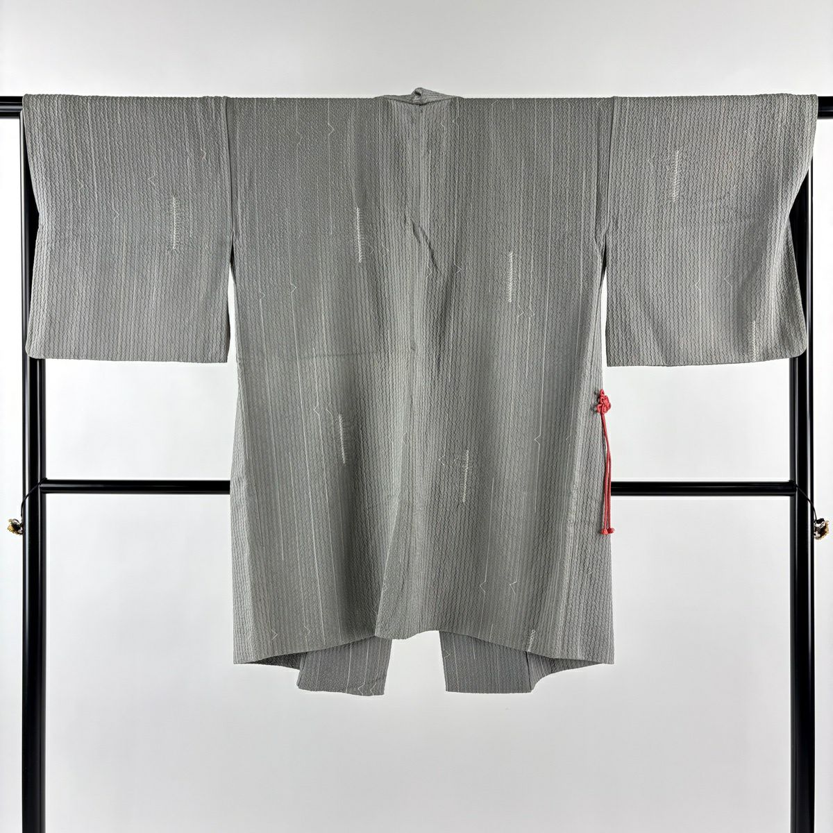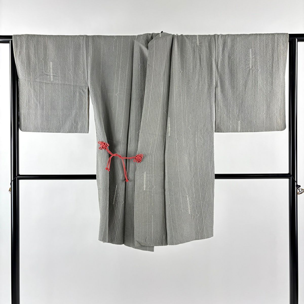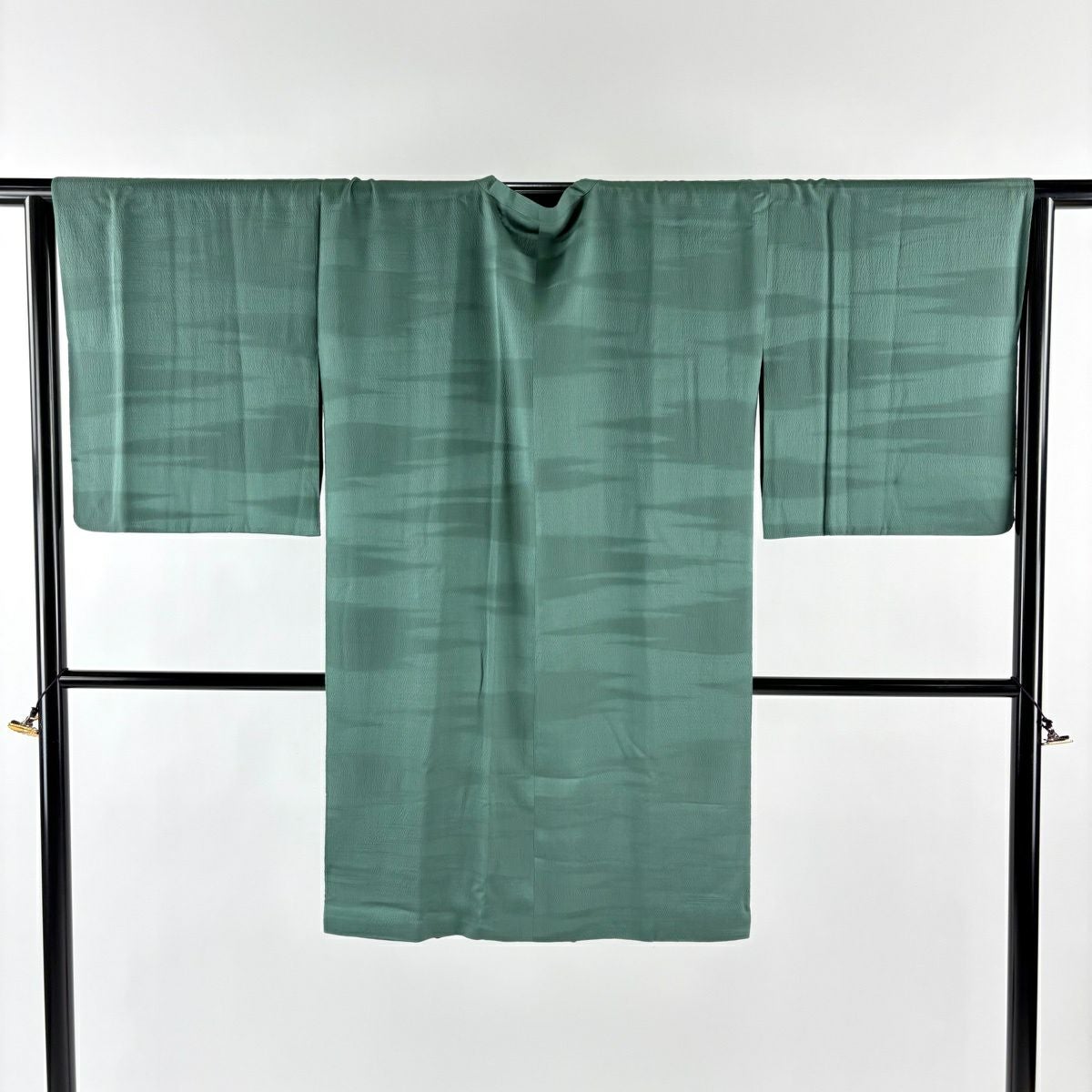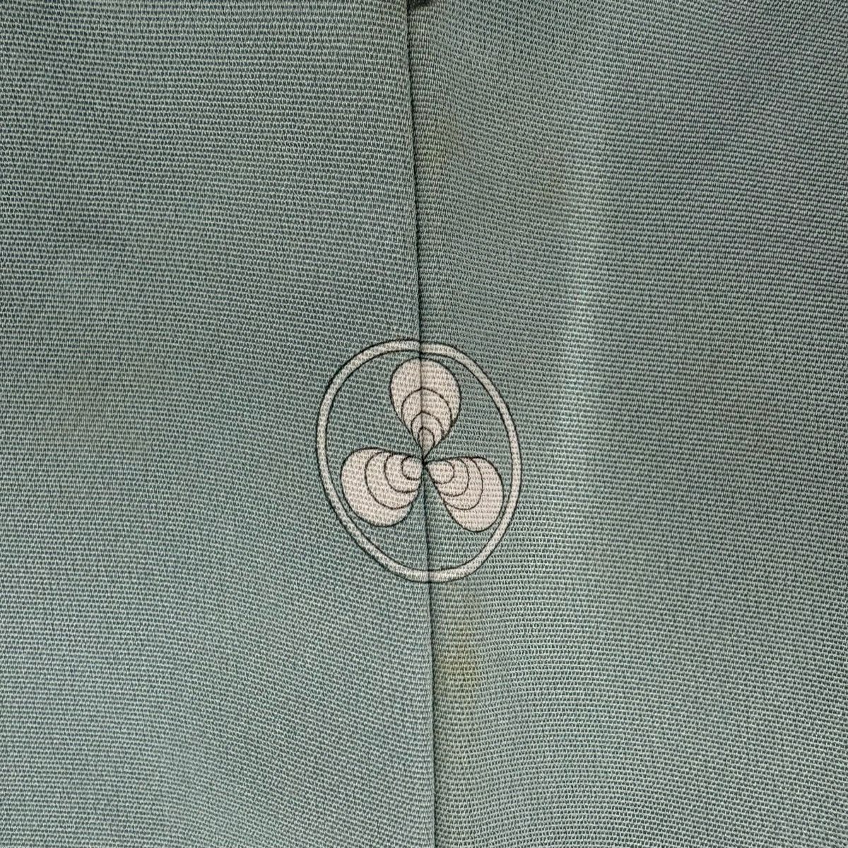 70%OFF 【美品】 小紋 身丈151cm 裄丈65.5cm M 袷 紬地 霞 草花 灰緑 正絹 秀品 K70