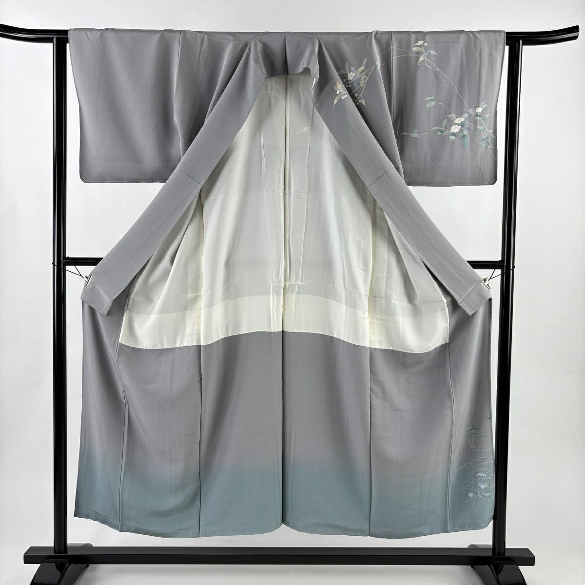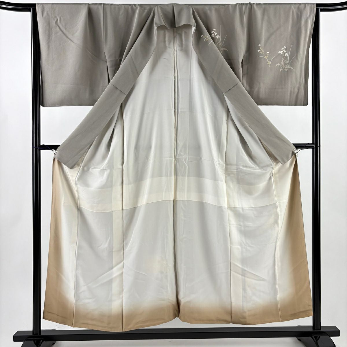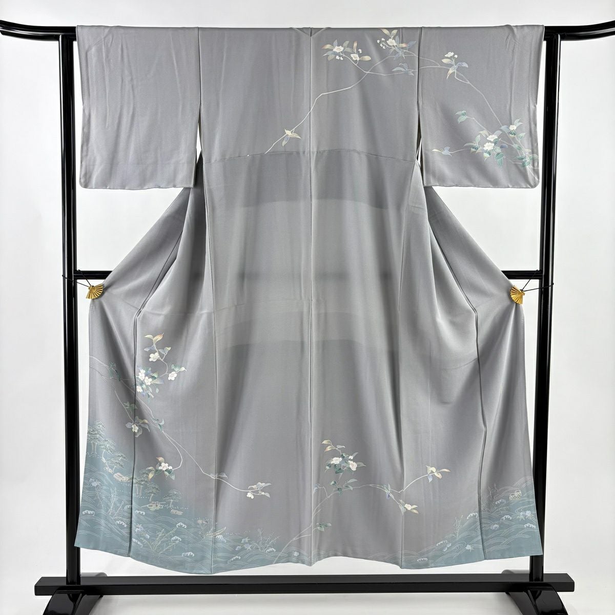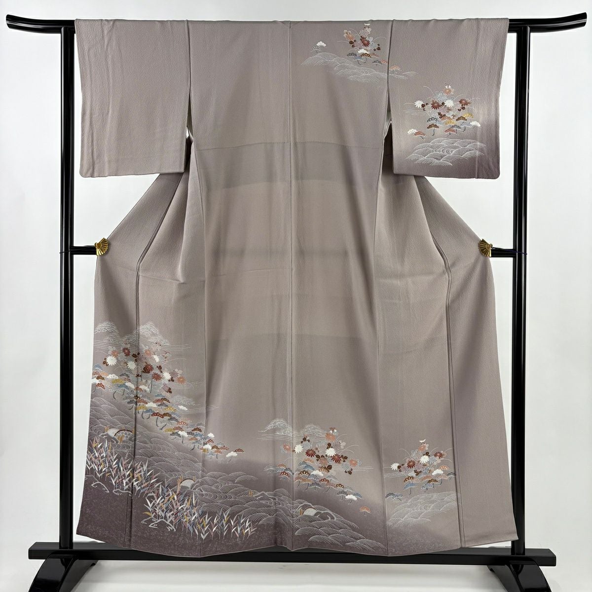 70%OFF 付下げ 身丈154cm 裄丈66cm M 袷 落款あり 菊 流水 ぼかし 灰色 正絹 秀品 K70