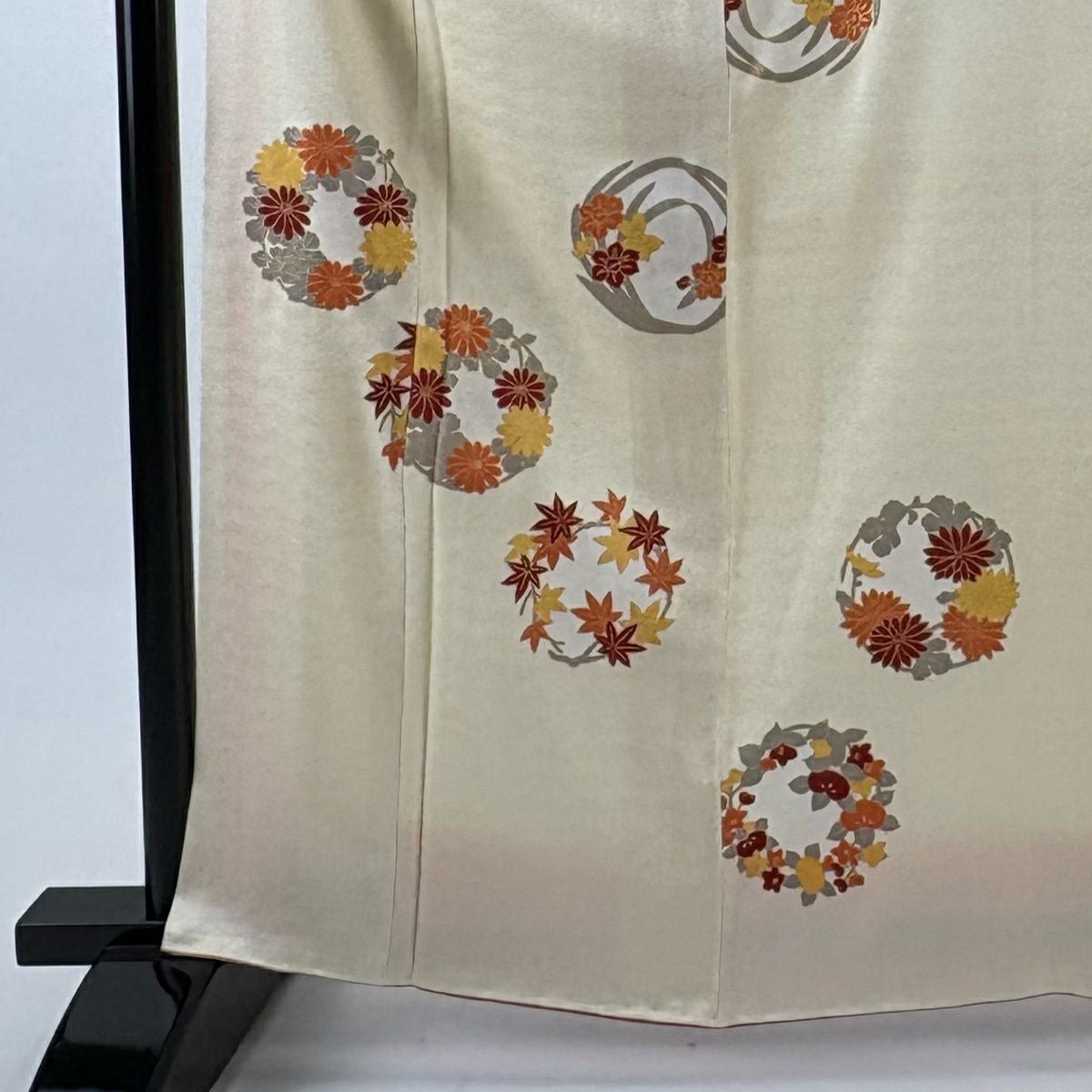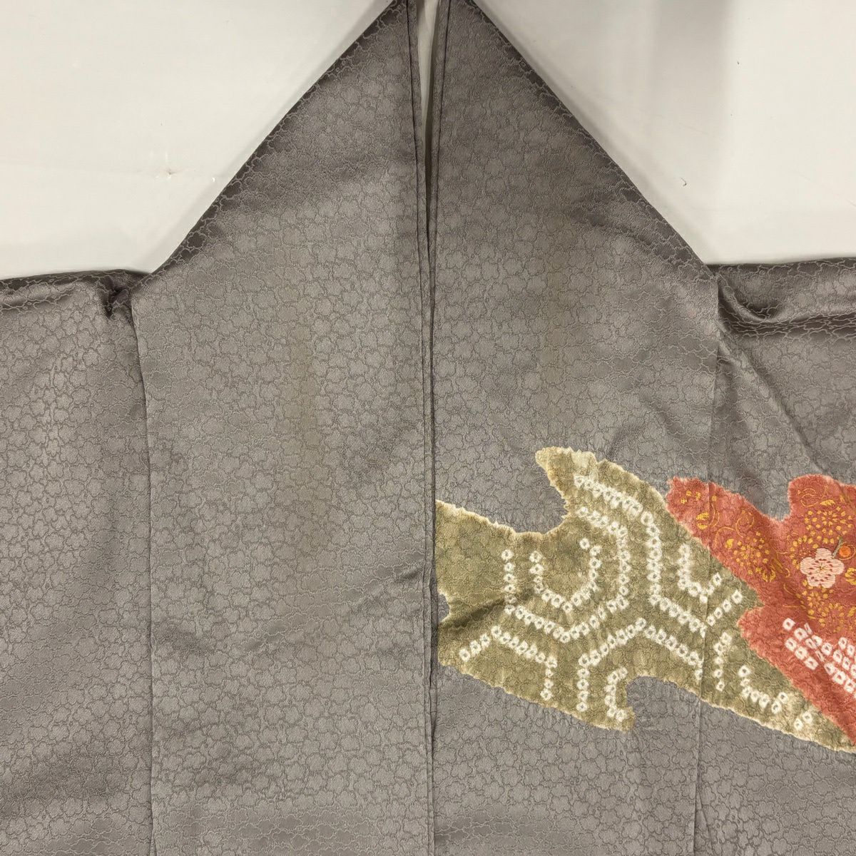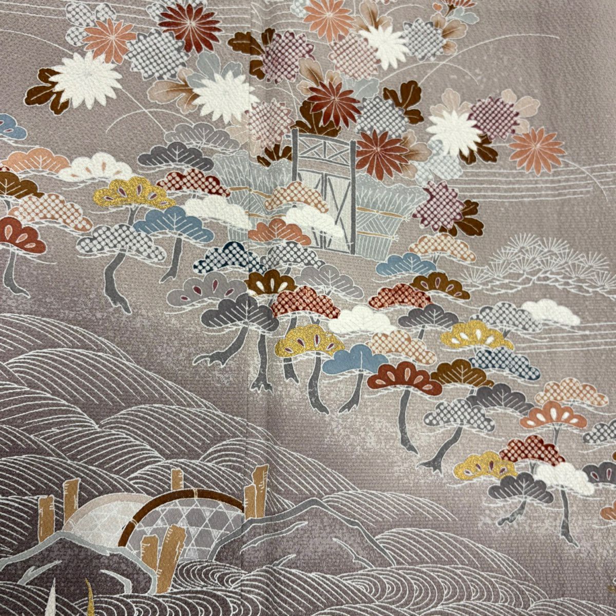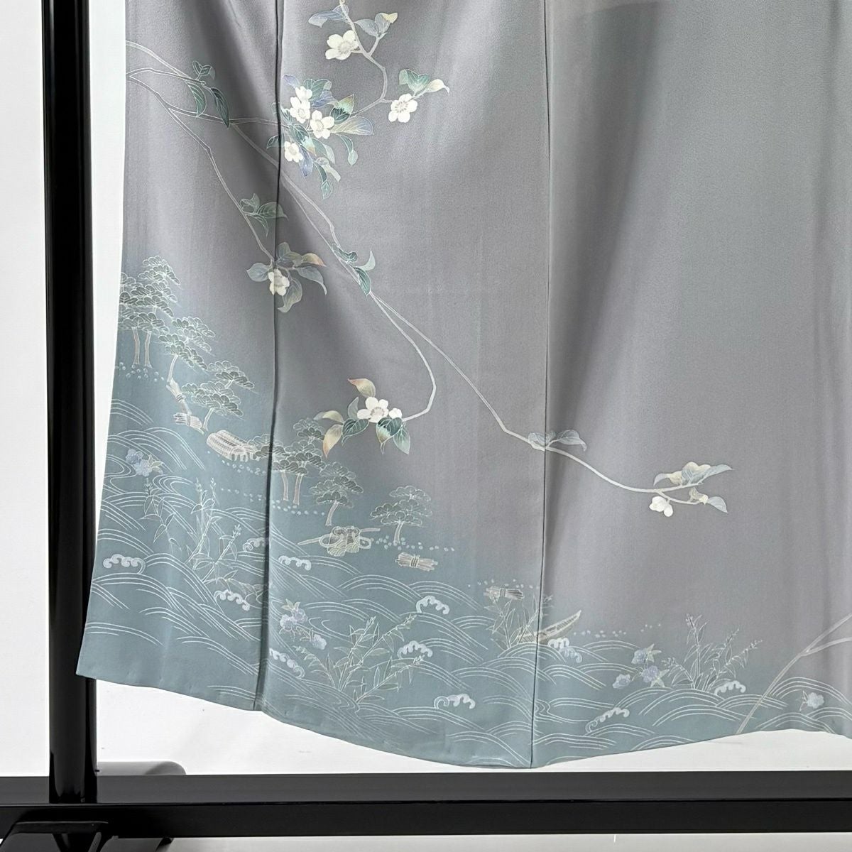 70%OFF 付下げ 身丈154cm 裄丈66cm M 袷 落款あり 菊 流水 ぼかし 灰色 正絹 秀品 K70