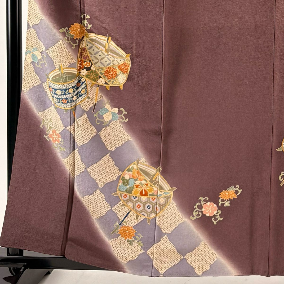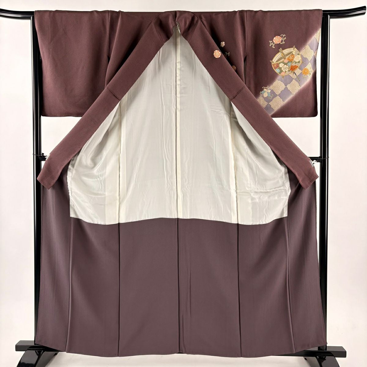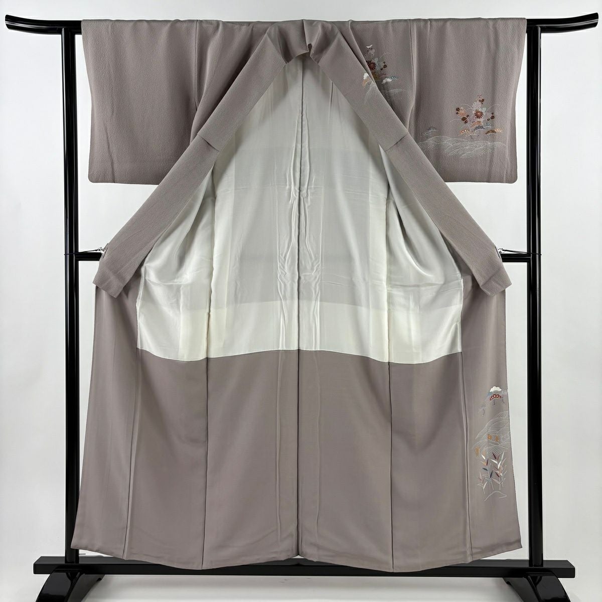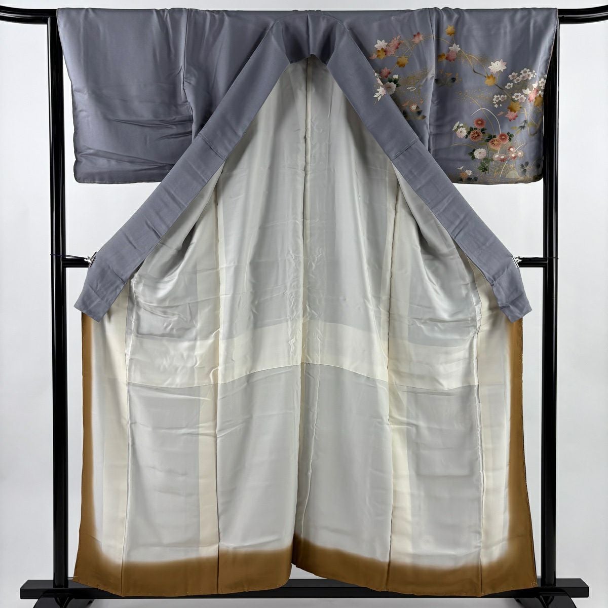 70%OFF 訪問着 身丈156cm 裄丈65.5cm M 袷 牡丹 流水 金糸 刺繍 灰紫 正絹 秀品 K70