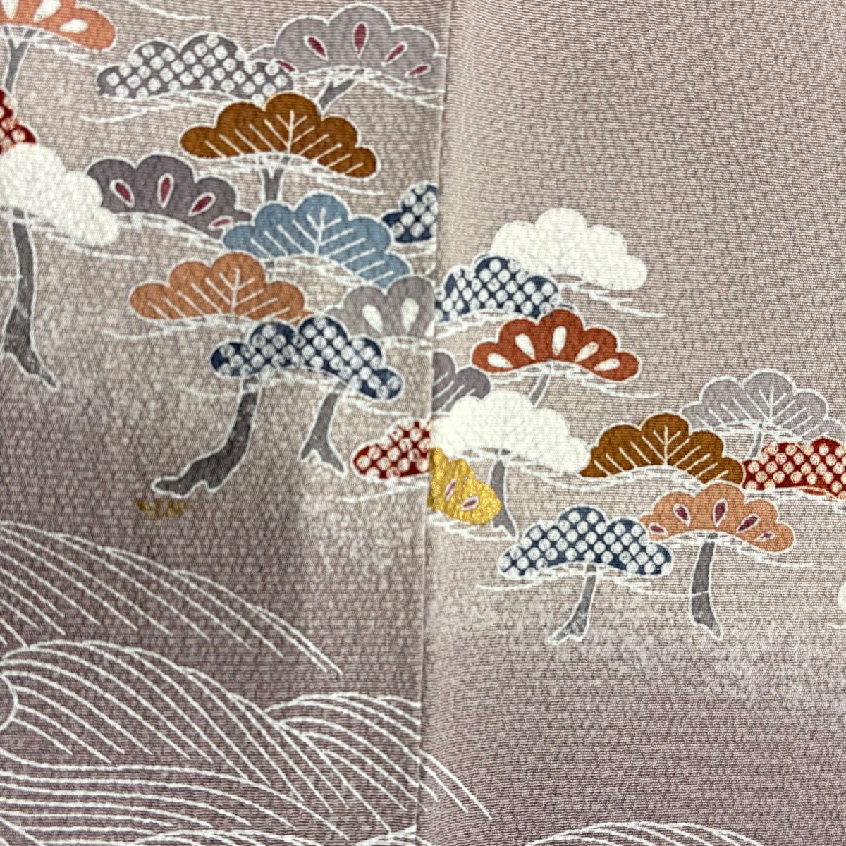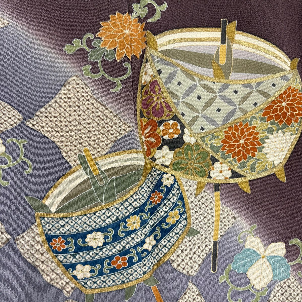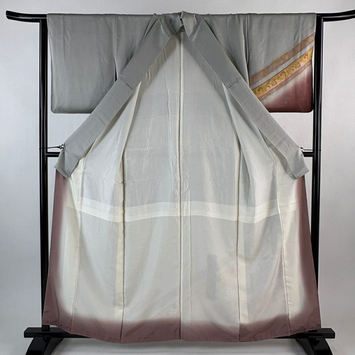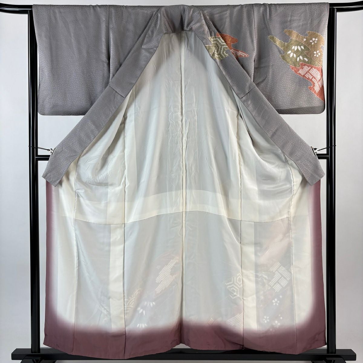 70%OFF 訪問着 身丈156.5cm 裄丈61.5cm S 袷 笠松 波 ぼかし 金彩 灰紫 正絹 秀品 K70