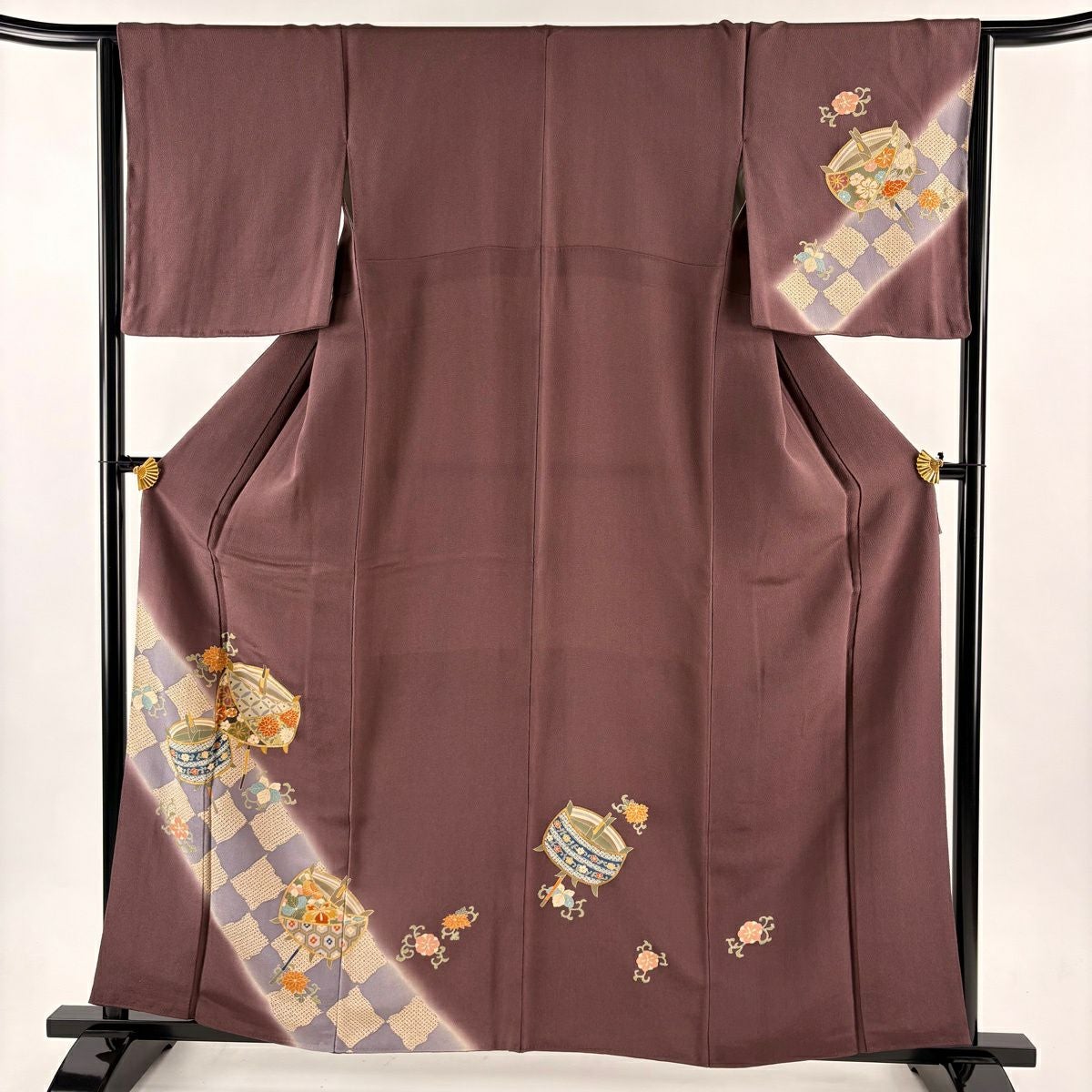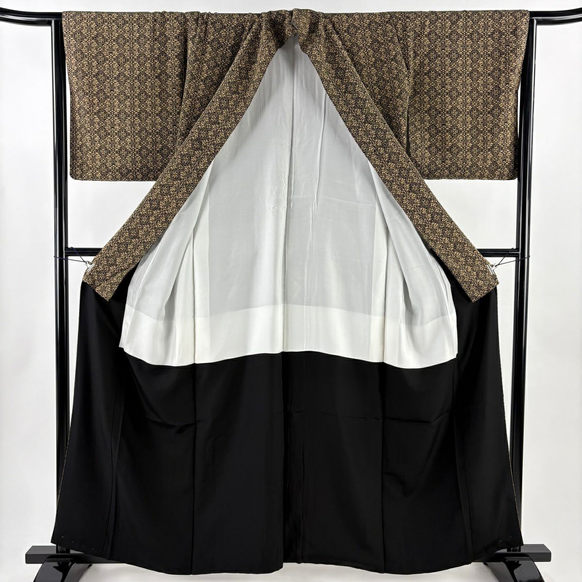 70%OFF 【美品】 小紋 身丈159cm 裄丈63.5cm S 袷 落款あり 華文 茶色 正絹 秀品 K70