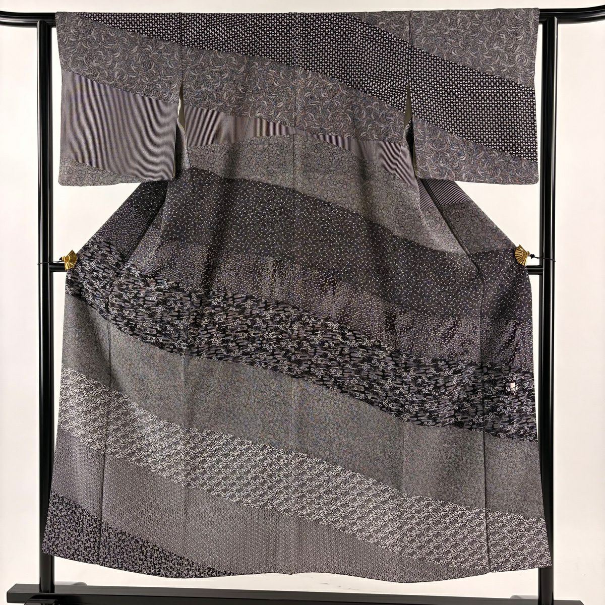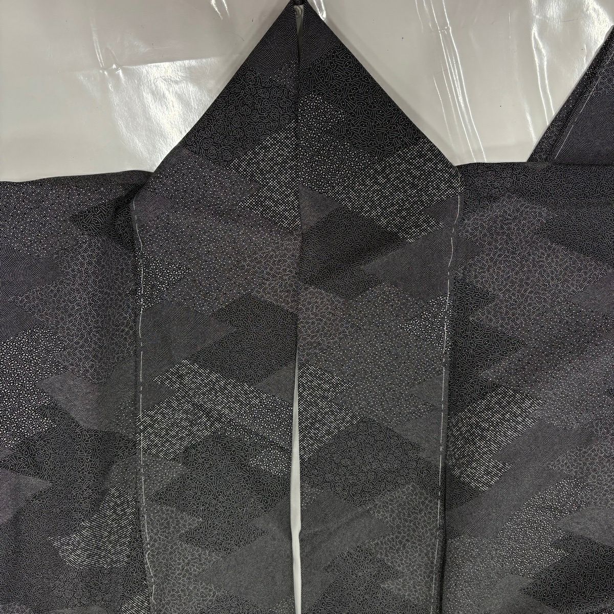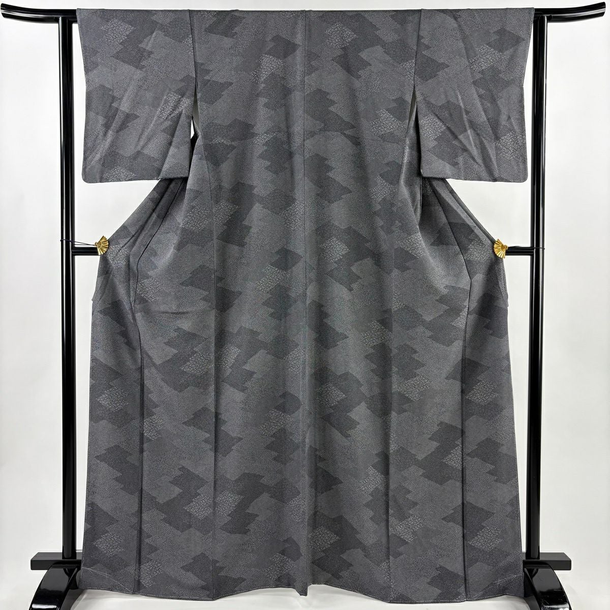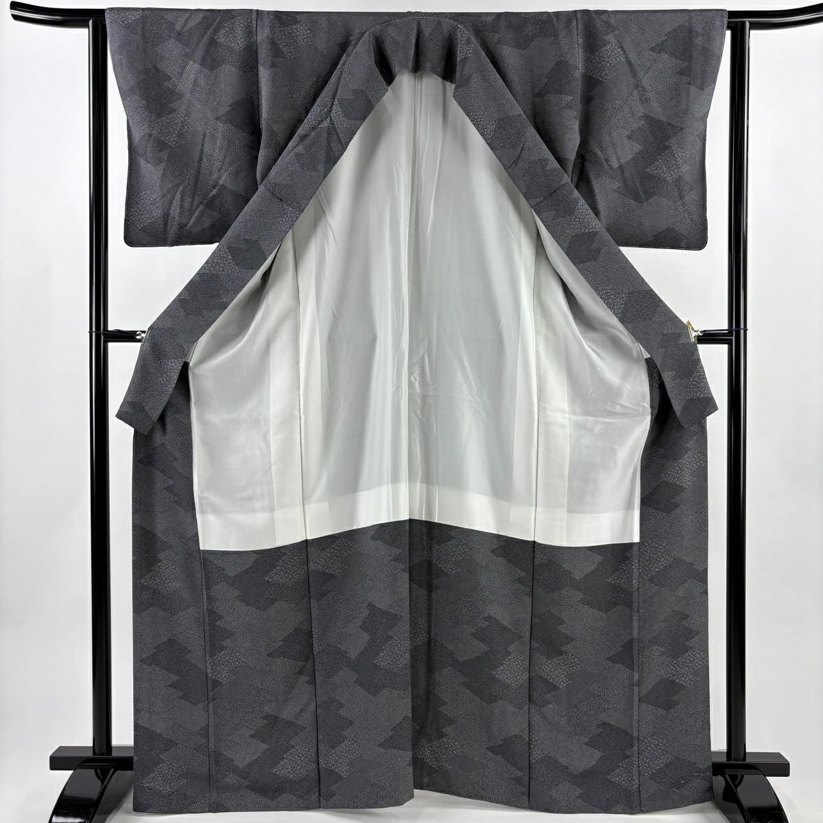 70%OFF 【美品】 江戸小紋 身丈167cm 裄丈62cm S 袷 松皮菱 寄せ柄 黒灰 正絹 秀品 K70
