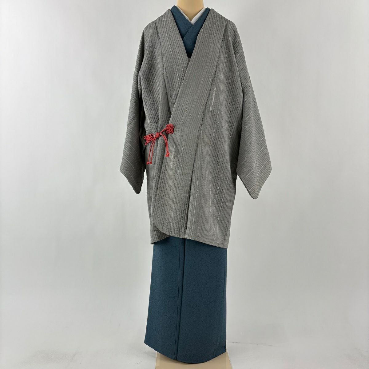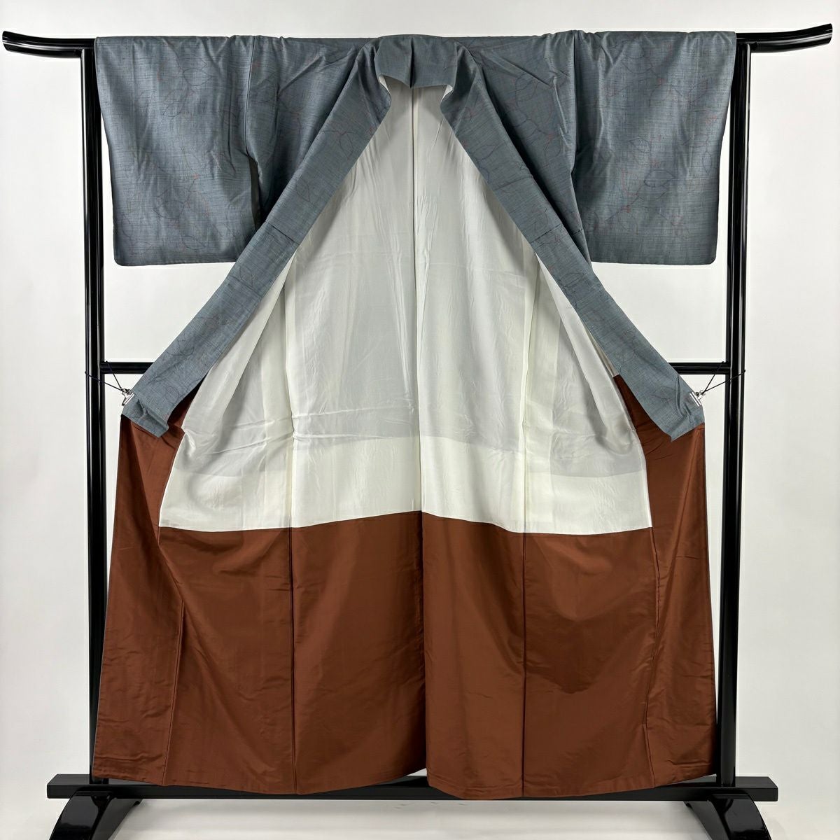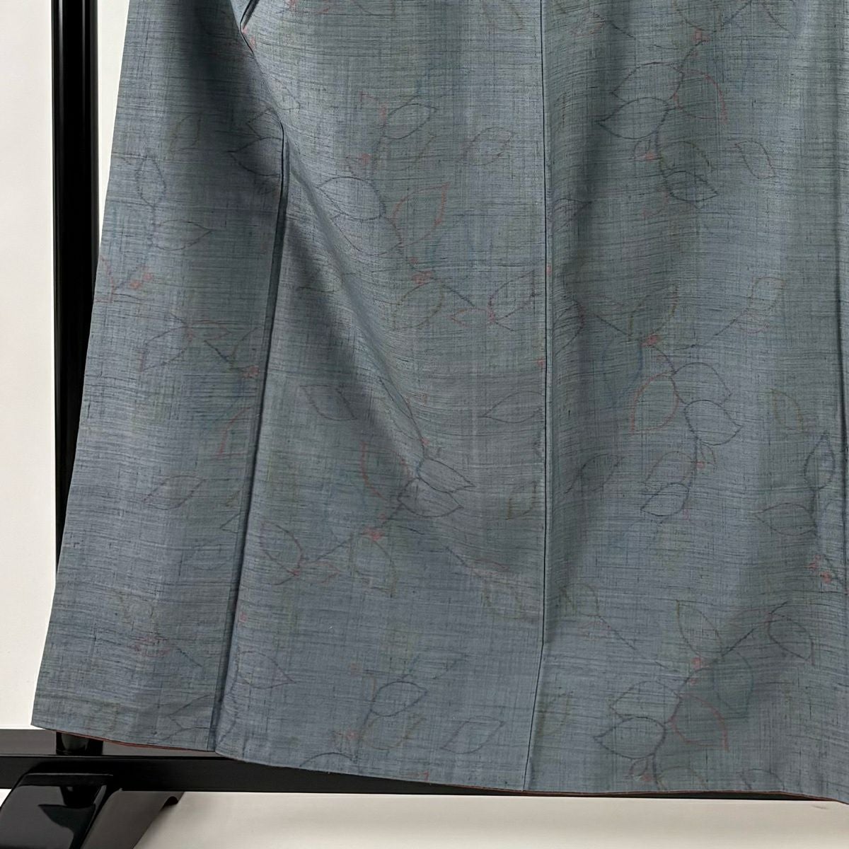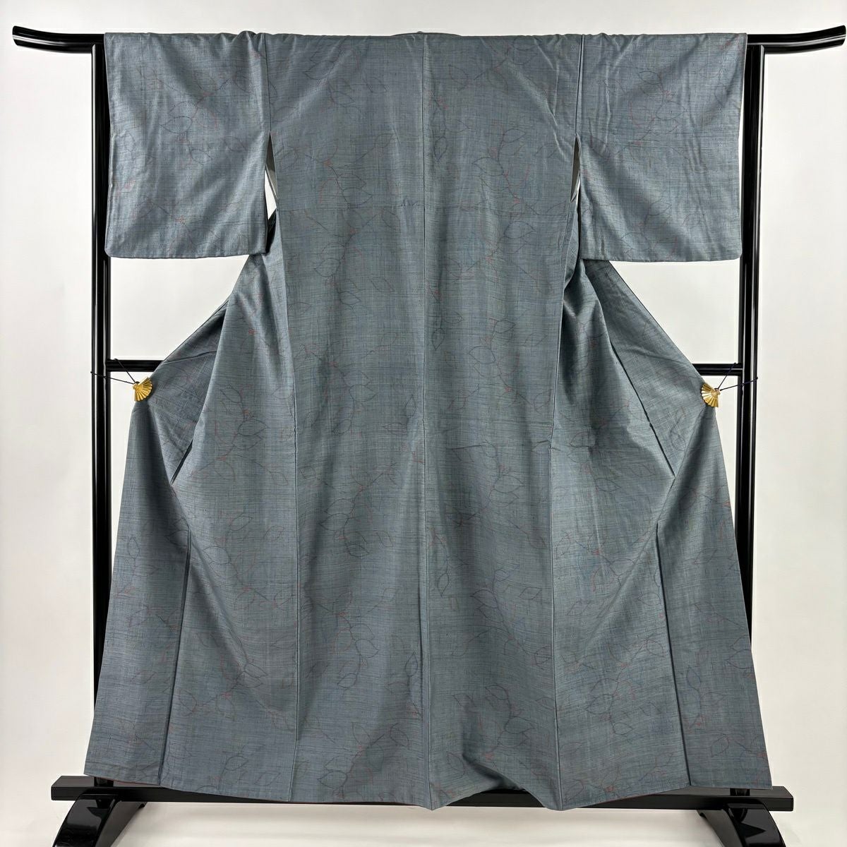 70%OFF 紬 身丈157cm 裄丈63.5cm S 袷 地織紬 証紙あり 葉と実 青灰色 正絹 秀品 K70