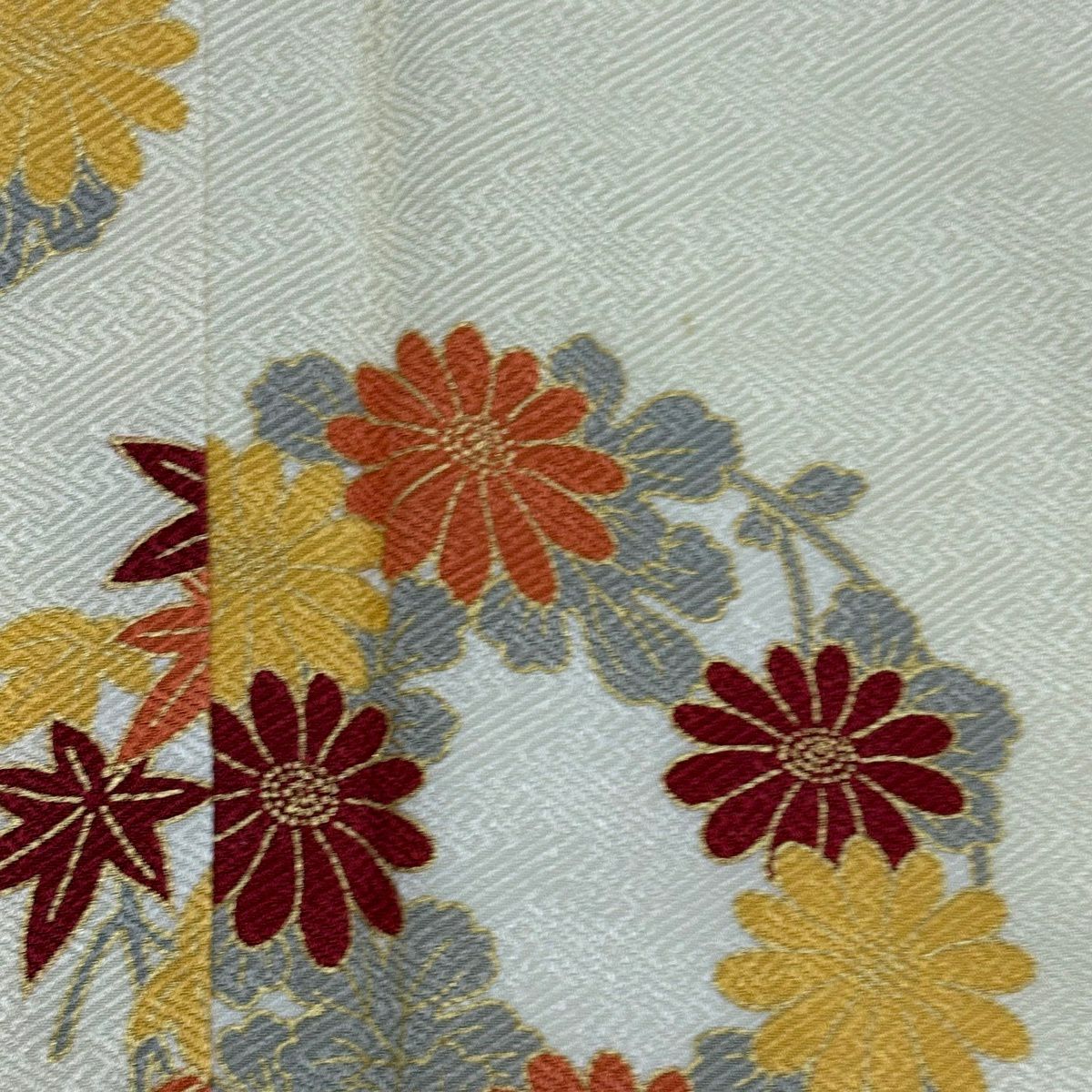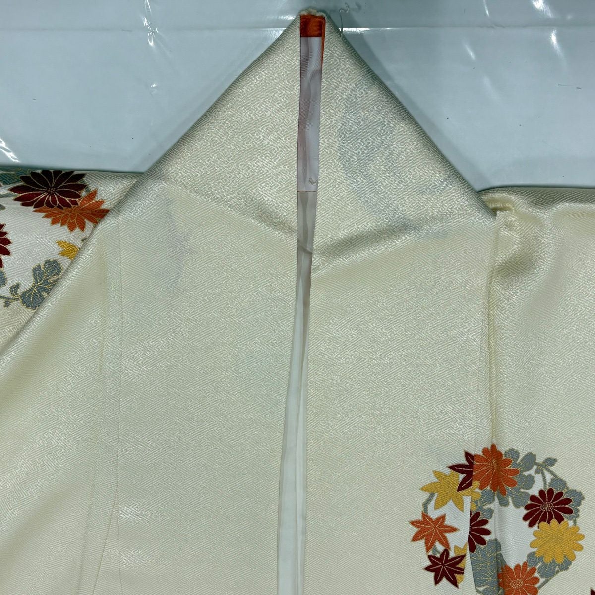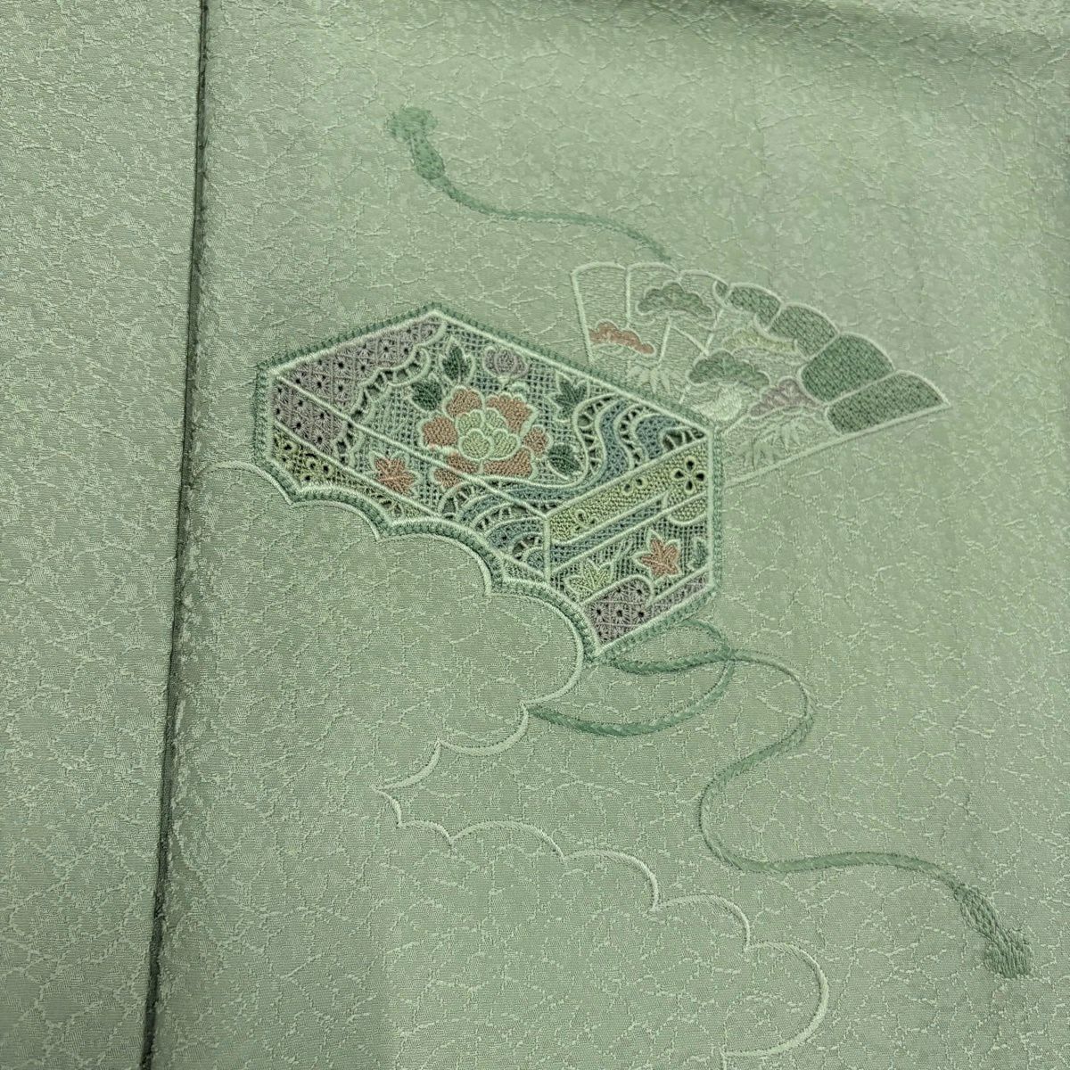 70%OFF 訪問着 身丈161.5cm 裄丈66.5cm M 袷 菊 御所車 刺繍 金糸 薄緑 正絹 秀品 K70