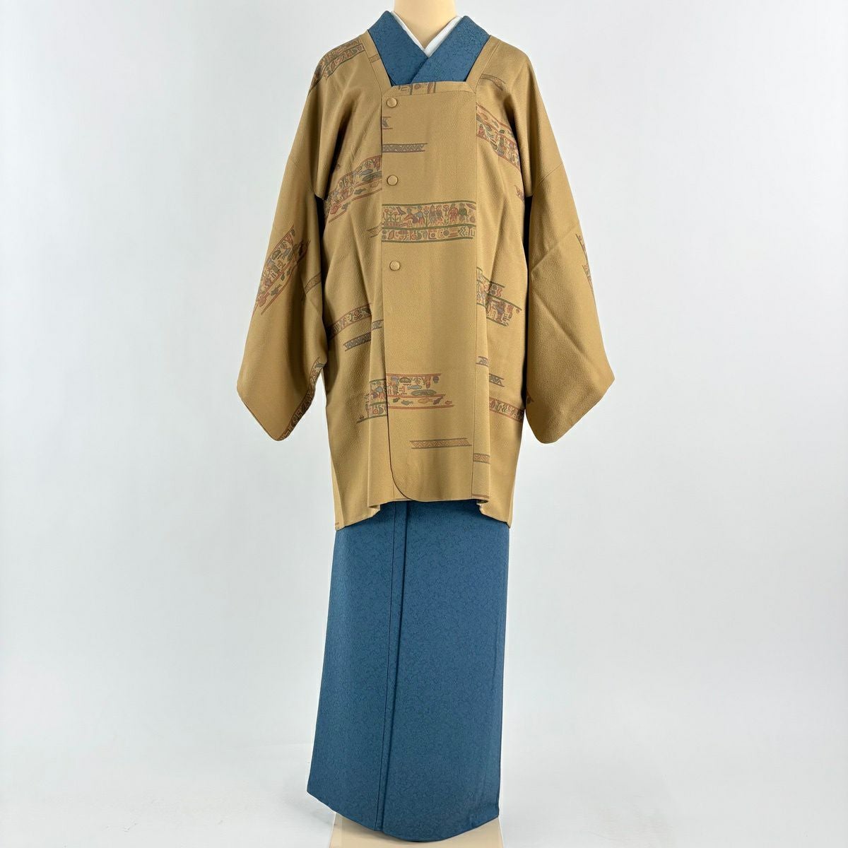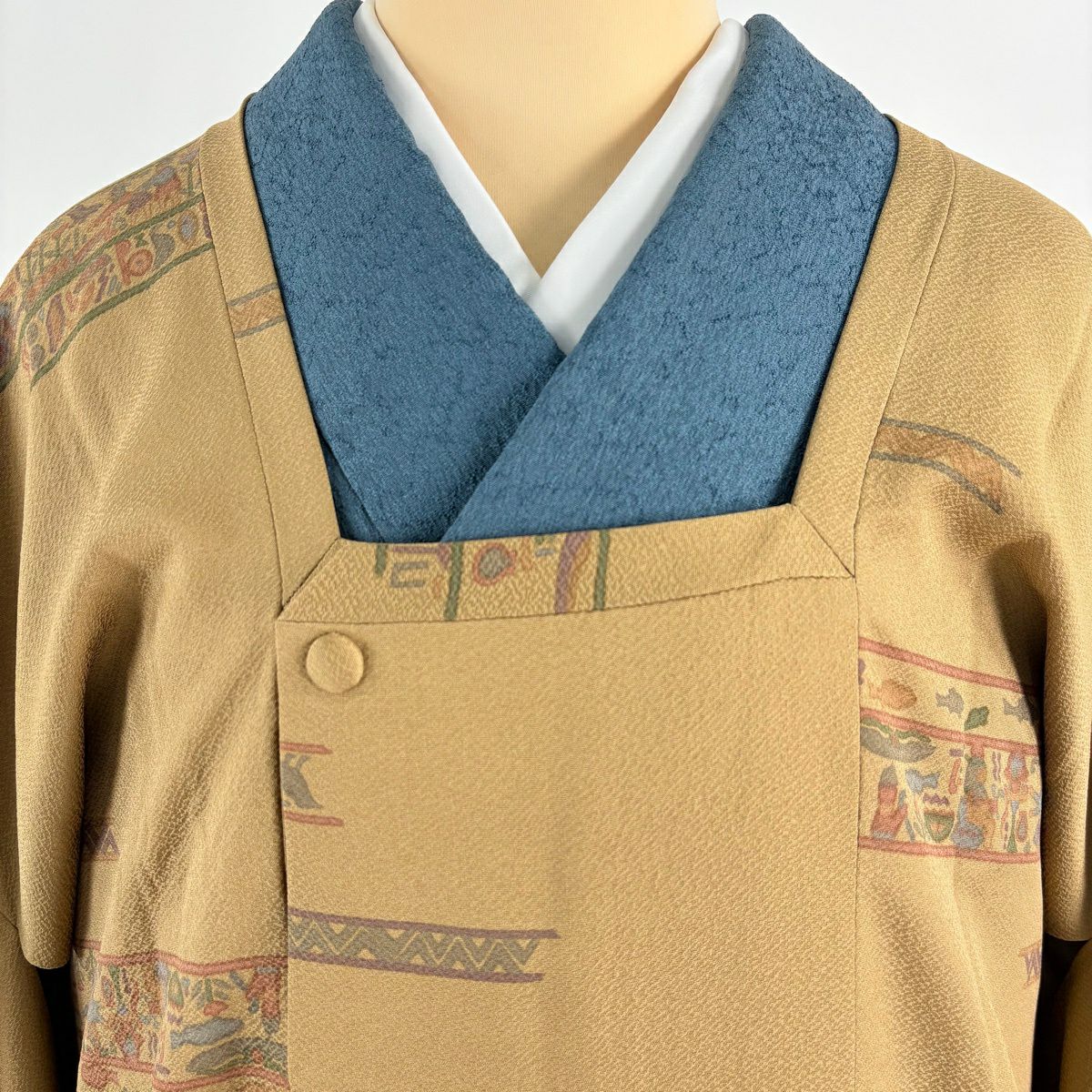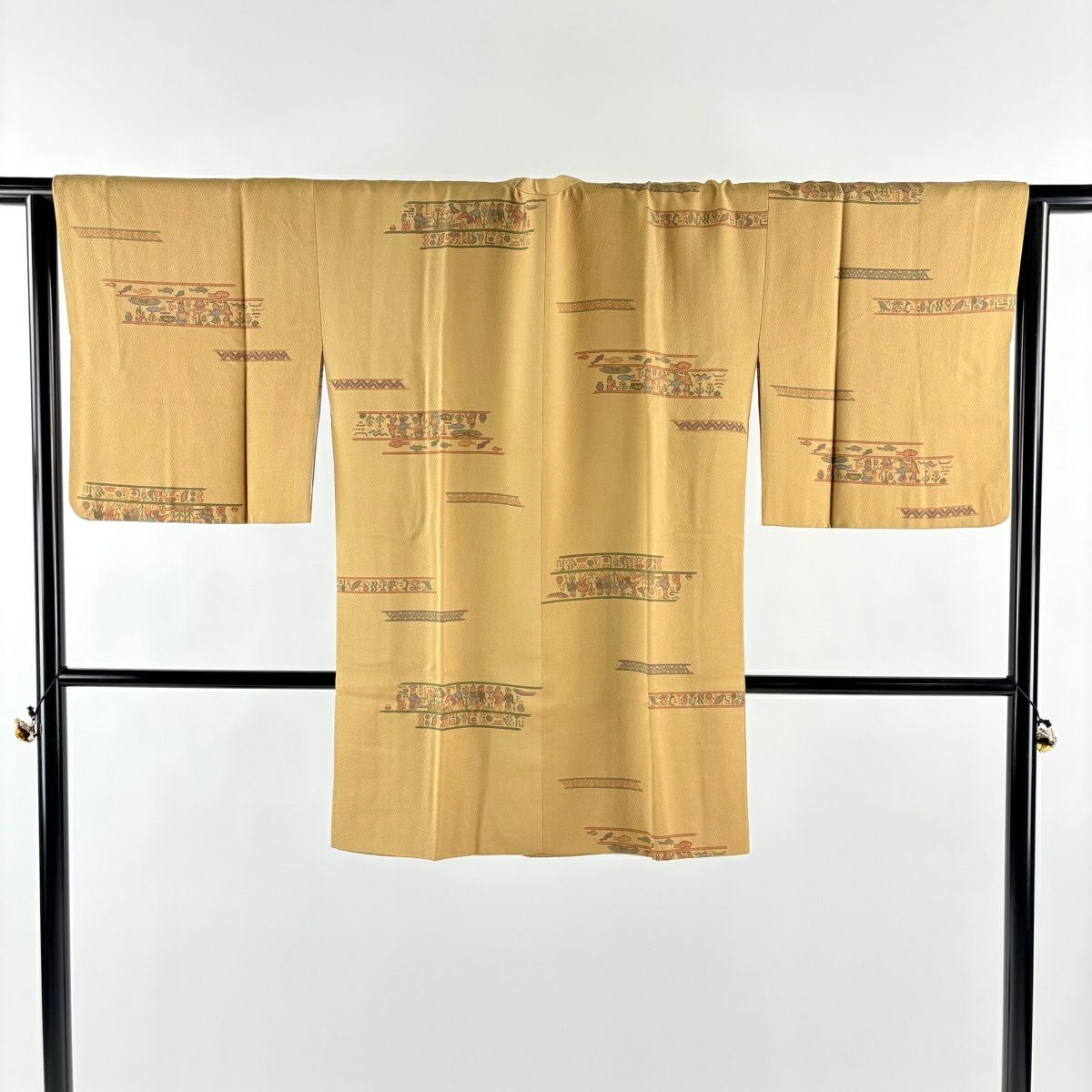 70%OFF 訪問着 身丈159cm 裄丈64cm M 袷 橘 籠目 金彩 染め分け 黄土色 正絹 秀品 K70
