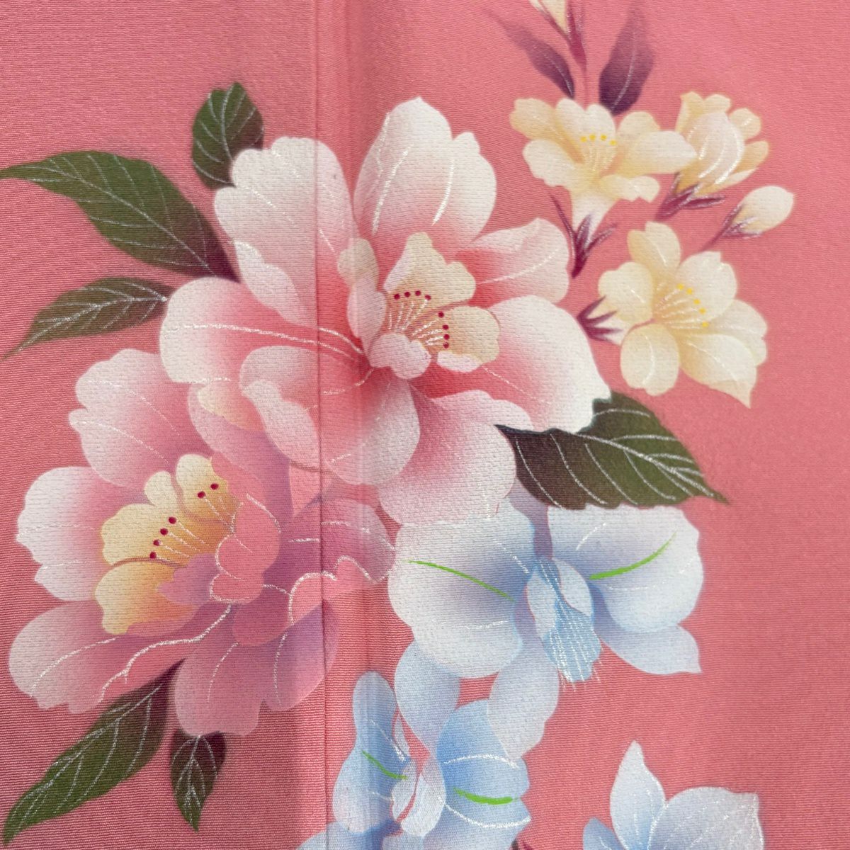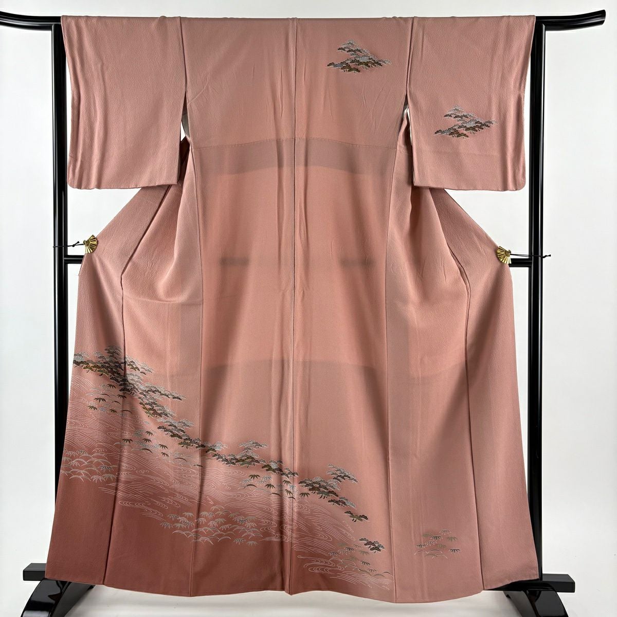 70%OFF 訪問着 身丈154cm 裄丈62cm S 袷 雪輪 松竹梅 金糸 金彩 ピンク 正絹 秀品 K70