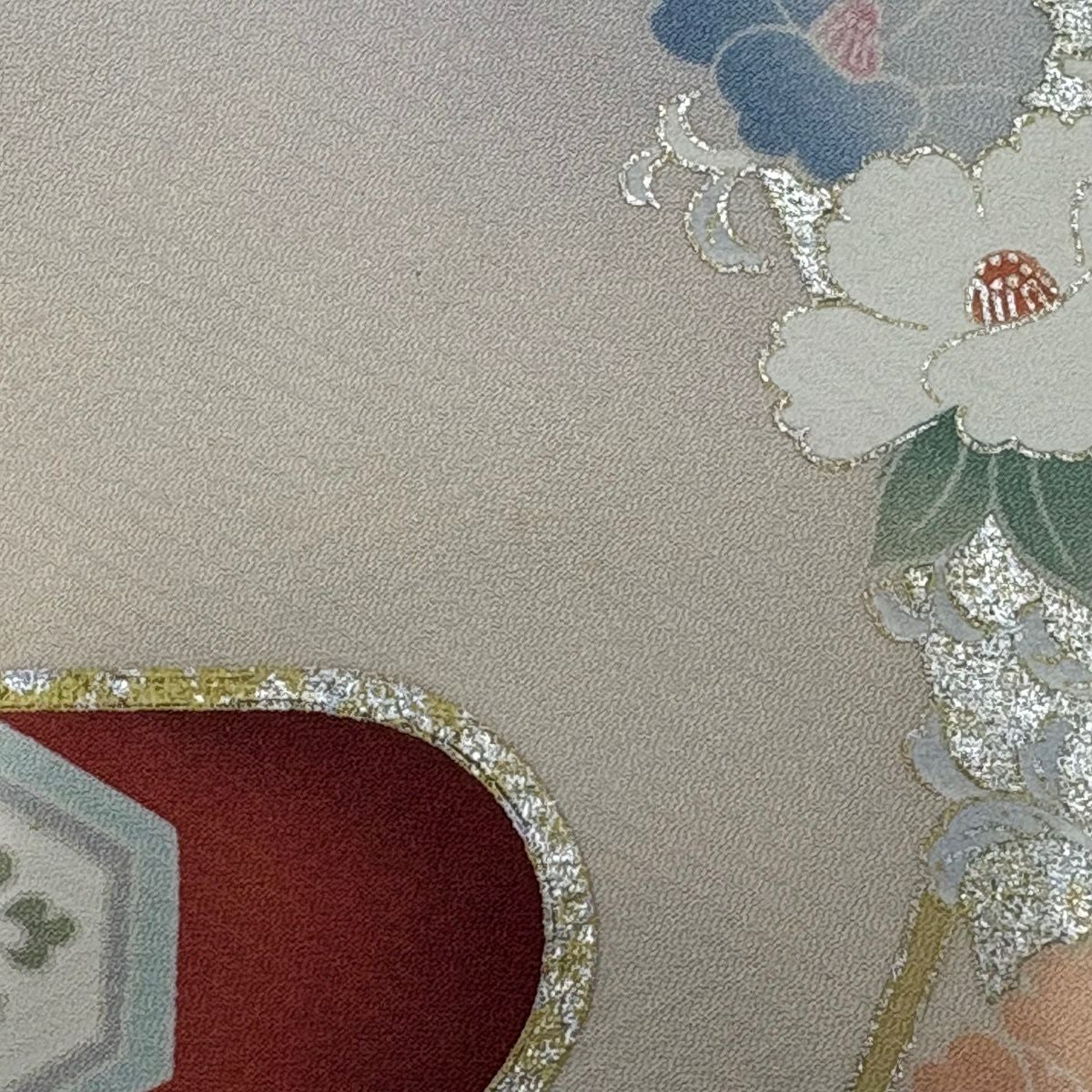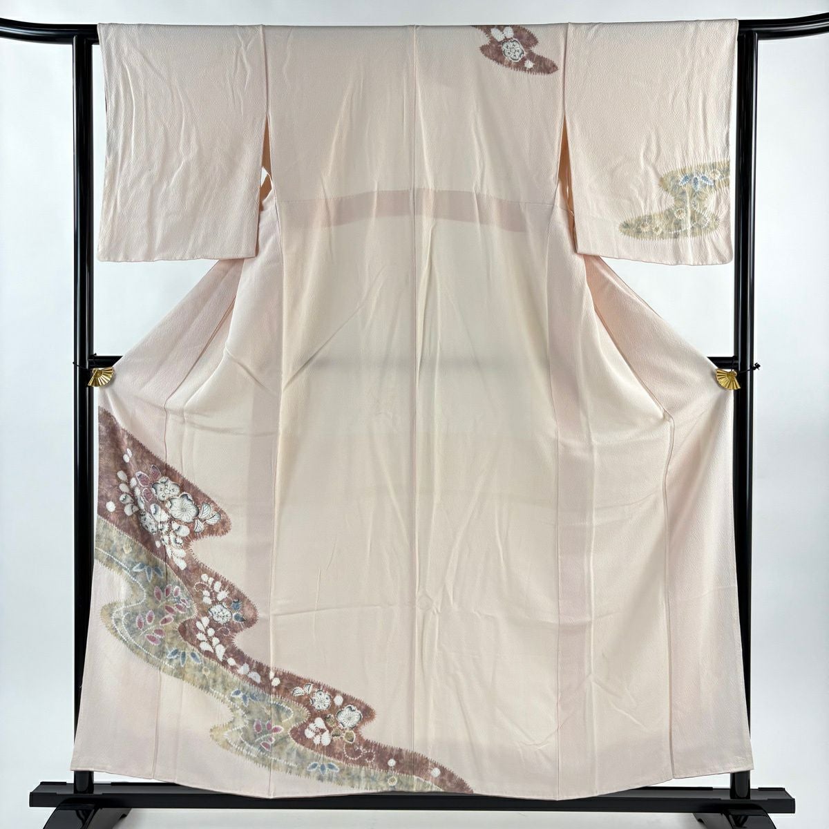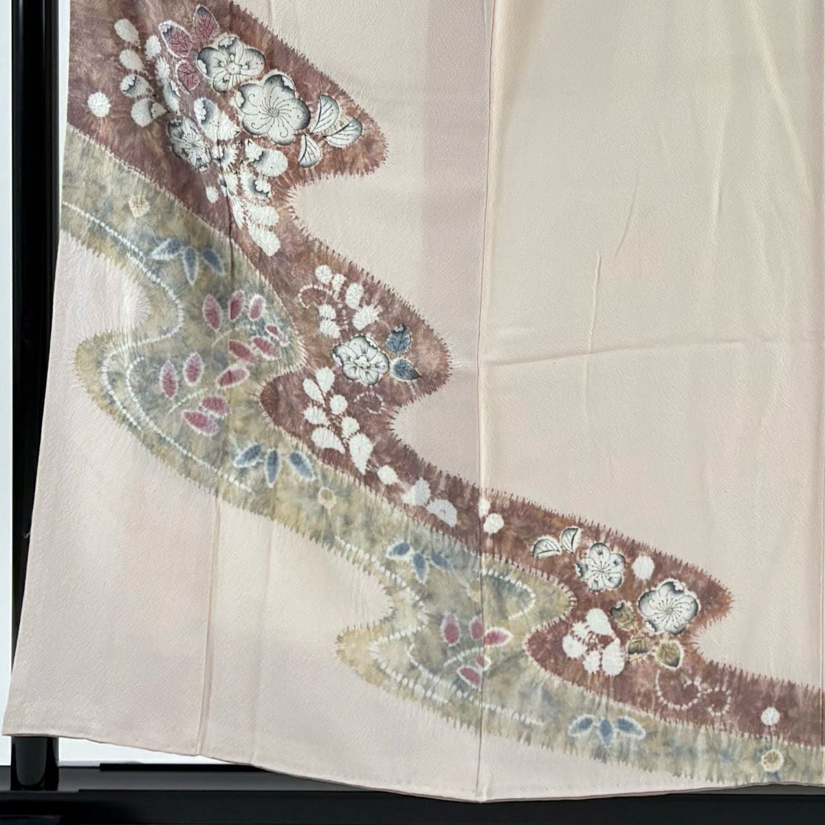70%OFF 付下げ 身丈152.5cm 裄丈65cm M 袷 落款あり 牡丹 京櫻 薄黄土色 正絹 秀品 K70