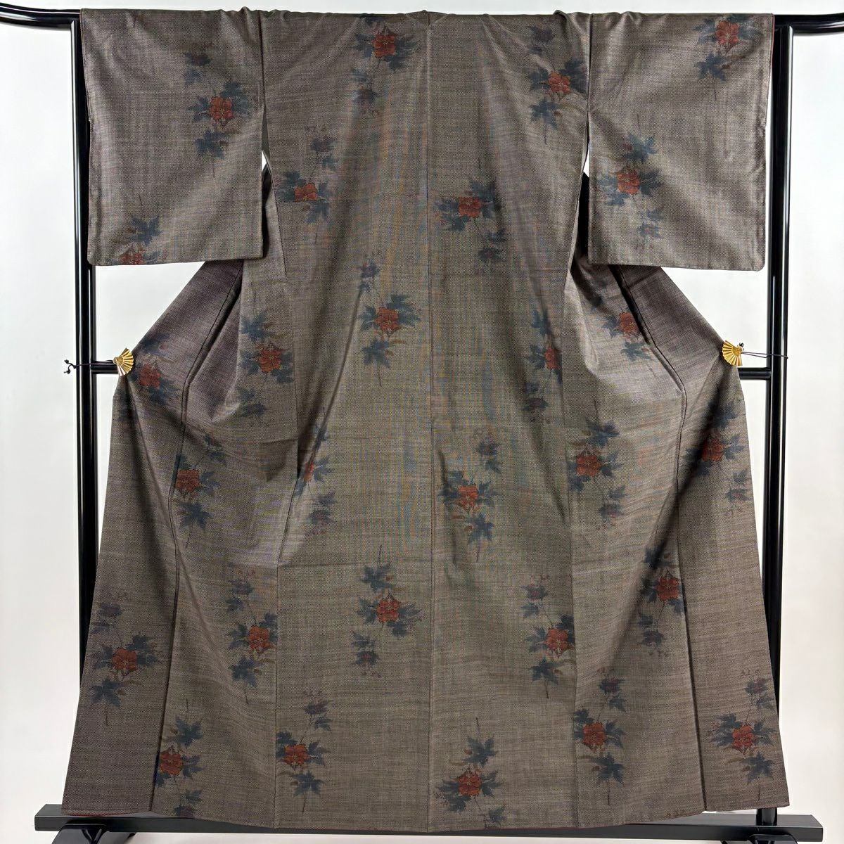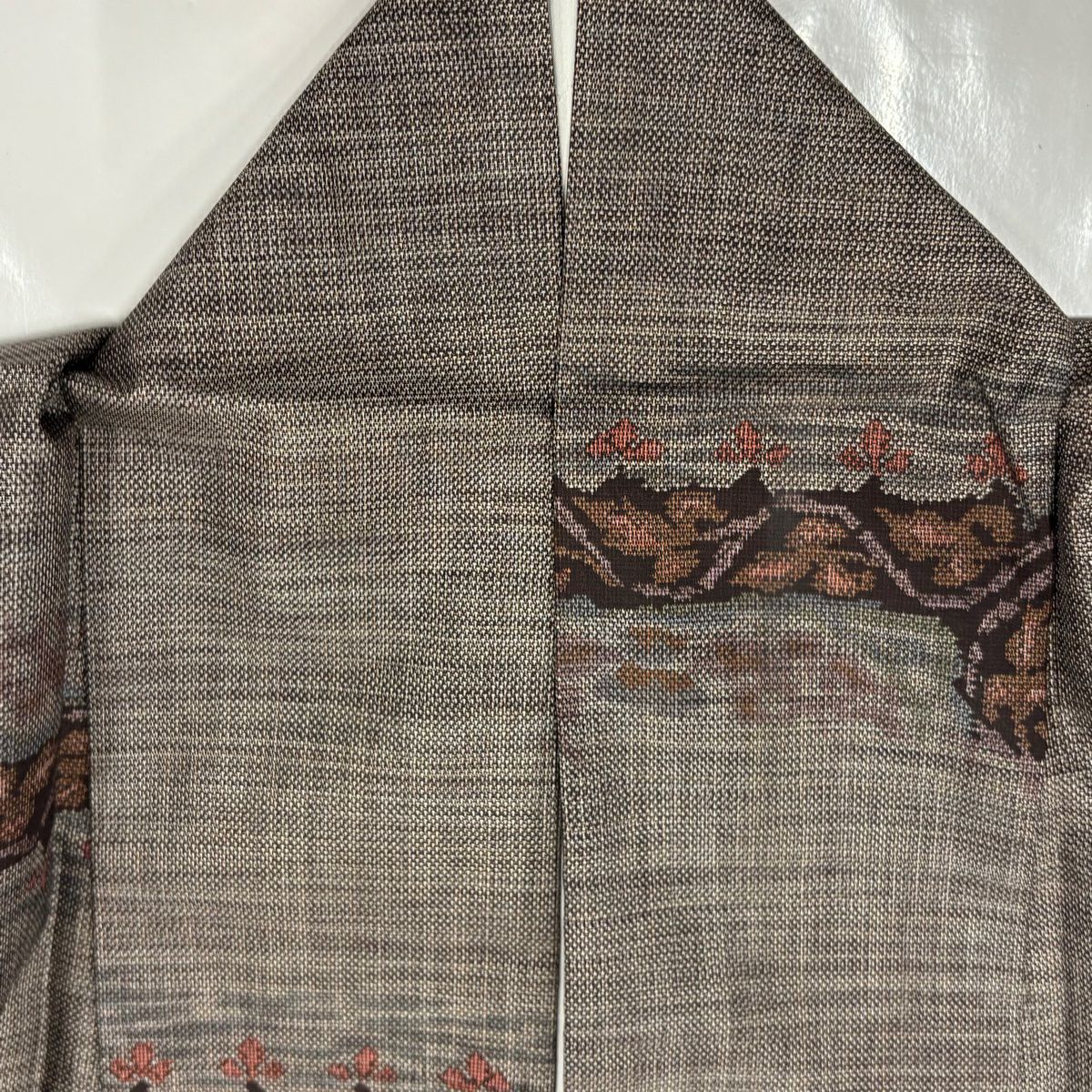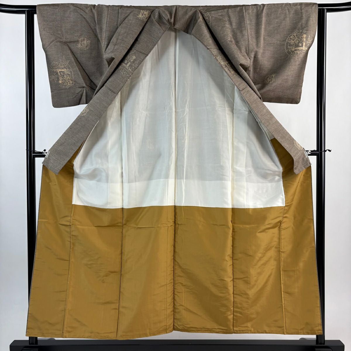 【美品】 付下げ 身丈158.5cm 裄丈63cm S 袷 ますいわ屋 桐 橘 箔 金糸 灰茶 正絹 秀品 一つ紋