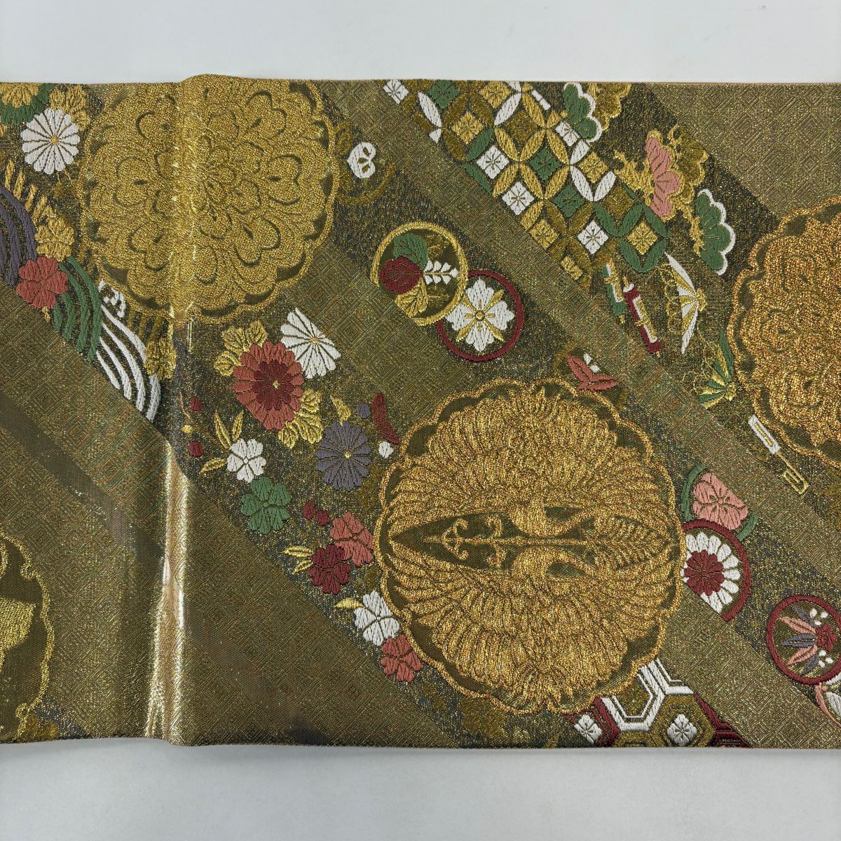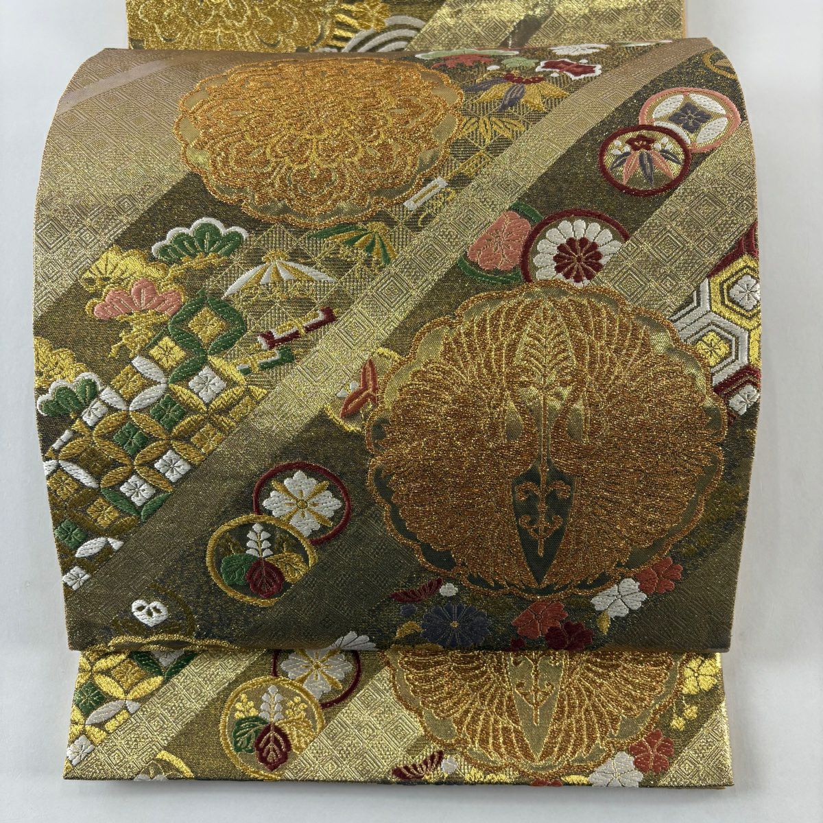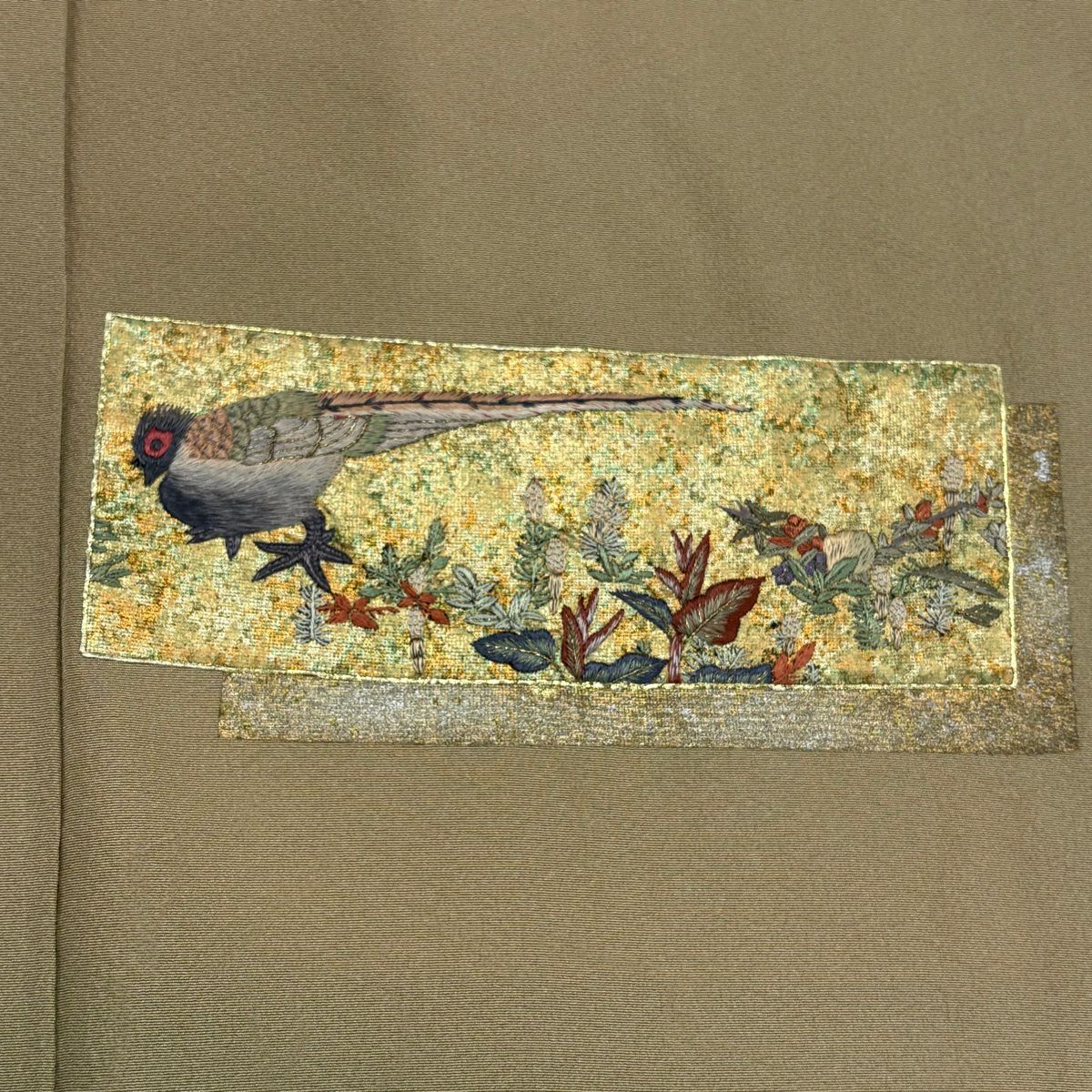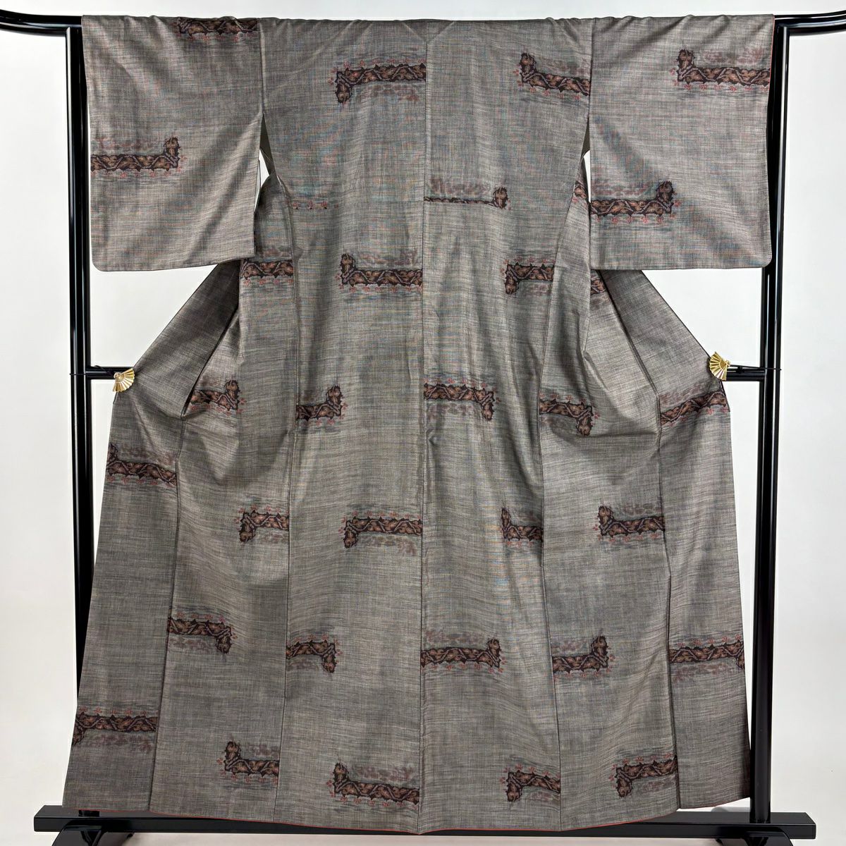 【美品】 付下げ 身丈158.5cm 裄丈63cm S 袷 ますいわ屋 桐 橘 箔 金糸 灰茶 正絹 秀品 一つ紋