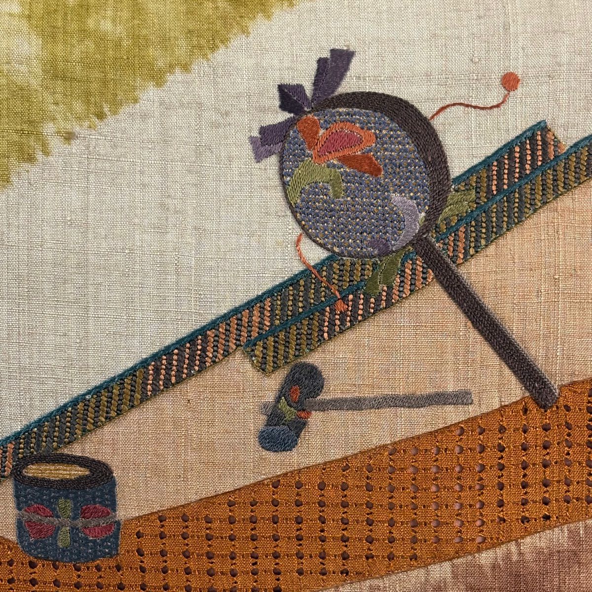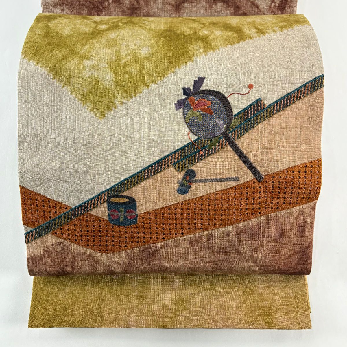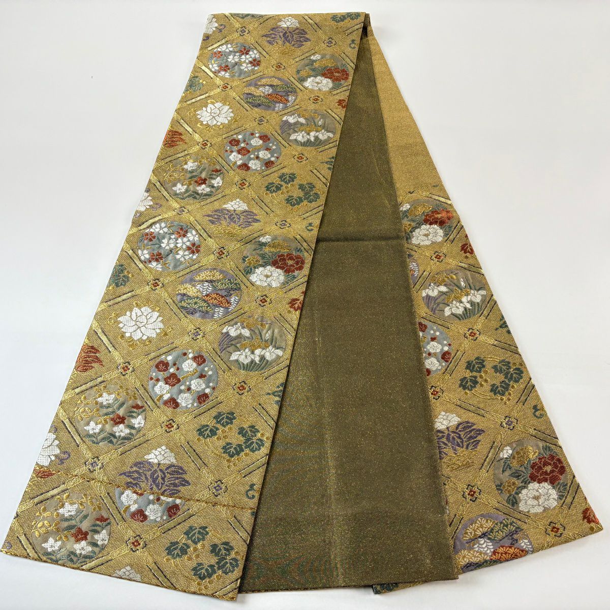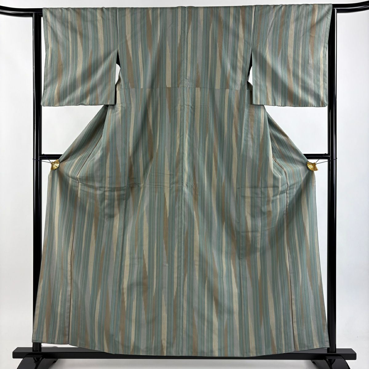 【在庫一掃】 【美品】 訪問着 身丈154.5cm 裄丈64cm M 袷 扇面 菖蒲 刺繍 絞り 鶯色 正絹 秀品
