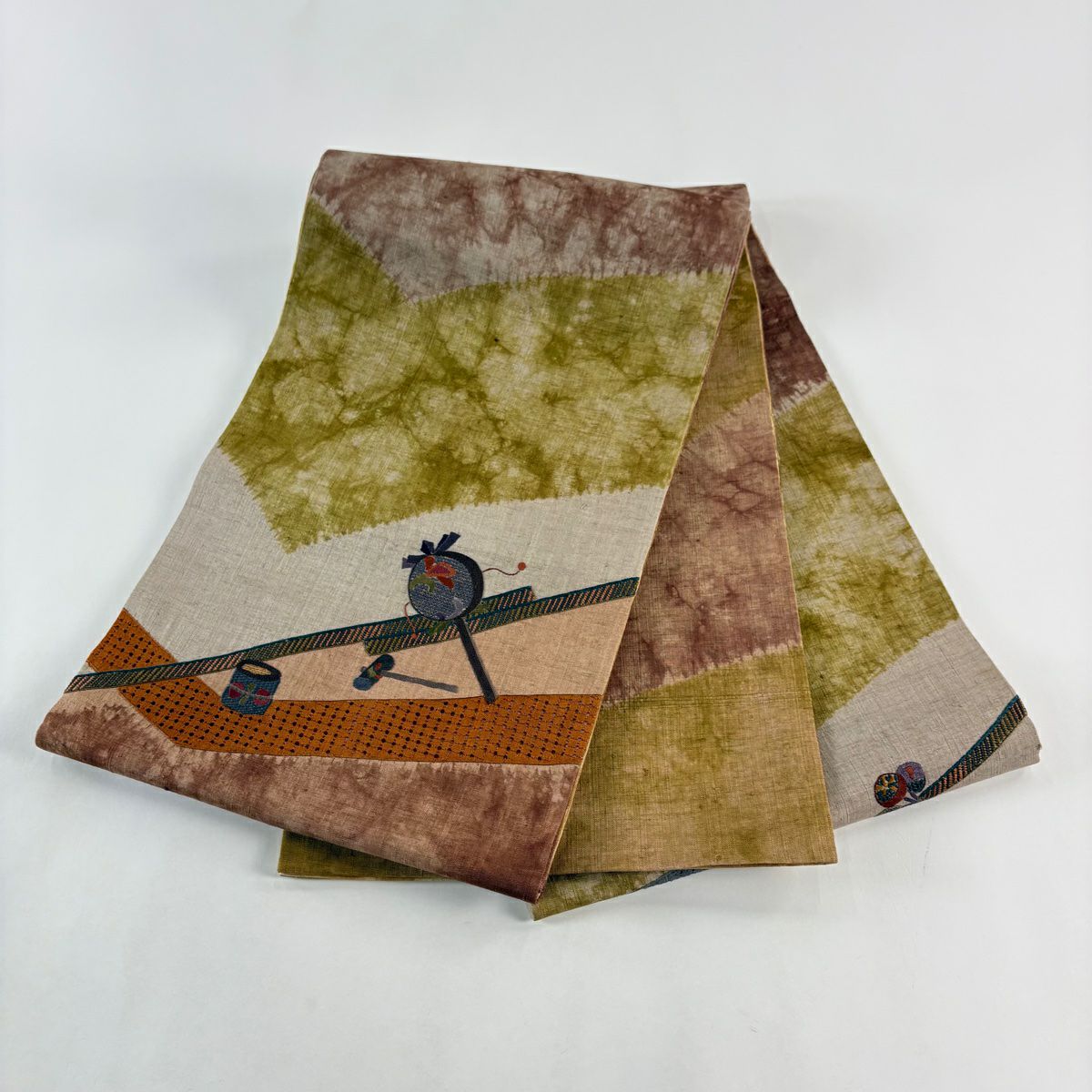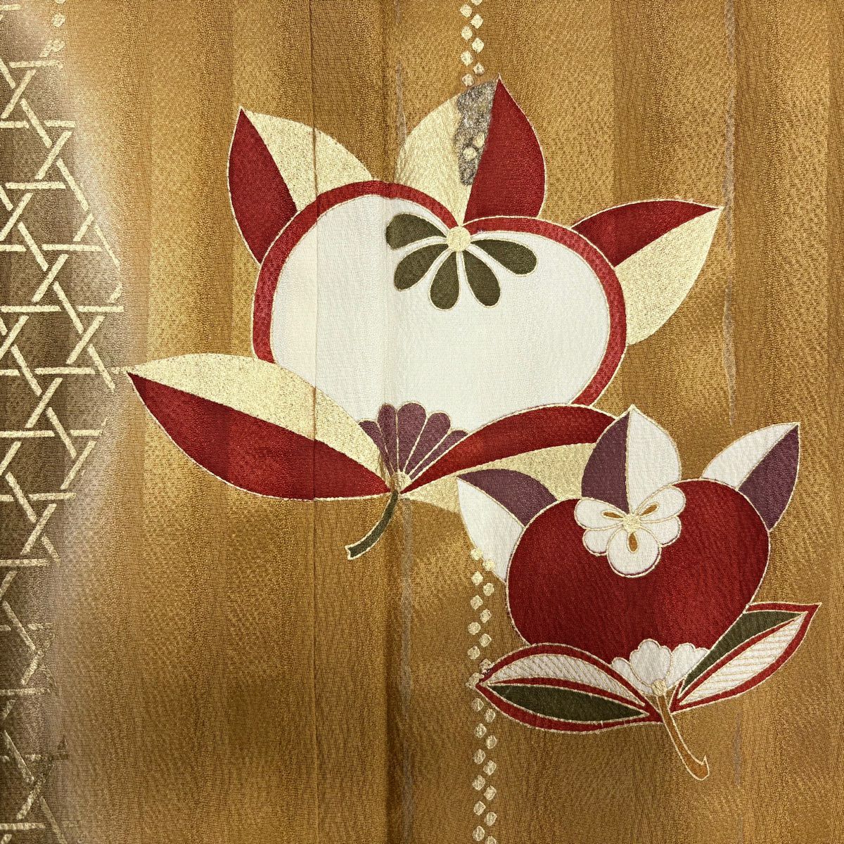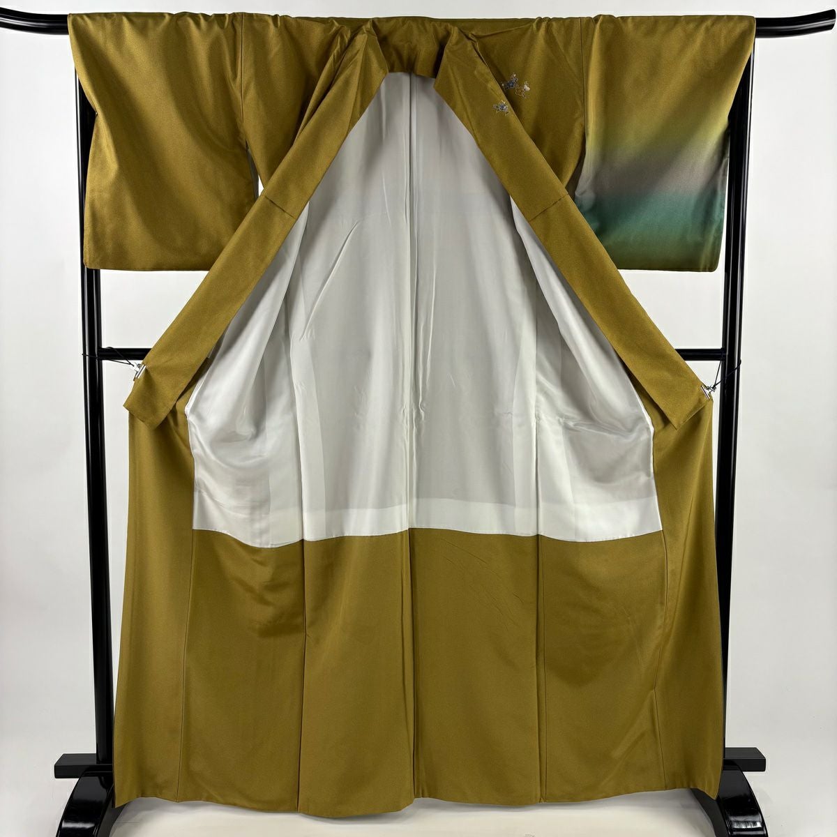 【在庫一掃】 訪問着 身丈156cm 裄丈63cm S 袷 落款あり 鼓 波 金彩 ぼかし からし色 正絹 秀品