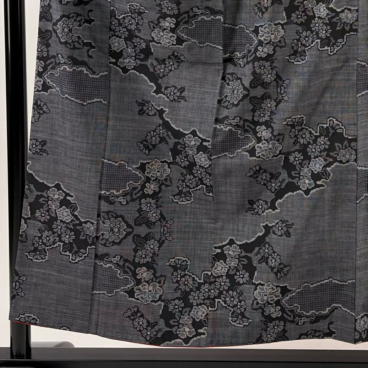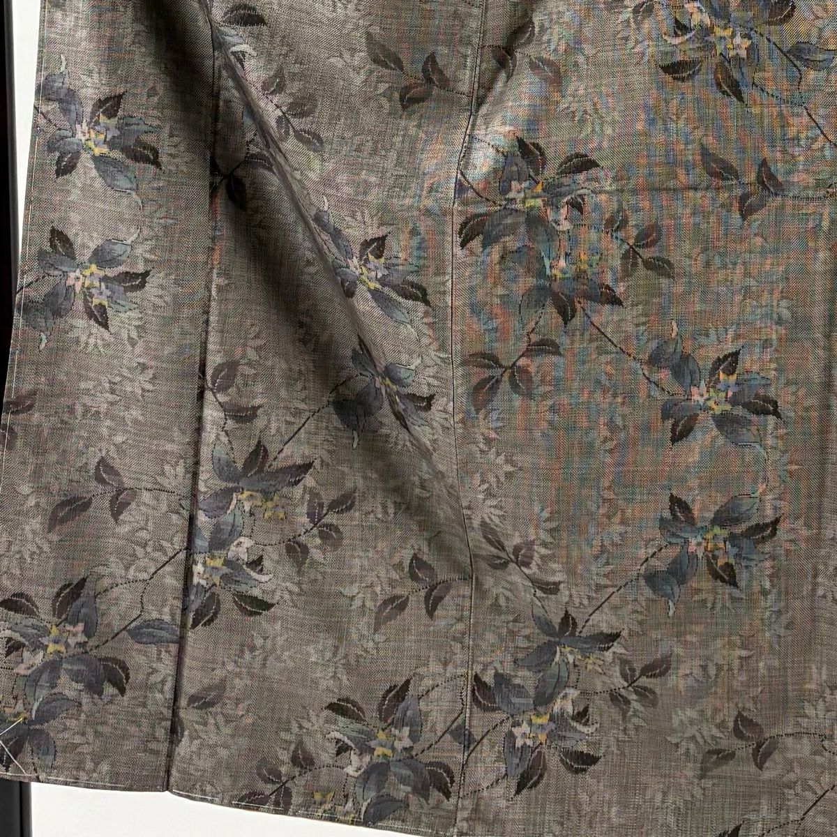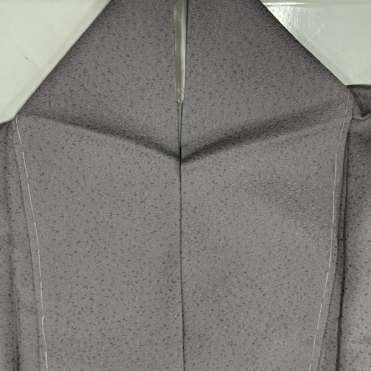 付下げ 身丈157cm 裄丈64.5cm M 袷 袋帯セット 草花 縦縞模様 絞り 刺繍 灰色 正絹 秀品 一つ紋