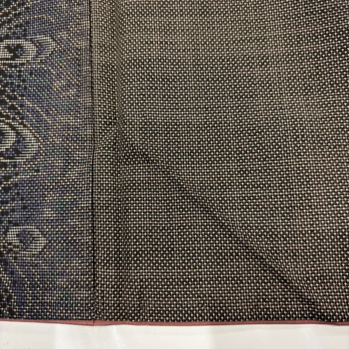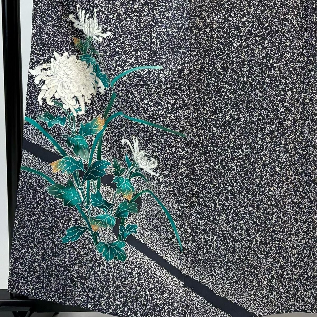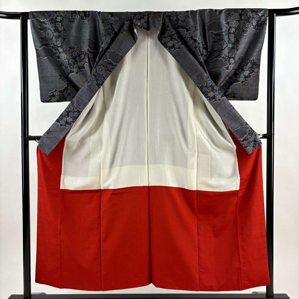 【美品】 訪問着 身丈160cm 裄丈66.5cm M 袷 袋帯セット 草花 花唐草 刺繍 金糸 墨色 正絹 秀品