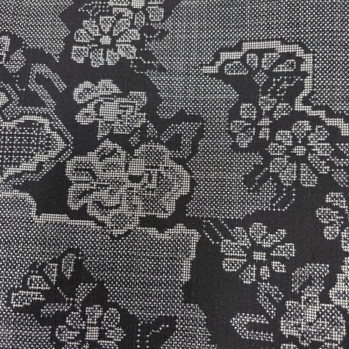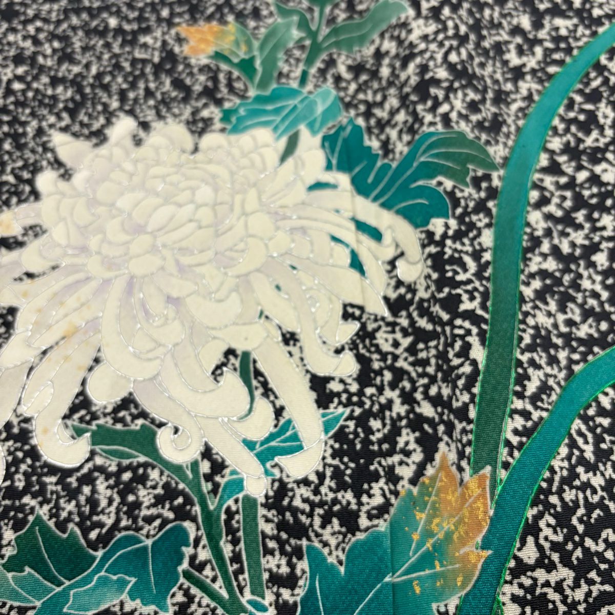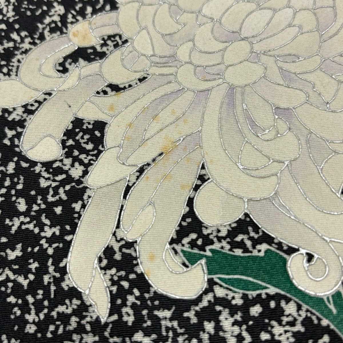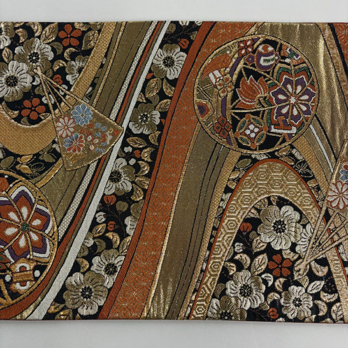 【美品】 訪問着 身丈160cm 裄丈66.5cm M 袷 袋帯セット 草花 花唐草 刺繍 金糸 墨色 正絹 秀品