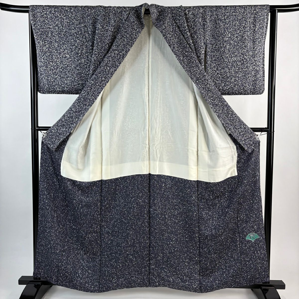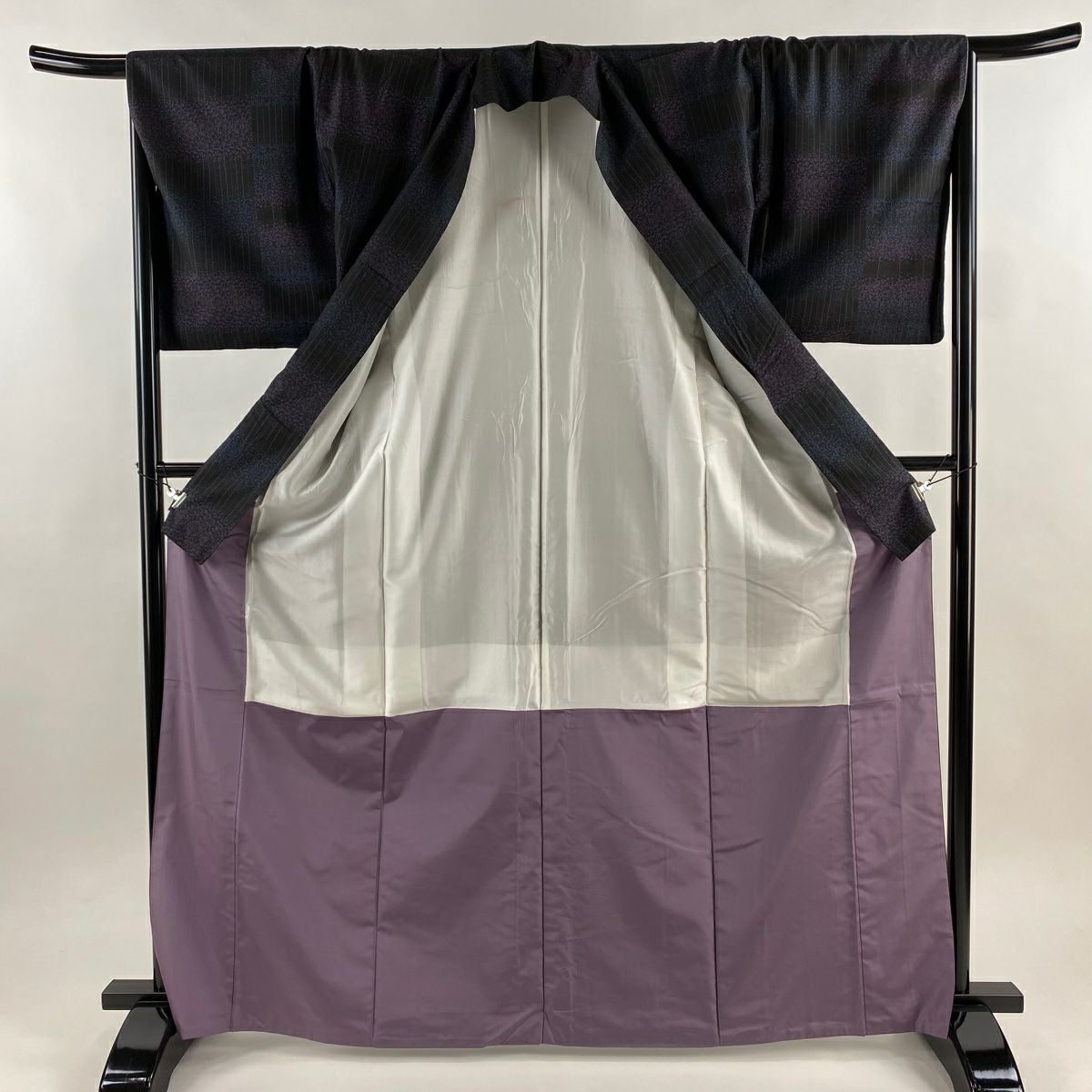 【在庫一掃】 江戸小紋 身丈155.5cm 裄丈62cm S 袷 落款あり 万筋 縮緬 赤紫 正絹 秀品 一つ紋