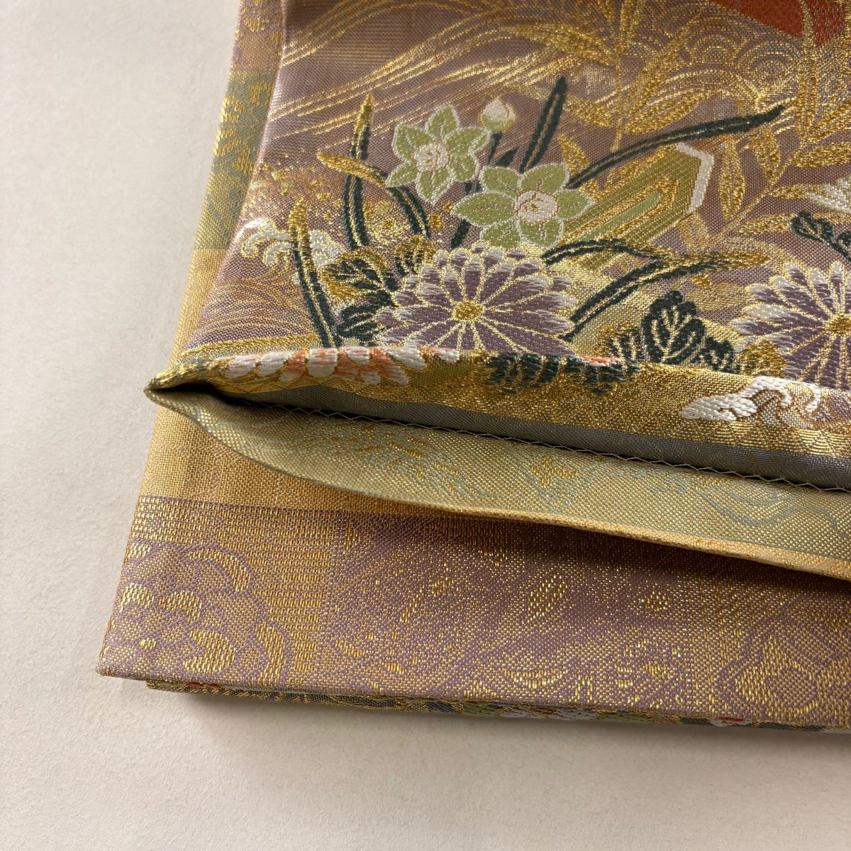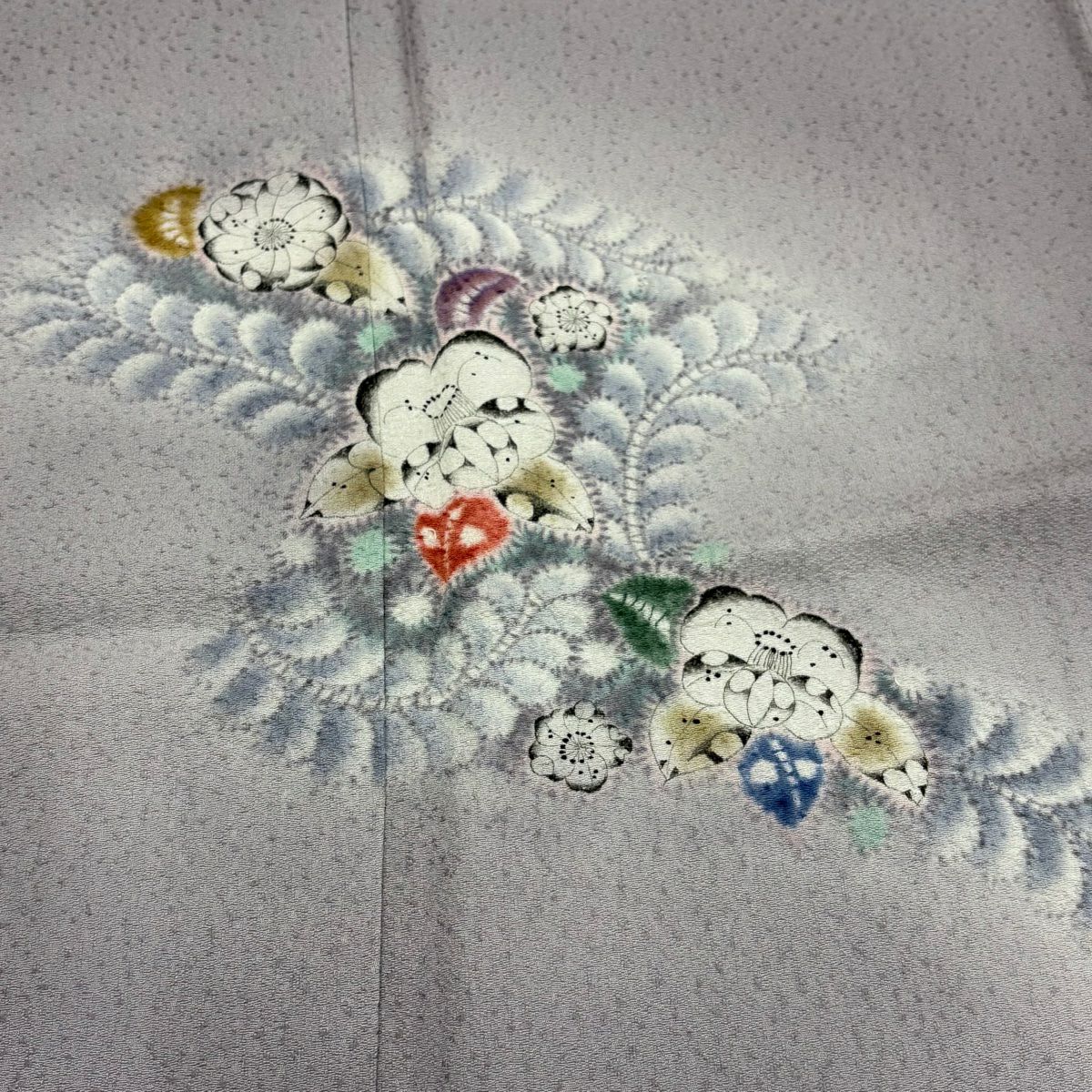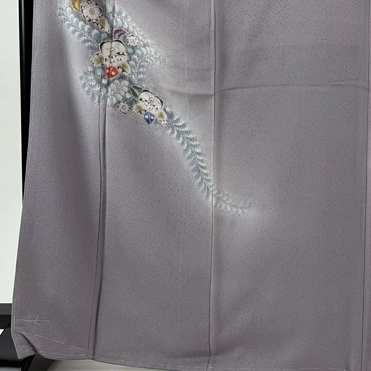 付下げ 身丈159cm 裄丈65cm M 袷 ますいわ屋 落款あり 葉柄 金銀彩 ぼかし 薄紫 正絹 秀品 一つ紋