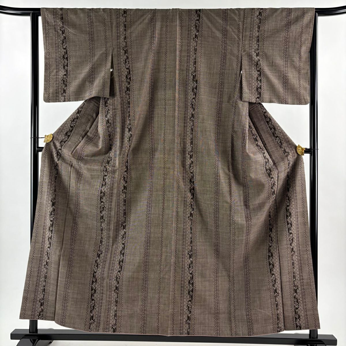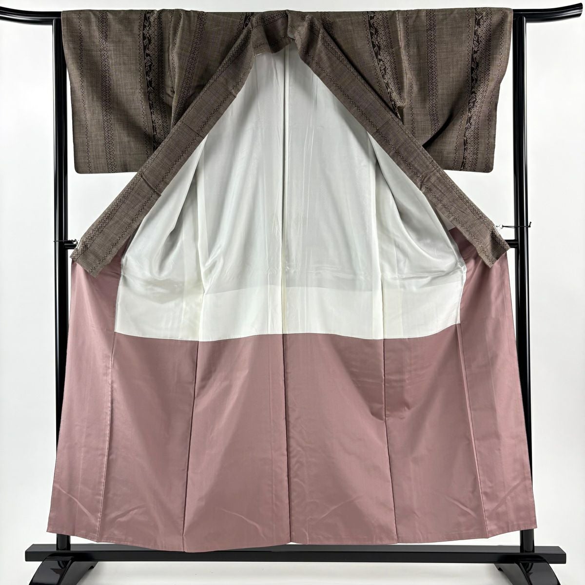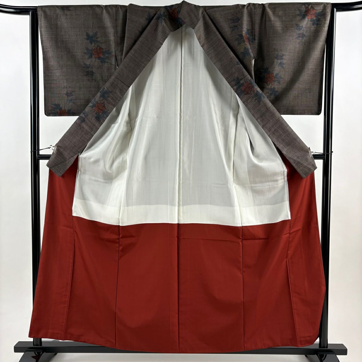 【在庫一掃】 付下げ 身丈159cm 裄丈63.5cm S 袷 紬地 落款あり 文字文 茶色 正絹 秀品 一つ紋