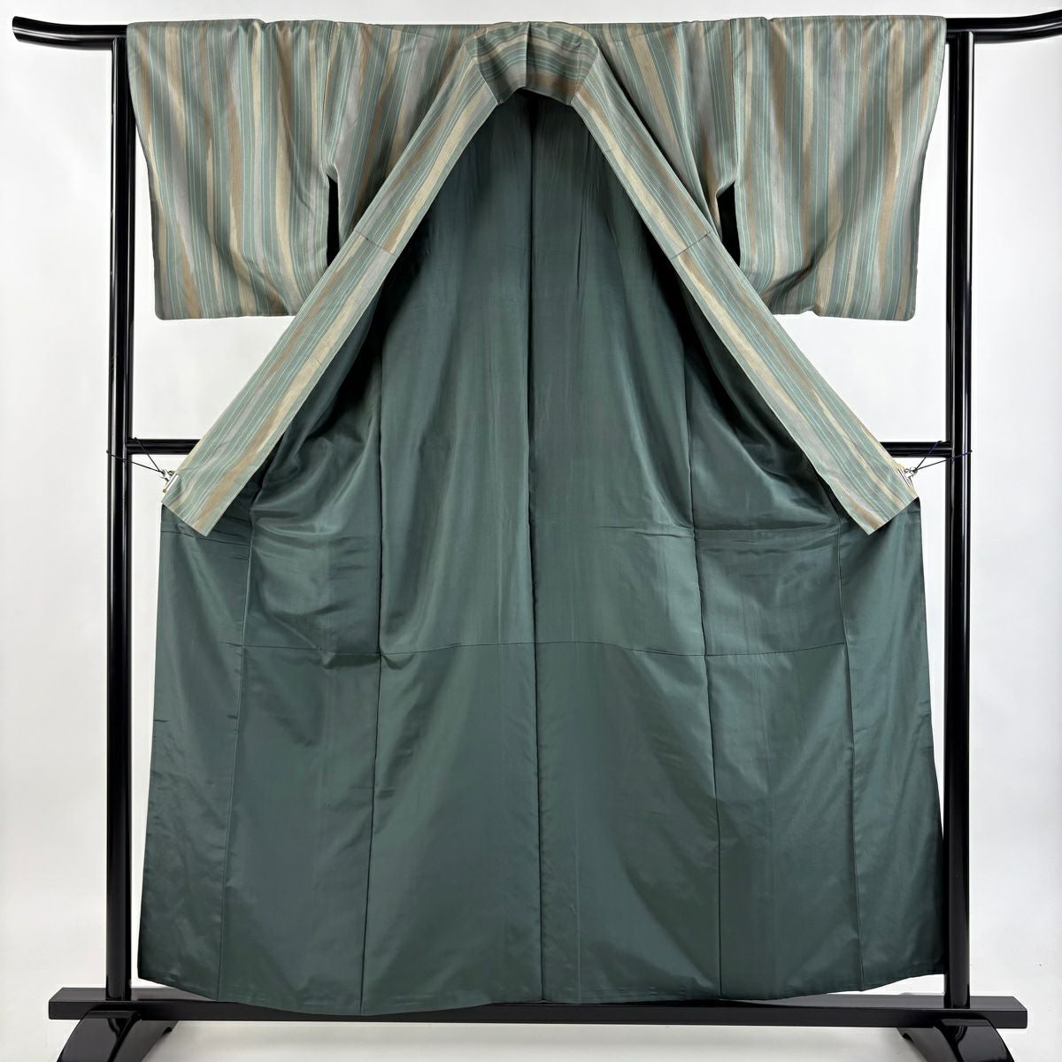 【在庫一掃】 付下げ 身丈154.5cm 裄丈62cm S 袷 草花 波 刺繍 金銀彩 灰緑 正絹 秀品 一つ紋