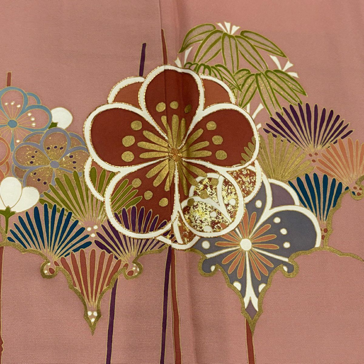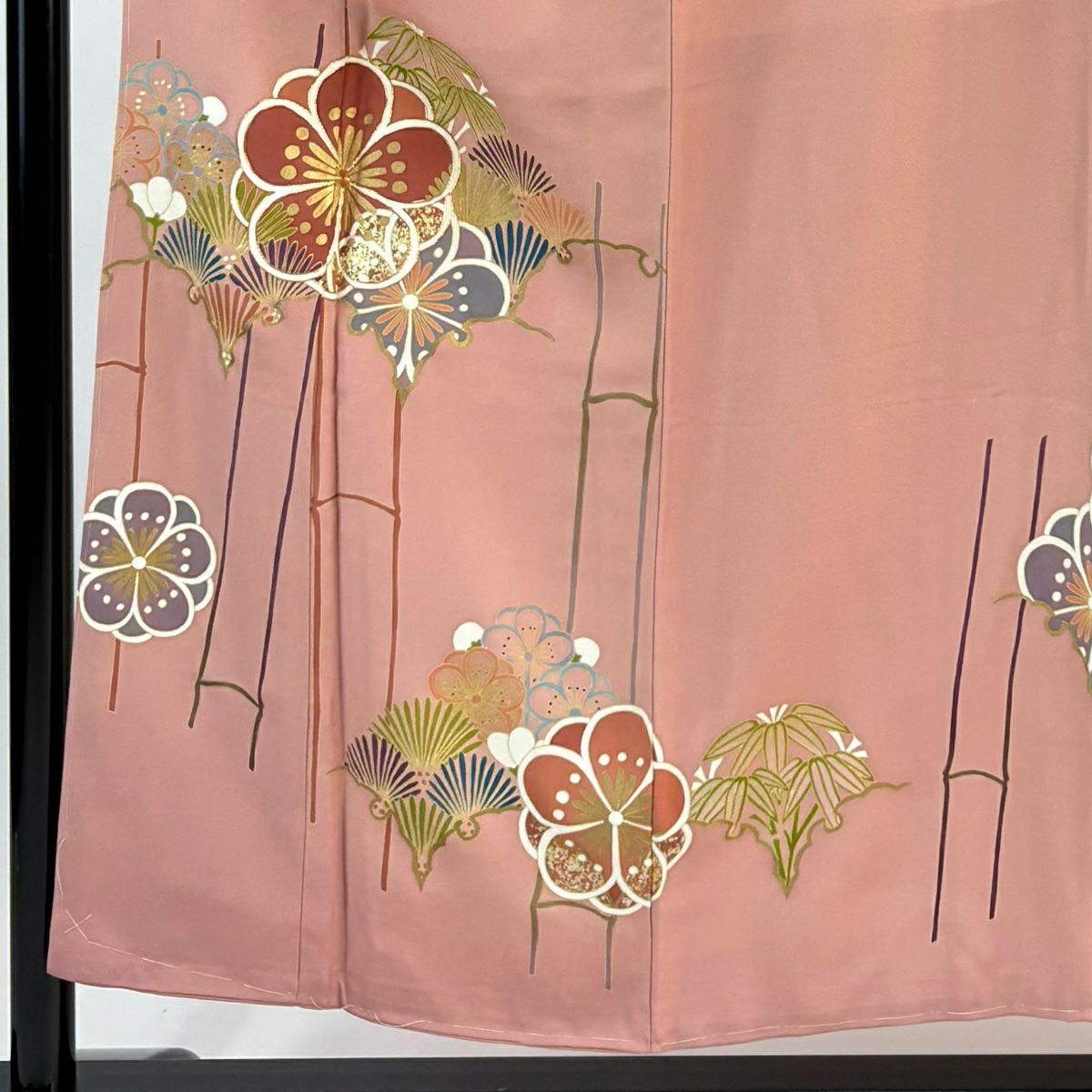 振袖 身丈159cm 裄丈63.5cm S 袷 谷崎潤一郎の世界 落款あり 梅 鶴 金糸 金彩 ピンク 正絹 秀品