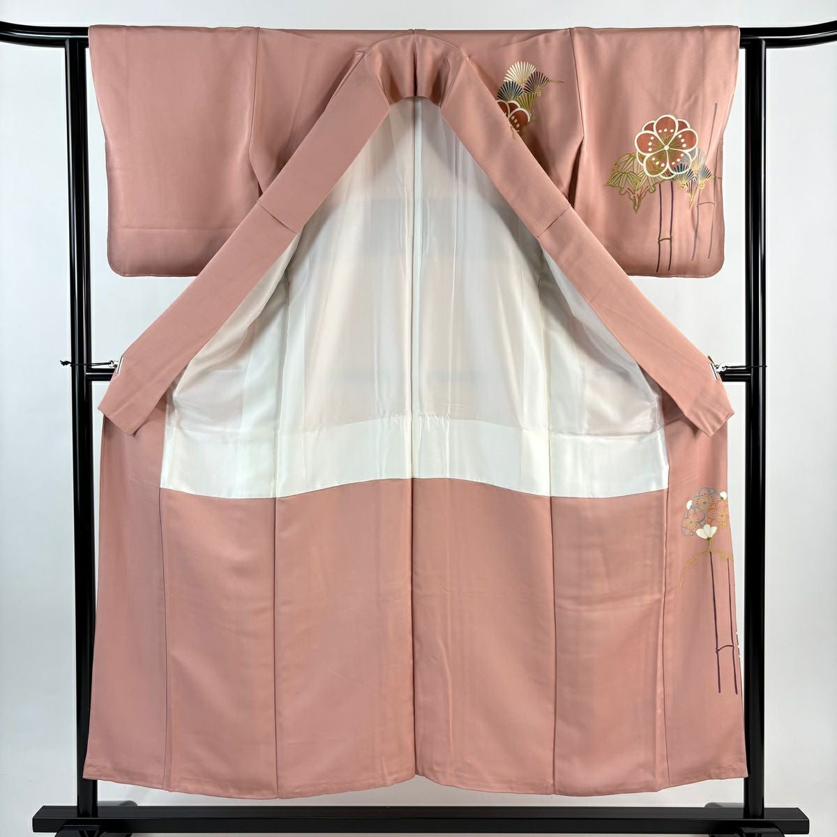 【在庫一掃】 訪問着 身丈154cm 裄丈63cm S 袷 牡丹 菊 金彩 ぼかし サーモンピンク 正絹 秀品