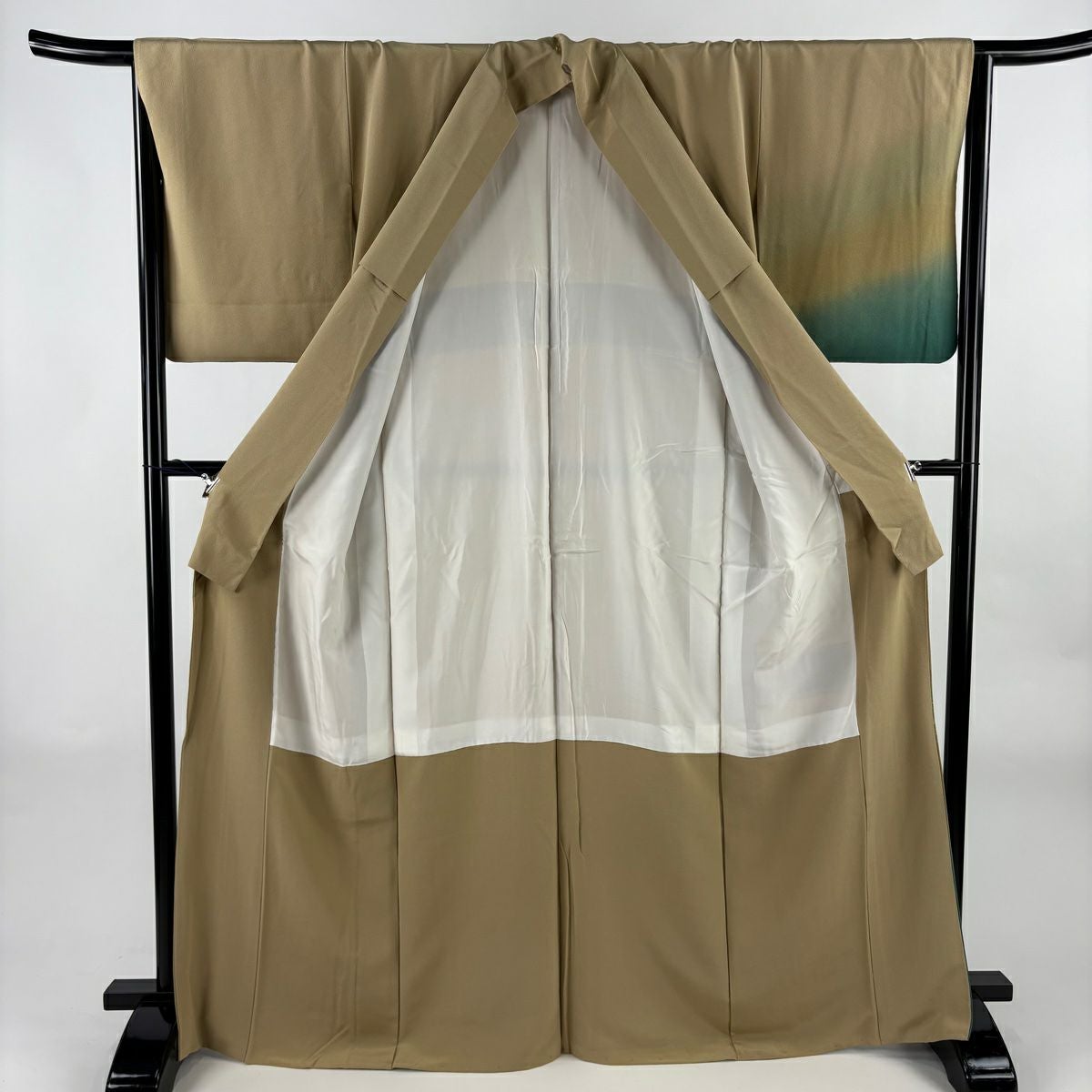 【在庫一掃】 訪問着 身丈154cm 裄丈62.5cm S 袷 落款あり 雪輪 疋田 ぼかし 薄茶色 正絹 秀品