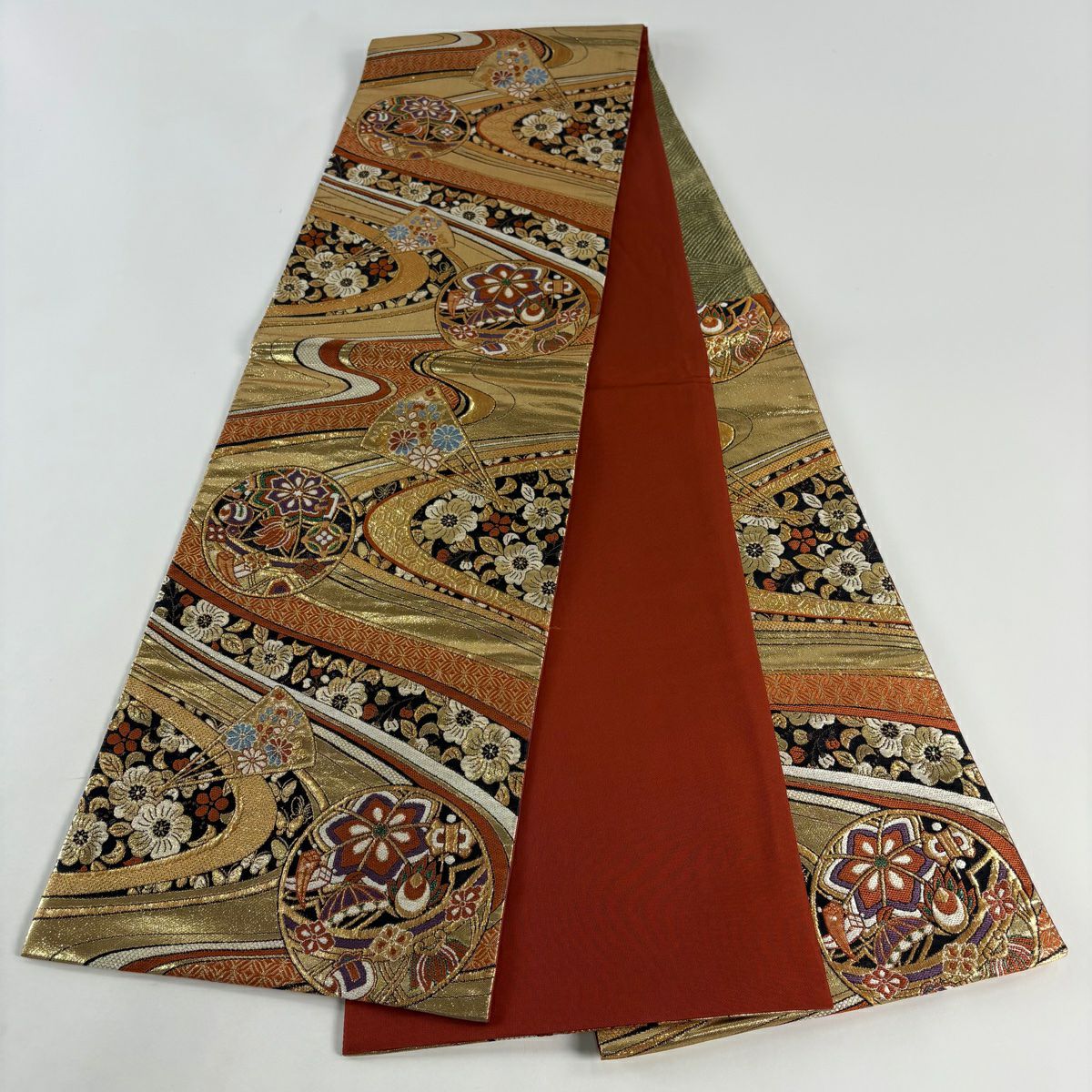 【在庫一掃】 訪問着 身丈159cm 裄丈66cm M 袷 落款あり 橘花 観世水 金糸 金銀彩 茶色 正絹 秀品