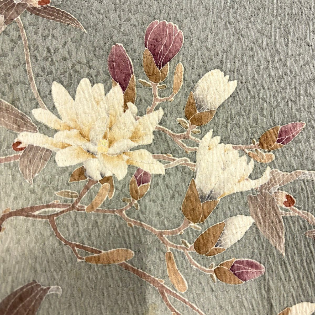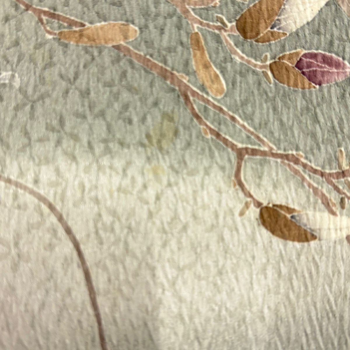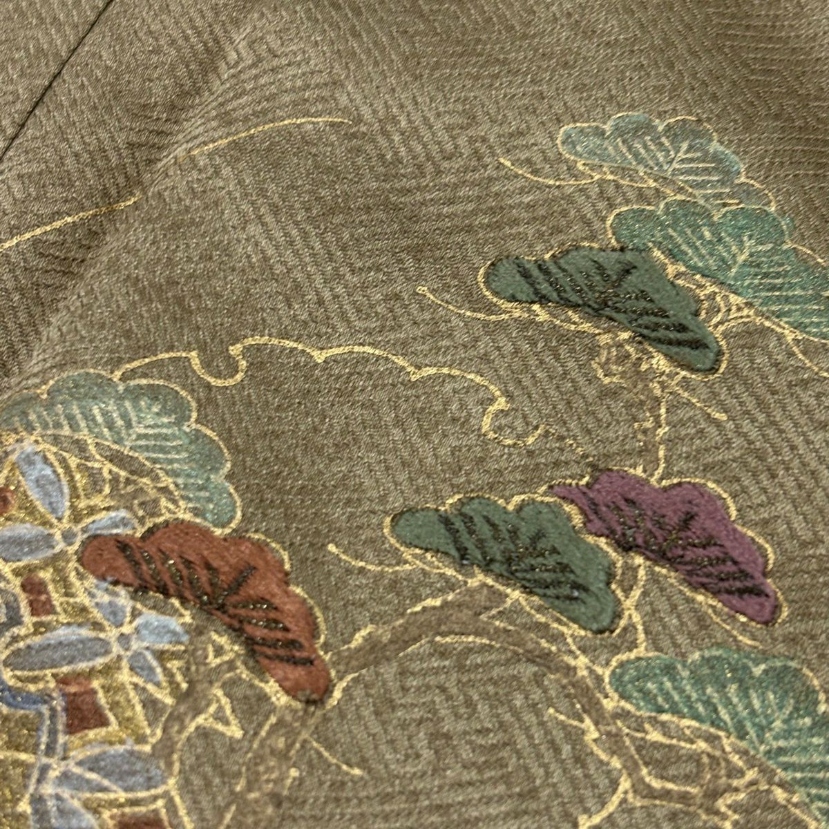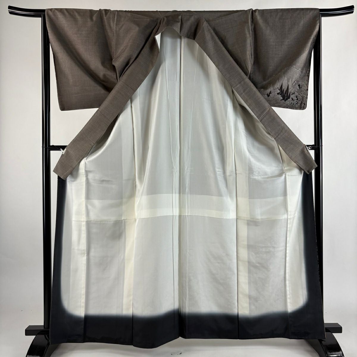 30%OFF 付下げ 身丈163cm 裄丈64cm M 袷 松島の風景 樹木 刺繍 縮緬 灰茶 正絹 秀品 K30