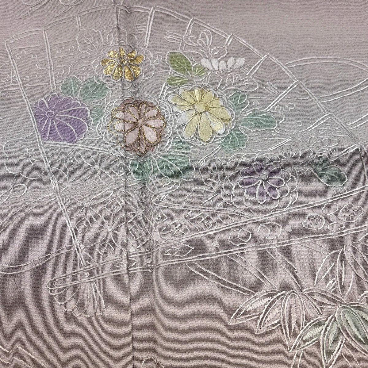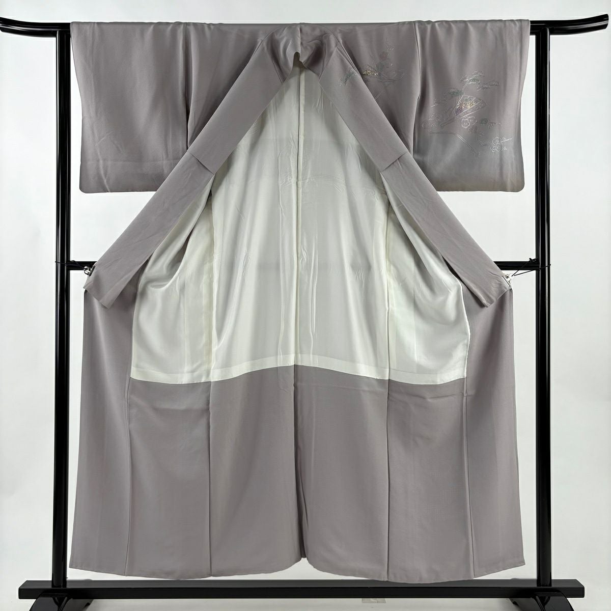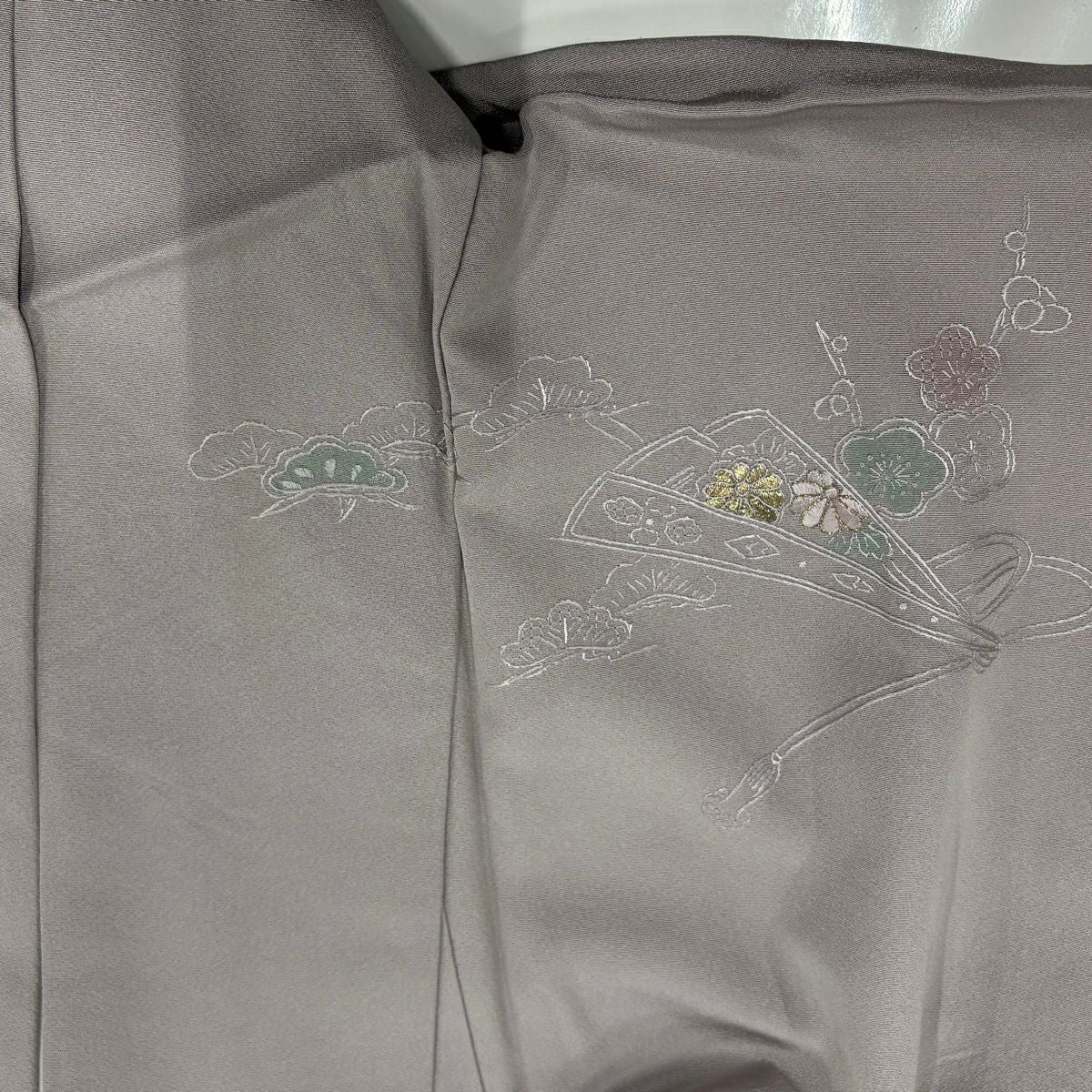 30%OFF 訪問着 身丈155.5cm 裄丈62cm S 袷 桧扇 松竹梅 刺繍 金糸 灰紫 正絹 秀品 K30