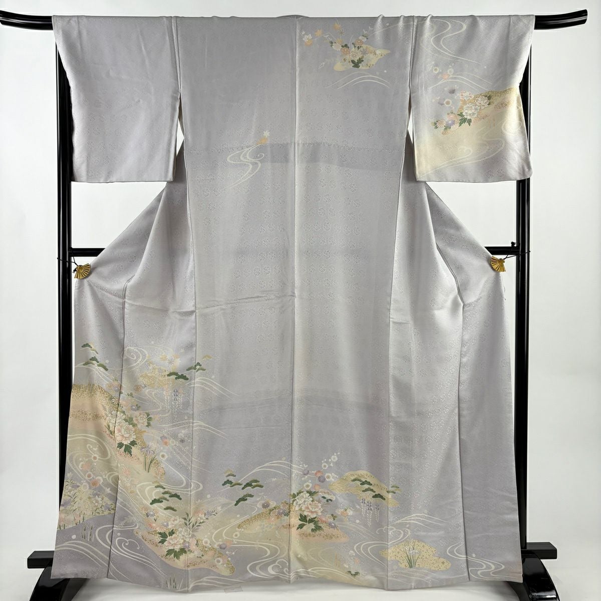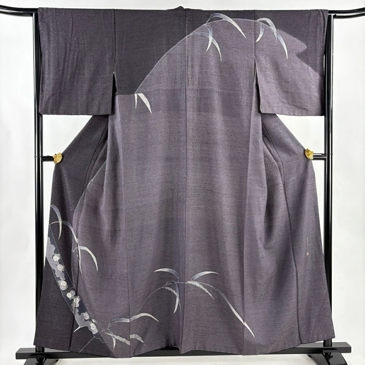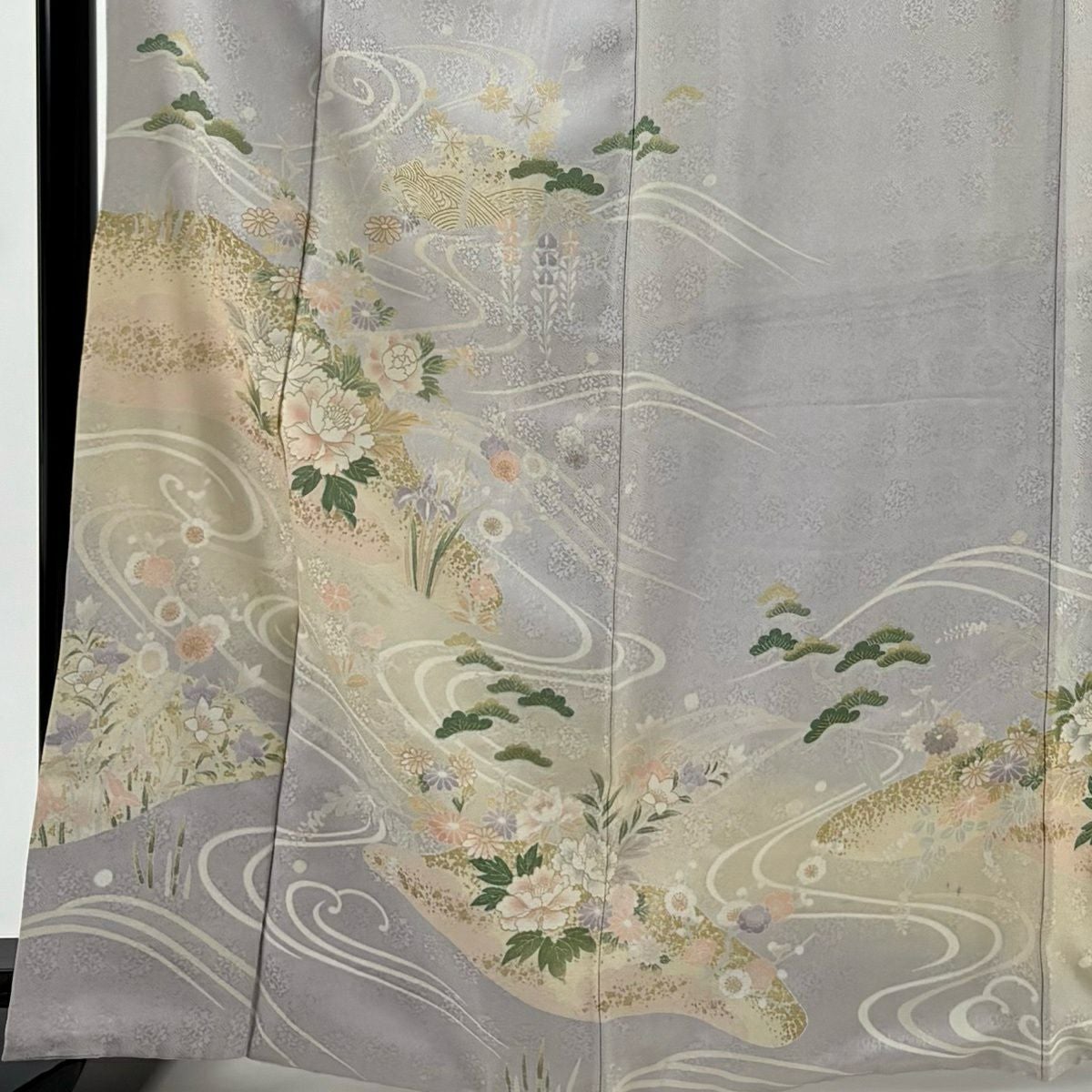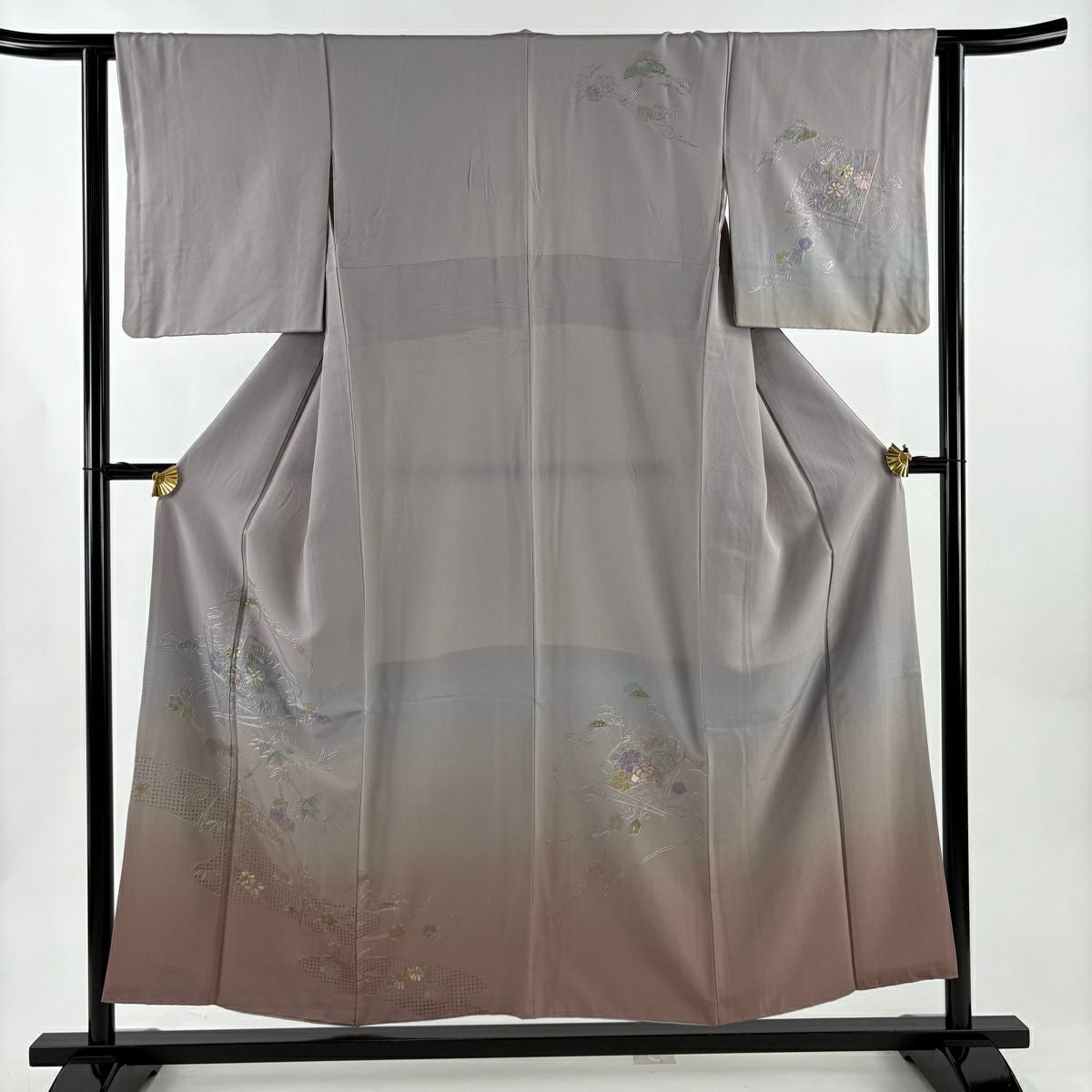 30%OFF 訪問着 身丈155.5cm 裄丈62cm S 袷 桧扇 松竹梅 刺繍 金糸 灰紫 正絹 秀品 K30