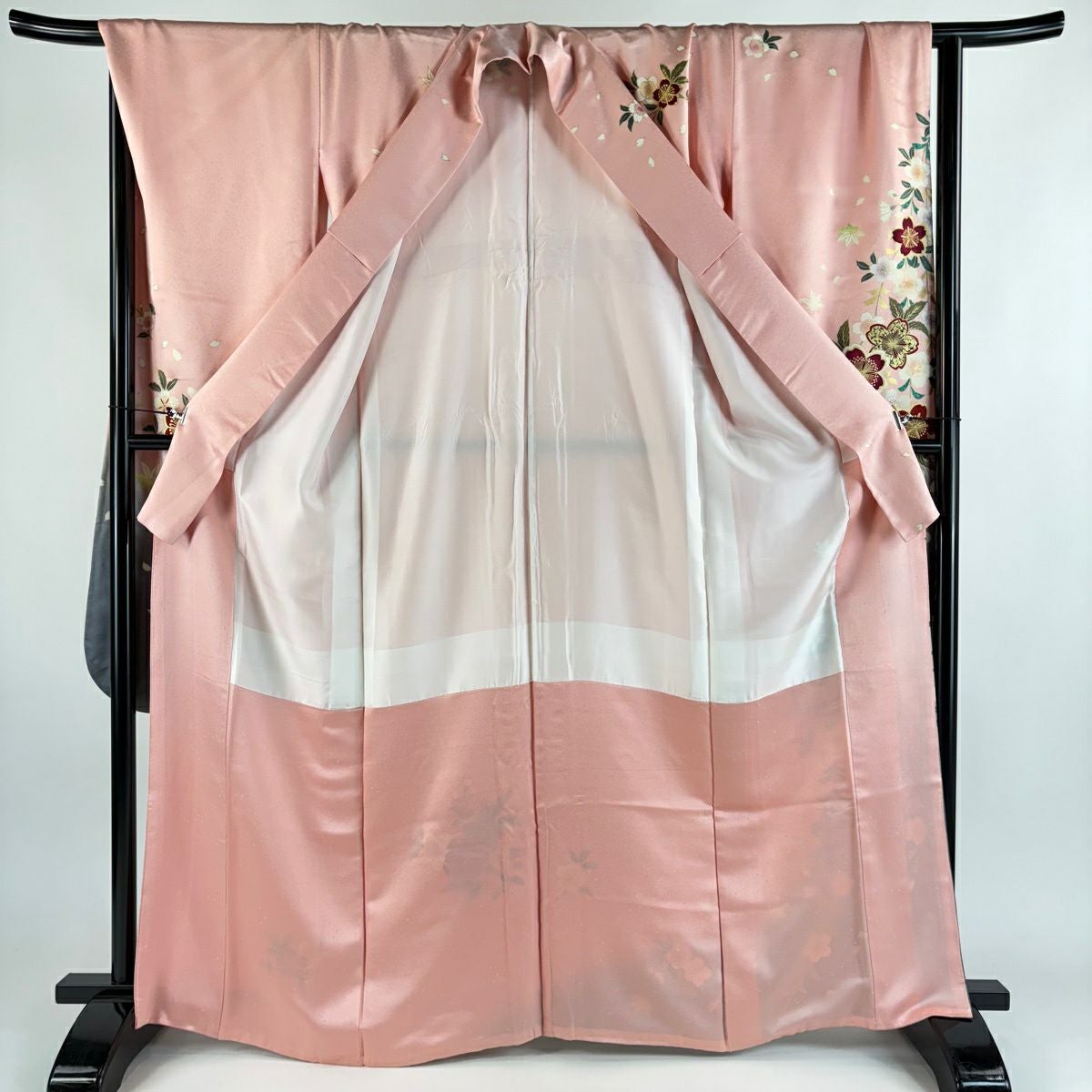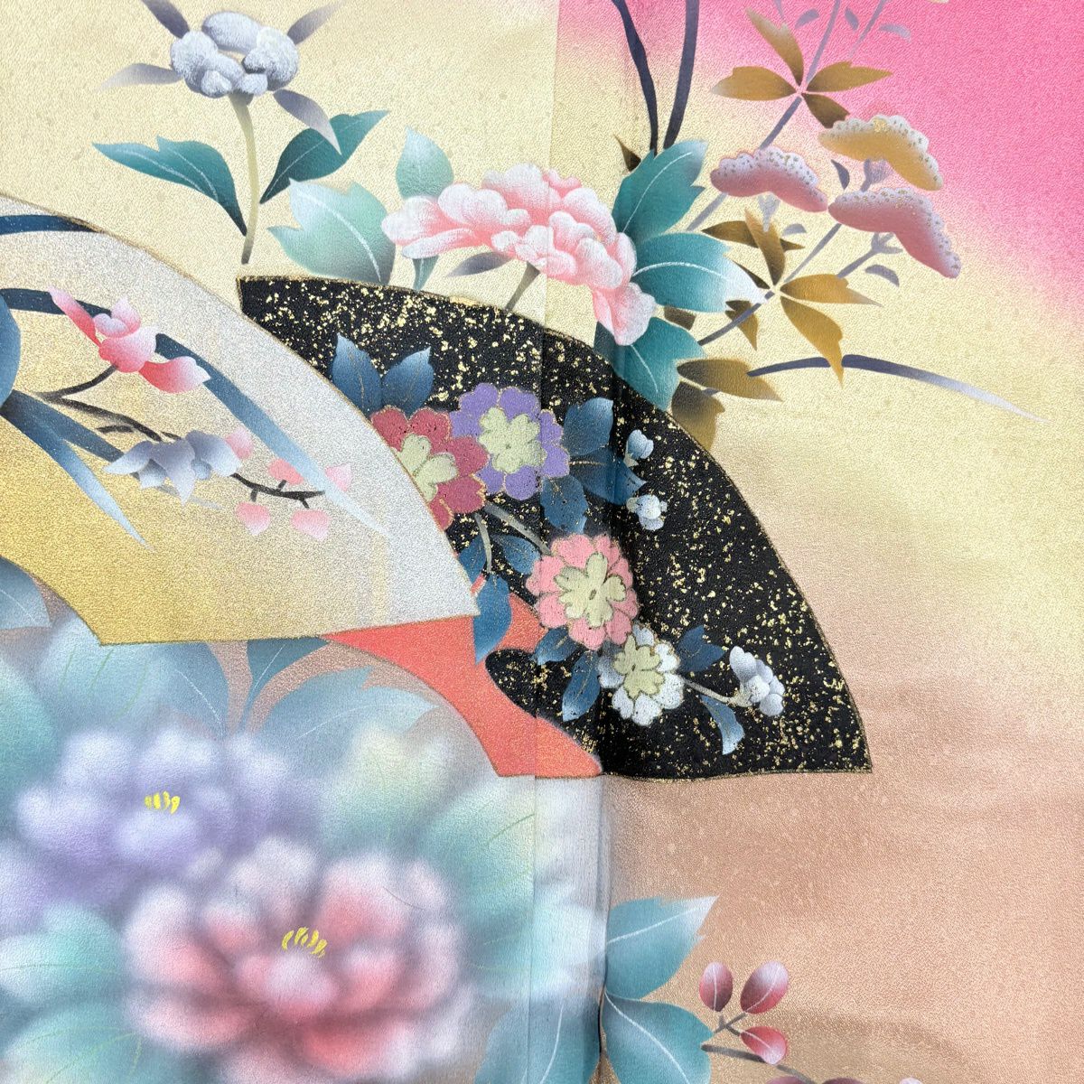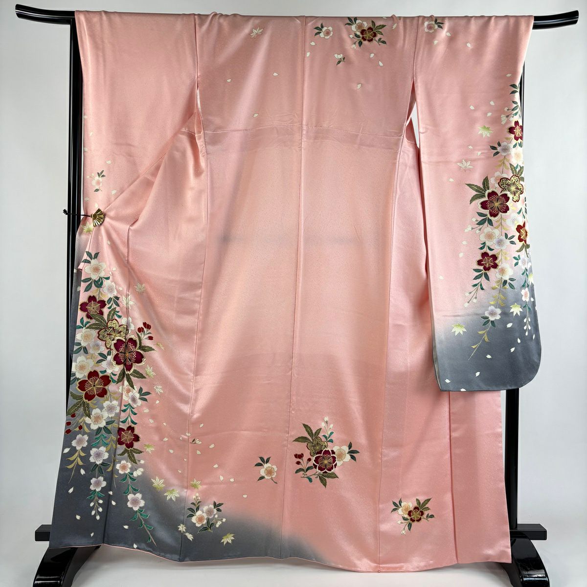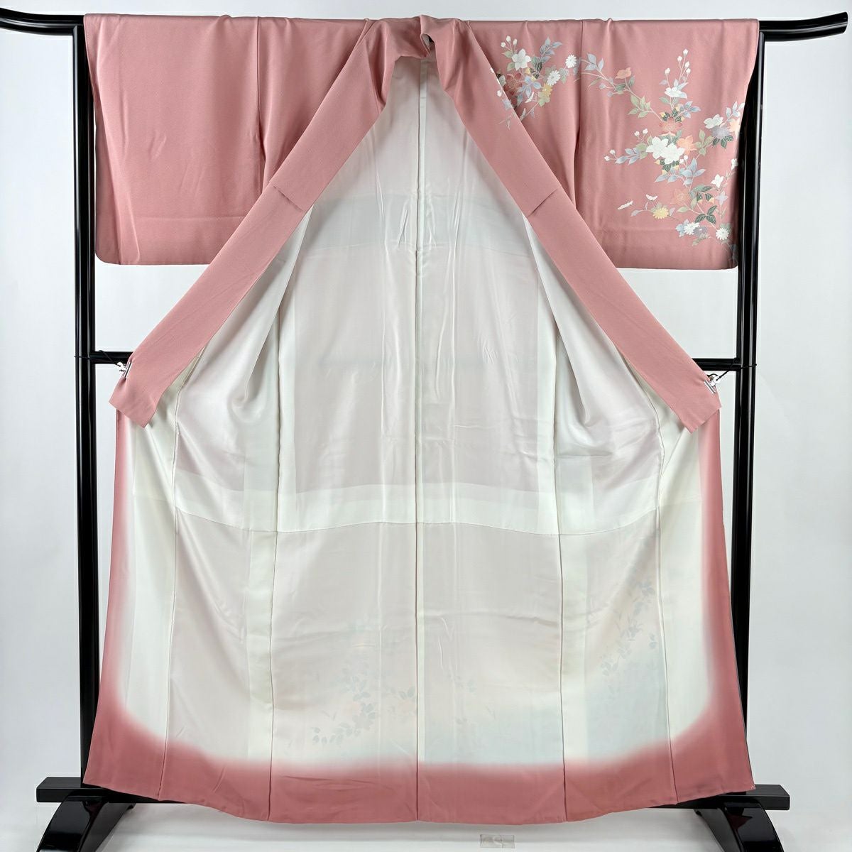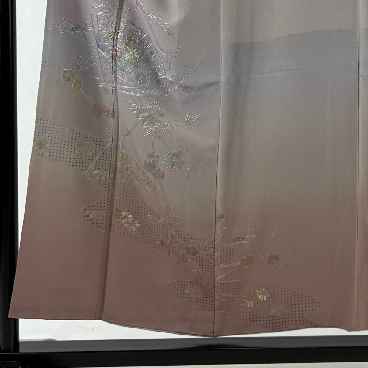 30%OFF 訪問着 身丈163cm 裄丈65cm M 袷 扇面 枝梅 刺繍 ぼかし ピンク 正絹 秀品 K30