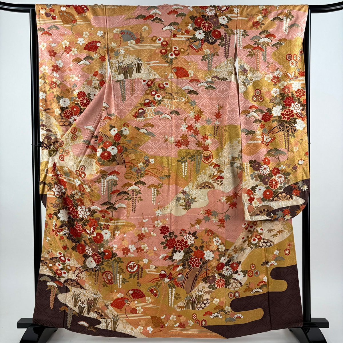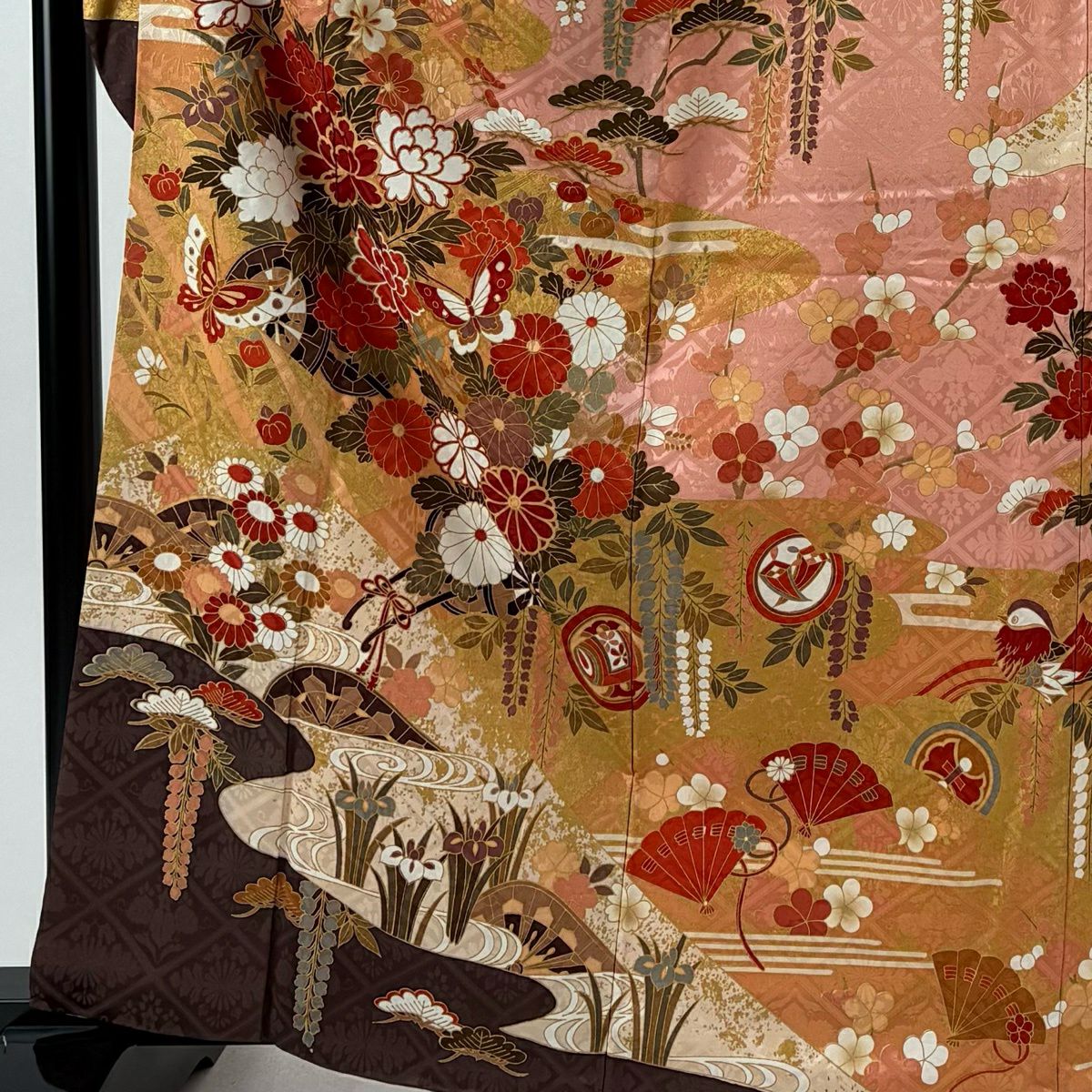30%OFF 訪問着 身丈164.5cm 裄丈65cm M 袷 扇 花鳥 金彩 ぼかし ピンク 正絹 秀品 K30
